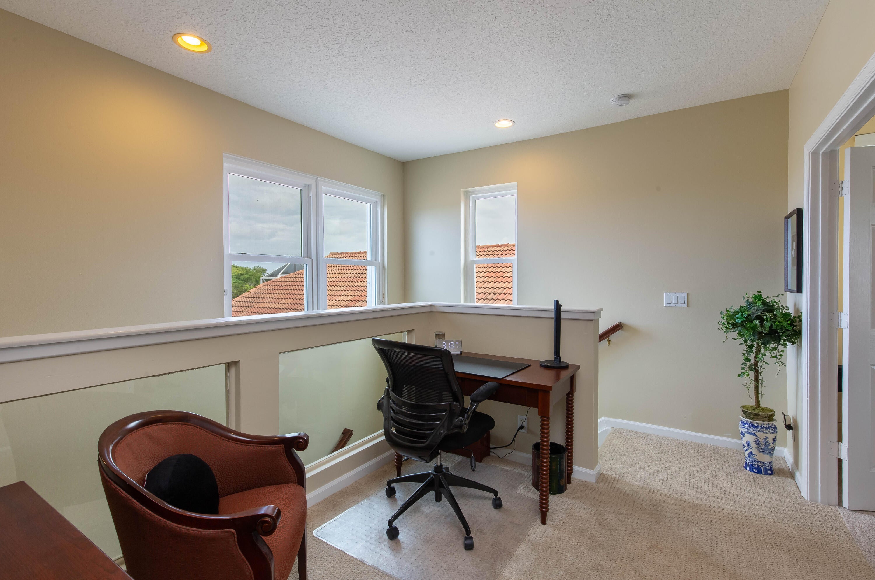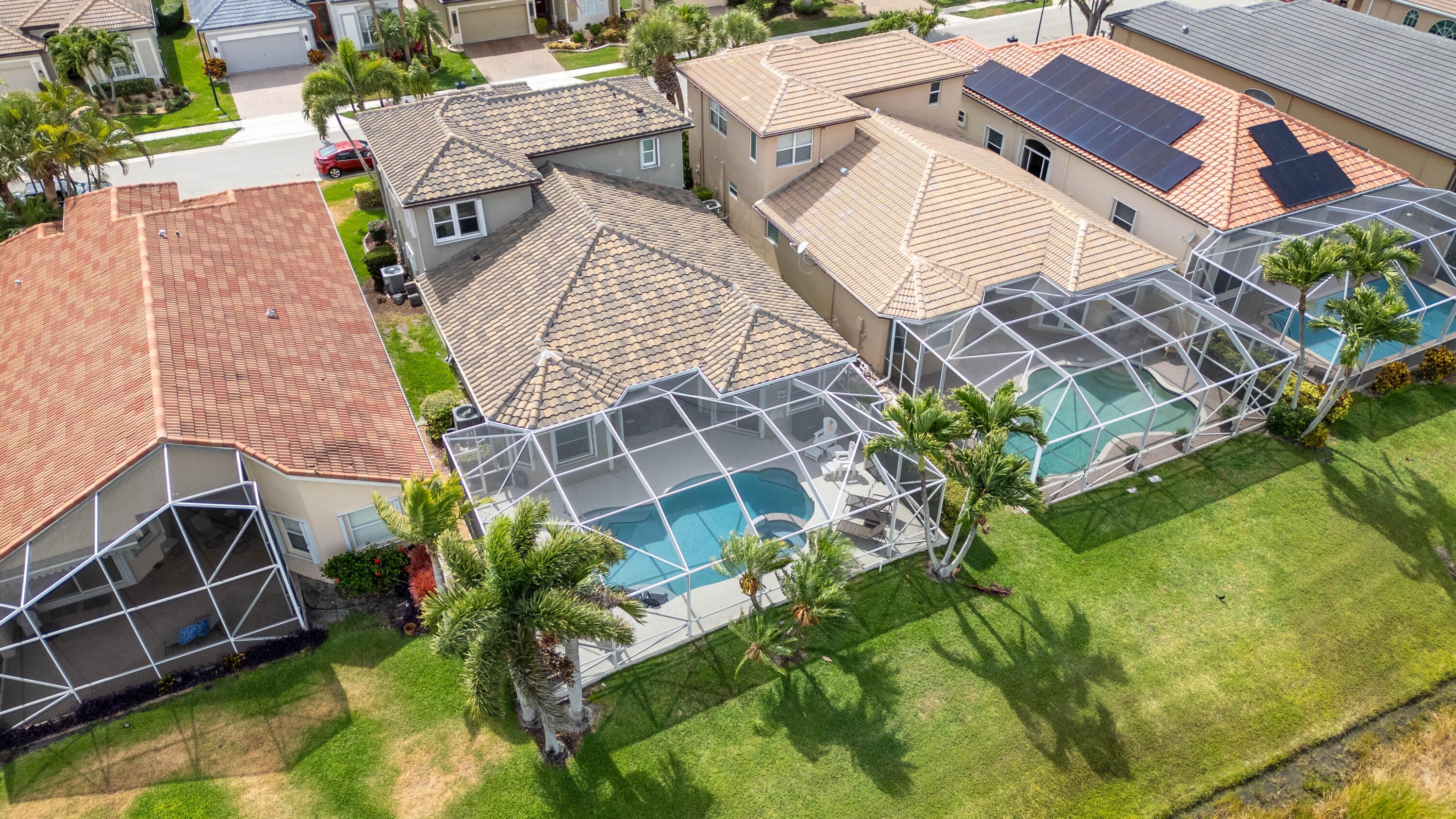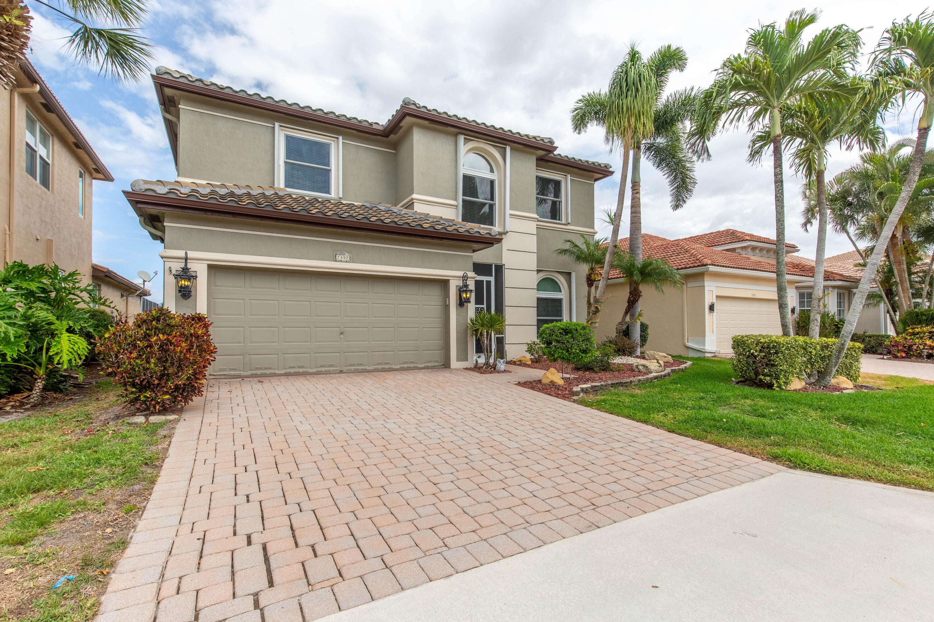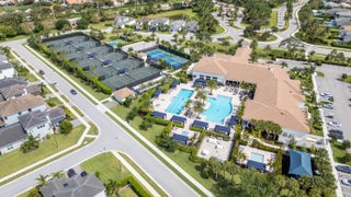 Beautifully maintained home with 2,871 sq ft of versatile living space. Features include a spacious kitchen with double ovens, formal dining, separate living and family rooms, home office, and a main-level primary suite with custom his-and-hers closets. Upstairs offers an oversized guest suite, additional bedroom, large bath, and a flex space loft--perfect for a media room, playroom, or workout space. Enjoy a private backyard oasis with pool, spa, and screened enclosure. Located in a resort-style community with clubhouse, pools, gym, restaurant, sports courts, playground, and 24-hour security. HOA includes internet, cable, lawn care, roof cleaning, exterior painting, and more.