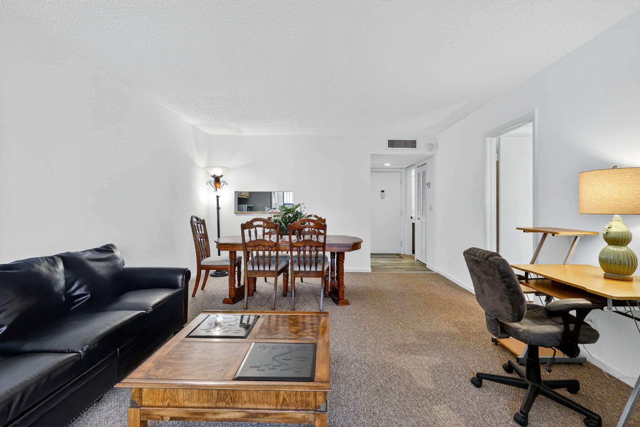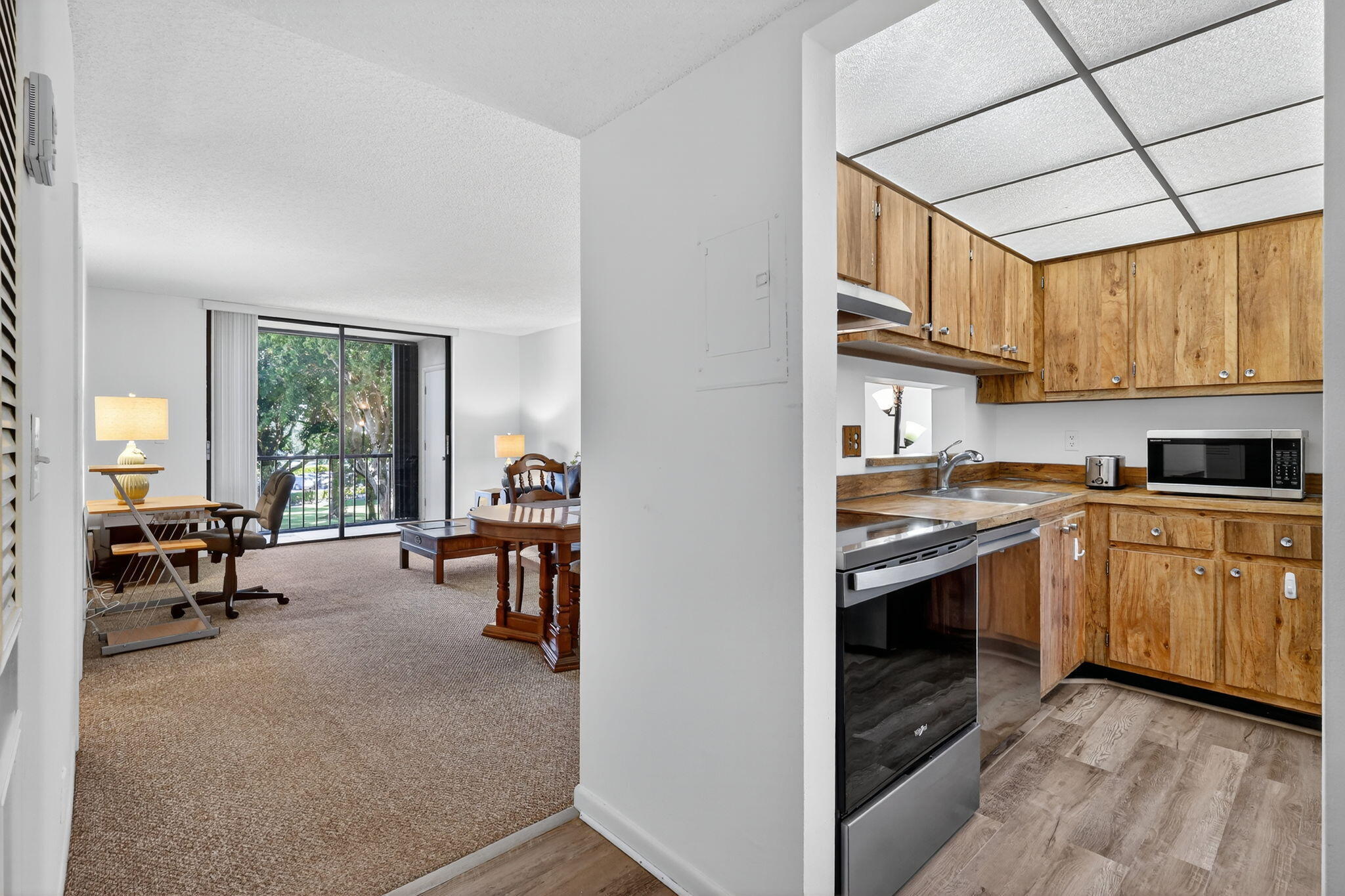 Active 55+ Building, PET FREE, Certified animals only. Beautifully updated, 1 bed., 1.5 bath condo offering serene garden views from a spacious screened balcony with Accordion Hurricane Shutters. This inviting unit features: new Whirlpool and Samsung stainless steel appliances, fresh paint throughout, new vinyl plank flooring in the kitchen, updated bathrooms with new toilets, walk-in closet with vanity area, A/C replaced in Aug. 2022. Top floor unit, elevator for easy access. Storage closet on balcony & additional community storage just steps away. Laundry facilities are conveniently located right across from the unit. Enjoy peace of mind with 24-hour guard-gated entry and security patrol. Assigned parking space, ample guest parking.Condo fees include: Water, Cable TV and Garbage removal. Application and interview with the Condo Association is required prior to move-in. Las Verdes - A Welcoming Community You'll Love to Call Home! Beautifully maintained, guard-gated community where neighbors quickly become friends. Enjoy A Lifestyle Full of Possibilities: _Three inviting swimming pools and relaxing hot tubs _Tennis, pickleball & bocce ball courts for friendly matches _A clubhouse buzzing with dinners, dances, clubs & entertainment _Fitness center, game room & energizing exercise and yoga classes _Peaceful green spaces and a lovely lake for quiet strolls _Just a short drive to the beach and lively downtown Delray Beach _Close to shopping, dining & medical care _Reliable electricity with Delray Medical Center on the same new upgraded power grid, making electricity stable during hurricanes. Las Verdes isn't just a community, it is a place to laugh, connect, and enjoy life to the fullest.