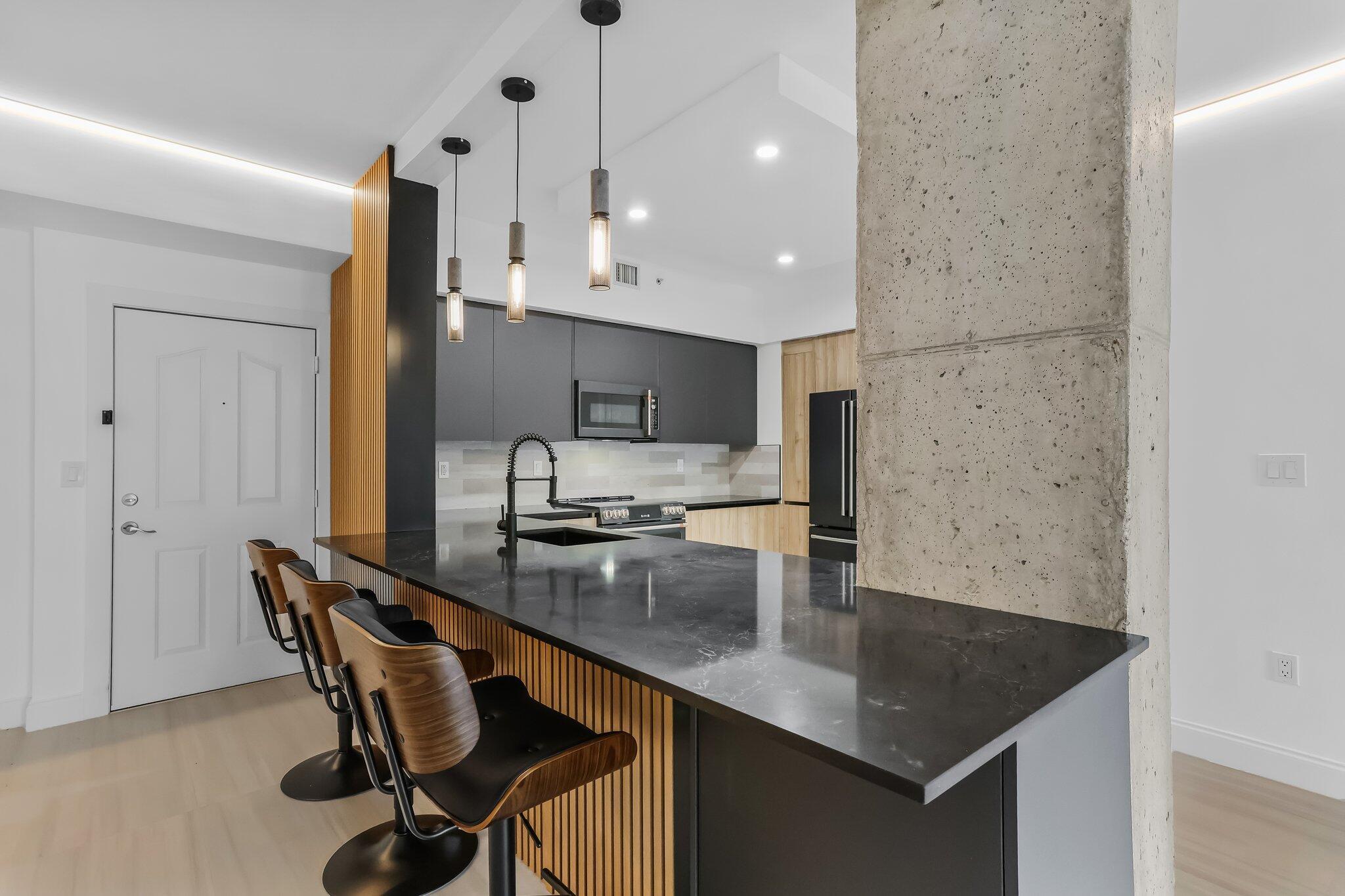 NEWLY remodeled with state of the art finishes you would find at a 5 star hotel! Convenient & exceptional Delray Downtown living on a quiet street just 2 blocks North of Atlantic Ave in Pineapple Grove! If you want a place you would be proud to call home -- you've found it! Owner has completely remodeled this 2/2 unit with the highest quality materials and appliances. Custom lighting has been installed in the ceiling to add a soft ambiance to the rooms. Impact Windows throughout for security and sound reduction. Completely furnished, Washer/Dryer in unit. Seasonal rental offers 1 covered, secured parking space, pool, sauna, gym, business center. Walk to the beach, world class restaurants, shopping, green market, theatre and live music venues. Toast the sunset from your spacious balcony!!