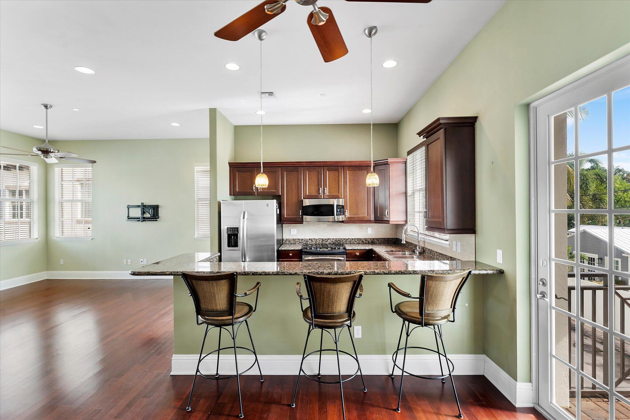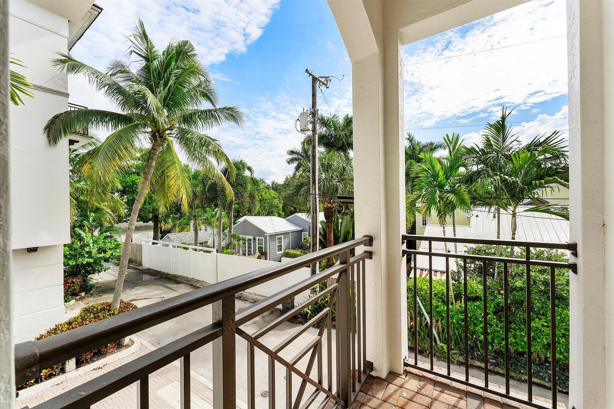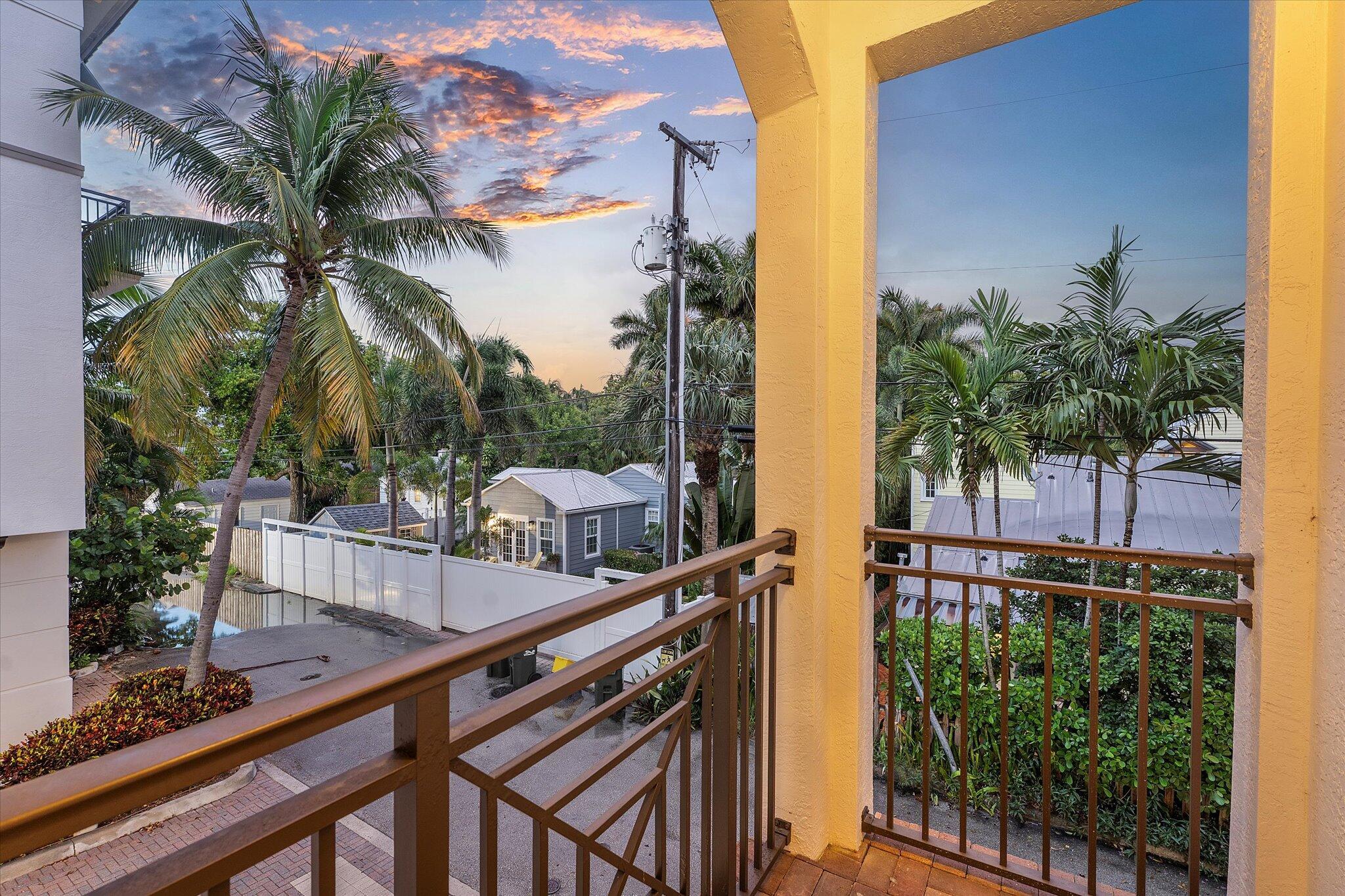 Enjoy the ultimate Delray Beach lifestyle in this beautifully maintained end-unit townhouse, ideally located minutes from Atlantic Avenue's vibrant dining, boutiques, and the beach. As a coveted corner residence, the home is filled with natural light from an abundance of windows and offers rare features not found in other units--including three private balconies, one conveniently located off the kitchen for grilling, and the only second-floor balcony in the community. Overlooking the resort-style pool with its tranquil waterfall, this home blends elegance with ease. The first floor features rich cherry wood flooring, a spacious laundry room, and an oversized garage.The open-concept main living area continues the cherry wood, highlighted by a kitchen with upgraded granite countertops, stainless steel appliances, a wine fridge, and breakfast bar. Upstairs, both bedrooms are en-suite with private balconies, while the primary suite includes a generous walk-in closet. No waiting period on leasing adds to the appeal of this rare find.