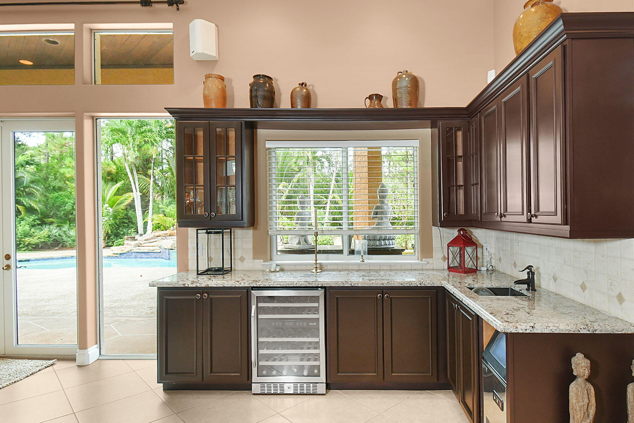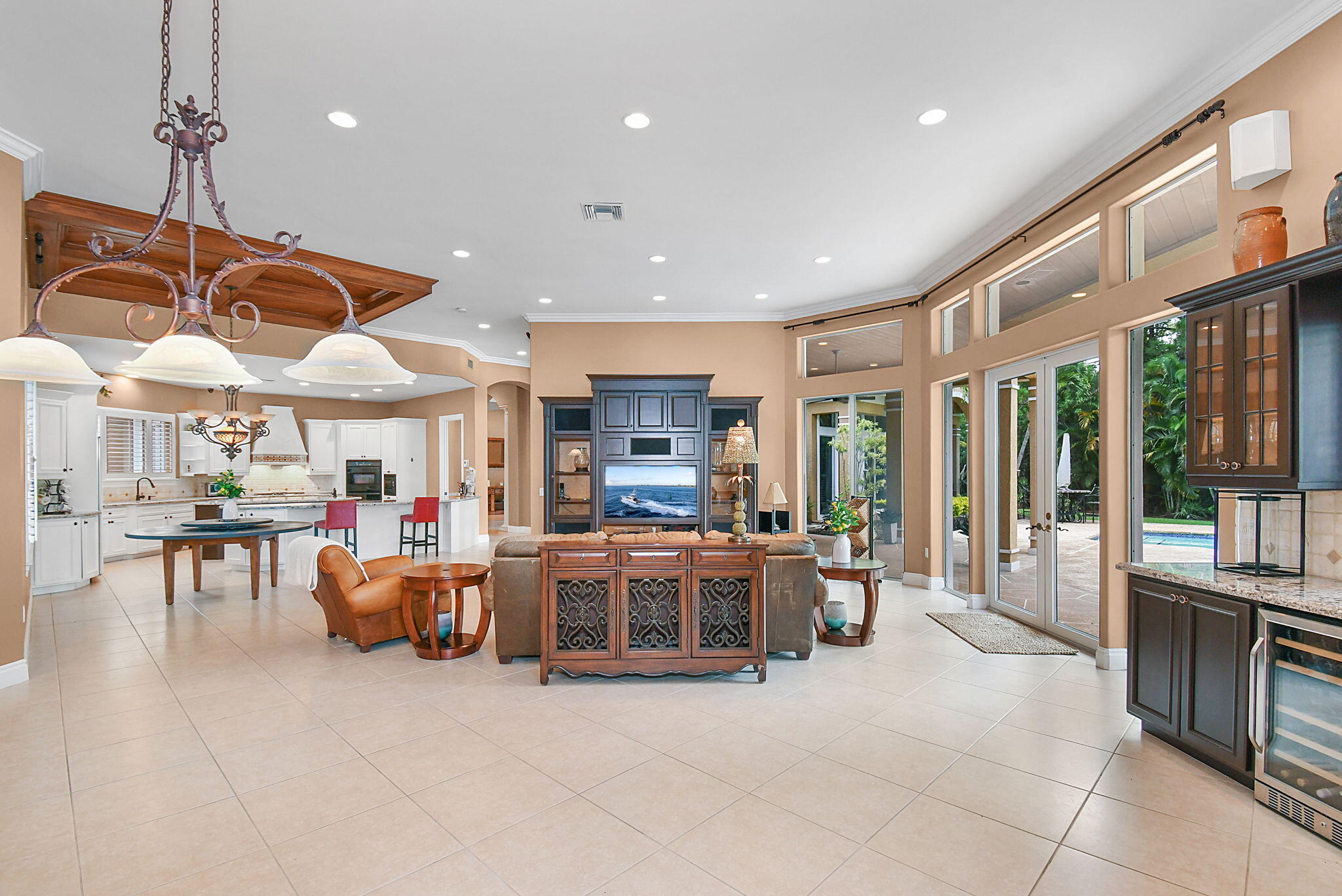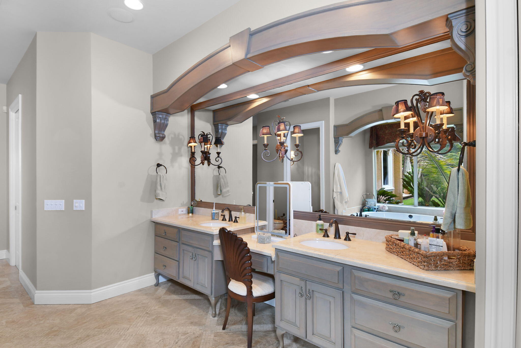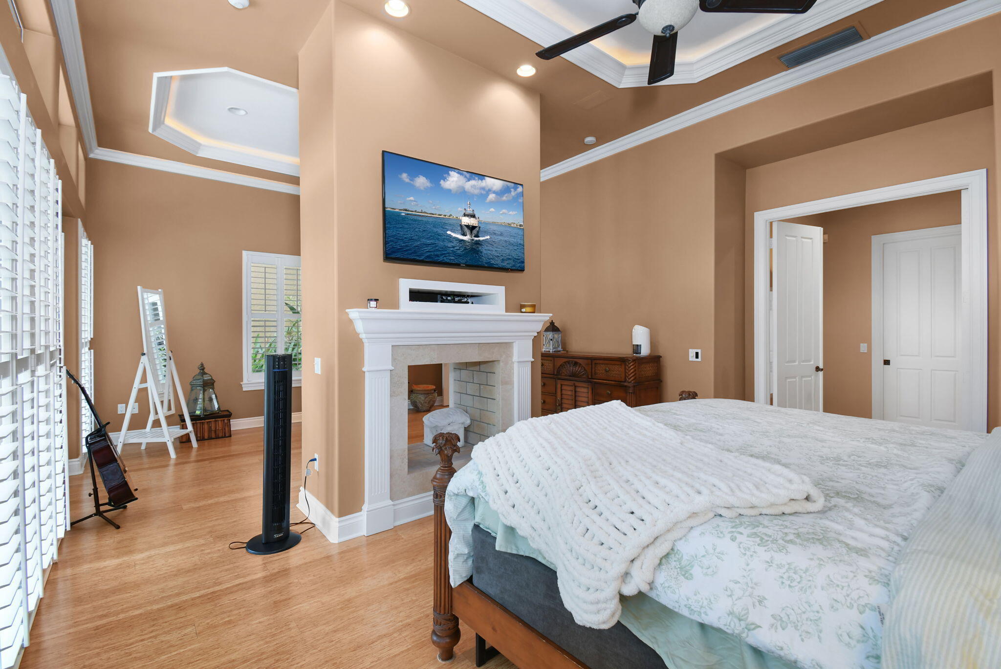 Roman Tub, Split Bedroom, Volume Ceiling, Walk-in Closet, Built-in Shelves, Cook Island, Fireplace(s), Foyer, French Door, Laundry Tub, Wet Bar