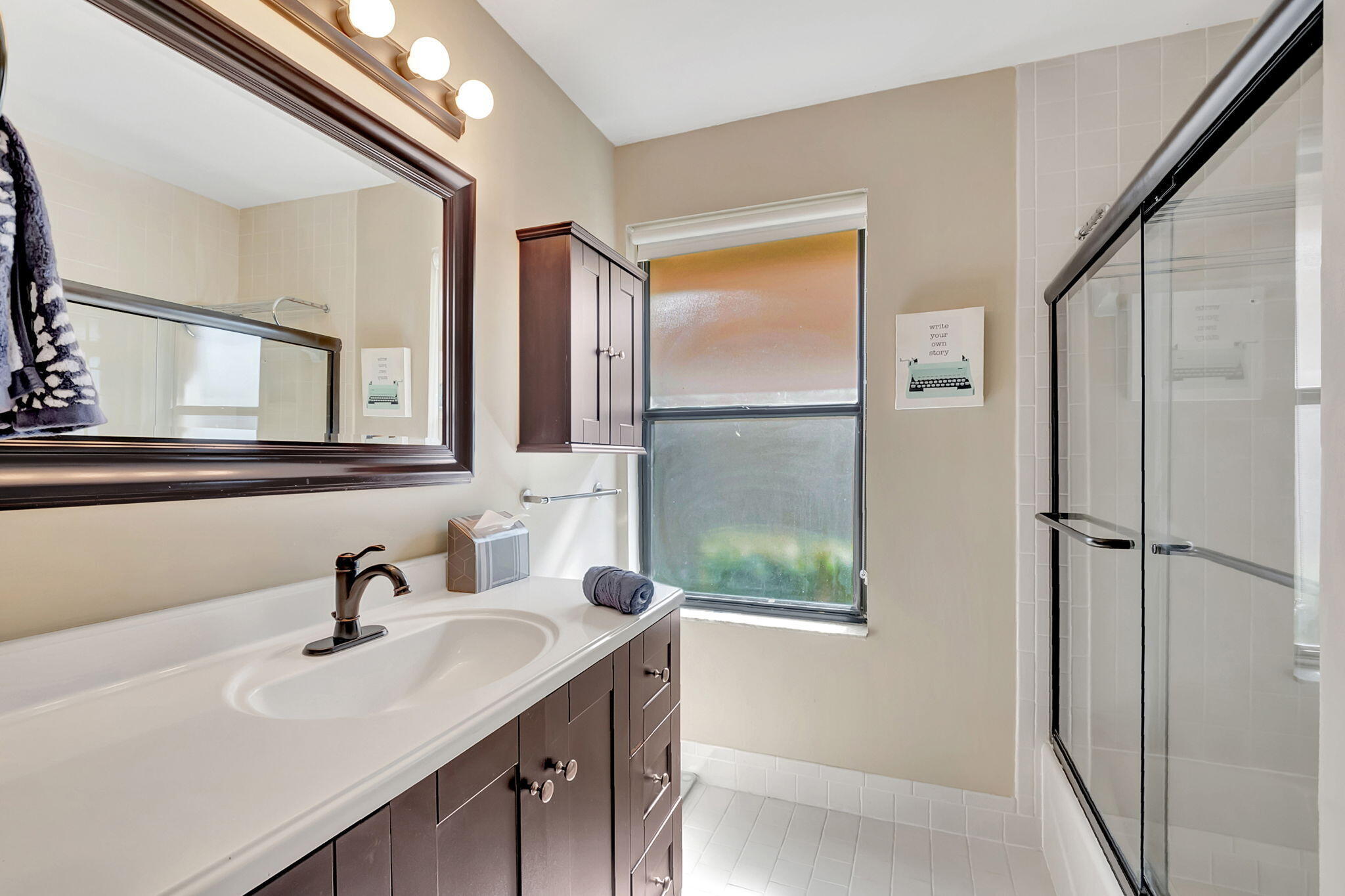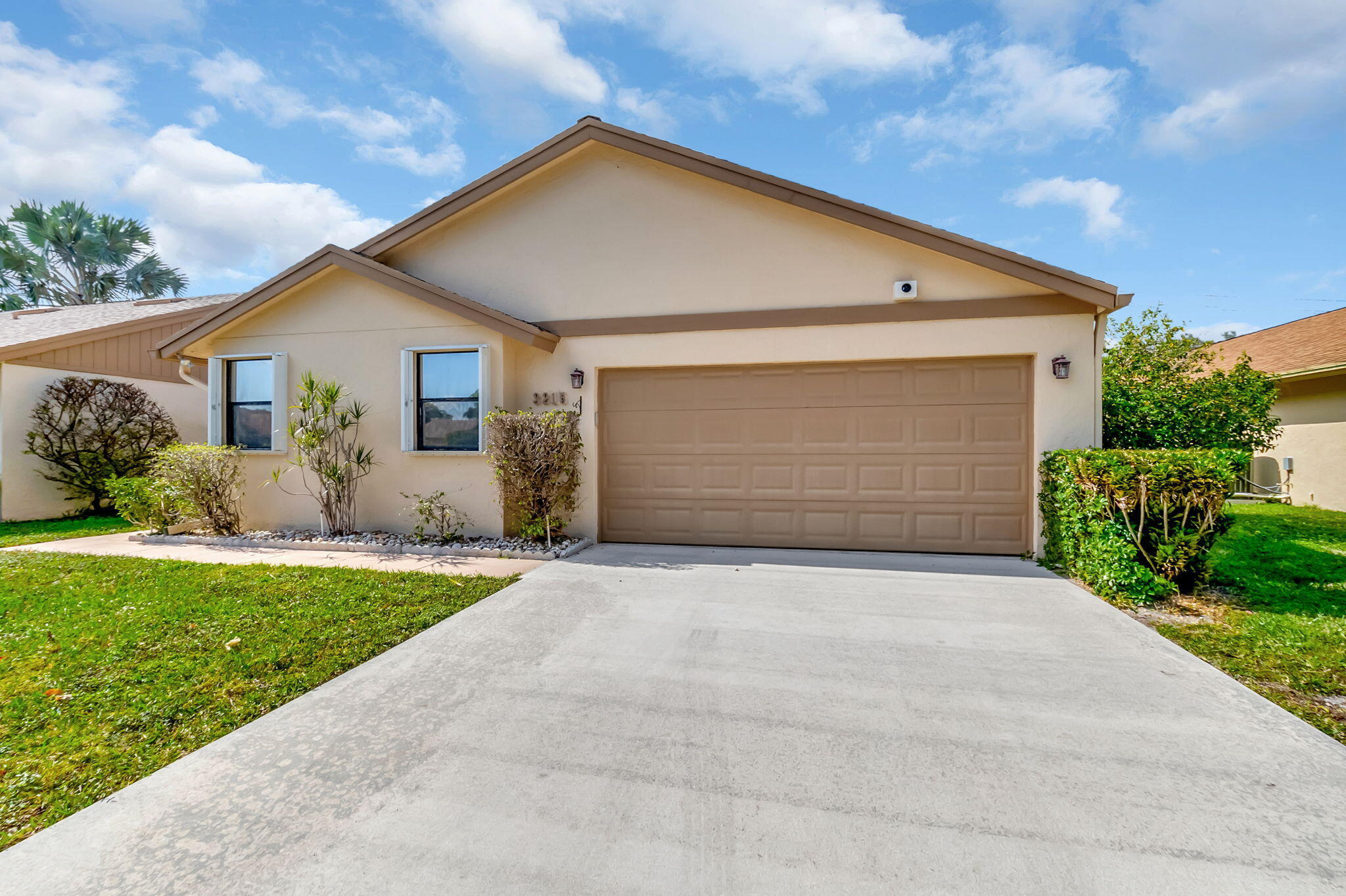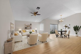 Welcome to this beautiful 2 bedroom/2 bathroom home on a quiet cul de sac with split floor plan in the tropical paradise that is Rainberry Bay, a 55+ guard gated community with security patrol. Light and bright kitchen with updated appliances is open to vaulted living area with large island for eating/storage with tranquil atrium view. Huge custom walk-in closet, remodeled primary shower and oversized 2 car garage! Bonus A/C Florida room can be converted to home office or a third bedroom with its own entrance. Private open patio with mature landscaping. Impact windows and accordion shutters. HOA includes roof maintenance, exterior painting, cable TV, pest control, grounds maintenance, reserve funds, manager on site, no pending assessments!Community offers active lifestyle amenities with five resort style pools, tennis and pickleball courts, updated clubhouse with fitness center, theater with live entertainment, card room, billiards, lots of specialty clubs to join, walking trail around serene, beautiful lake, pet-friendly. Just minutes from pristine beaches and Dynamic Downtown Delray Atlantic Ave shops and restaurants. Don't miss seeing this wonderful home and making it your own to enjoy with family and friends!