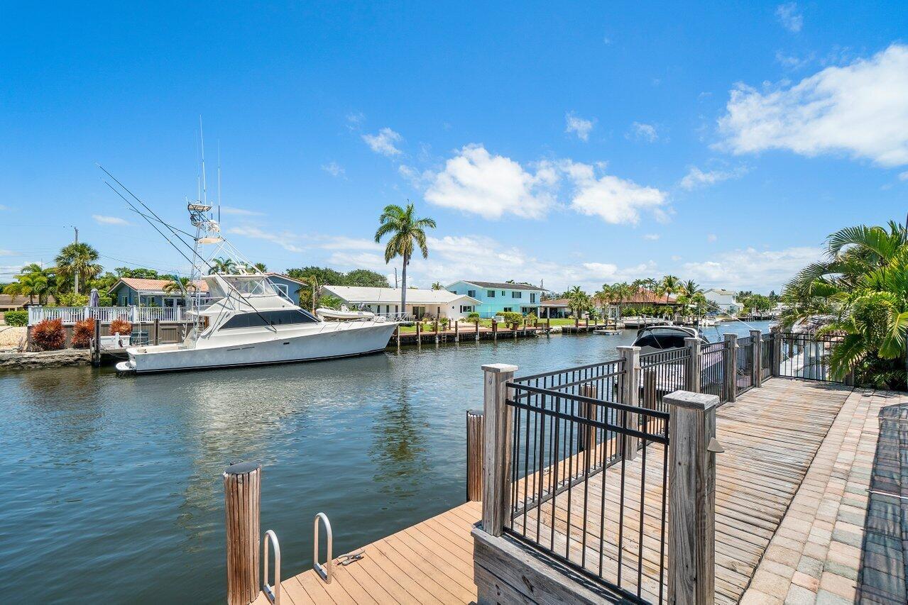 Welcome to your waterfront retreat in The Cove, Deerfield Beach!This 4-bedroom, 2-bathroom home with direct ocean access offers the ultimate Florida lifestyle. Featuring 80 feet of waterfront with a private dock, it's perfect for boating, paddleboarding, or simply relaxing by the water. Step inside to find a beautifully updated interior with brand-new impact windows and sliders, a modern kitchen with granite countertops and stainless-steel appliances, and elegant touches including crown molding, recessed lighting, and custom-built closets. The open-concept living spaces are filled with natural light, creating a bright, coastal feel throughout. Outdoors, enjoy your oversized pool, pet-friendly fenced yard, and plenty of space for entertaining. A two-car garage and circular drivewayadd convenience, while the tropical landscaping enhances the home's island-inspired design. Located just a short walk to The Cove shopping center, dining, and vibrant downtown Deerfield Beach, this home offers the perfect balance of comfort, luxury, and location. Move right in and start living the waterfront dream!