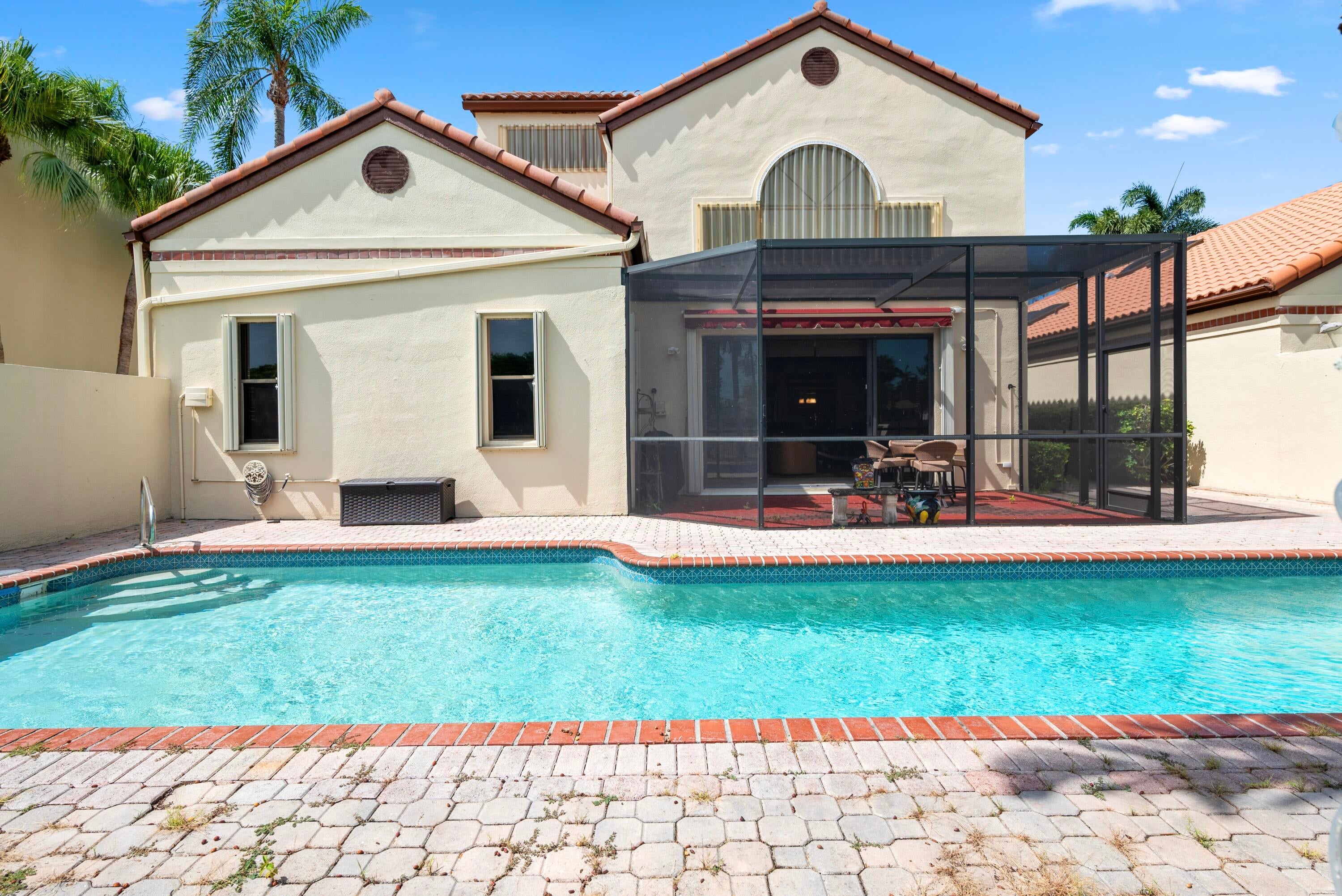 Welcome to 23452 Mirabella Circle South, an elegant waterfront oasis in sought after Boca Pointe, an optional country club community. This 3-bedroom, 2.5-bathroom home offers 2,101 square feet of stylish living space on a 7,026 square foot lot. Enjoy serene views from your private outdoor space or take a dip in the inviting heated private pool. Inside, the spacious and airy layout features a modern kitchen, complete with granite countertops and stainless steel appliances. Relax in the comfortable living areas or retreat to the generously sized bedrooms. Optional membership to the Boca Pointe Country Club is available offering full-time and seasonal social, tennis and golf options.