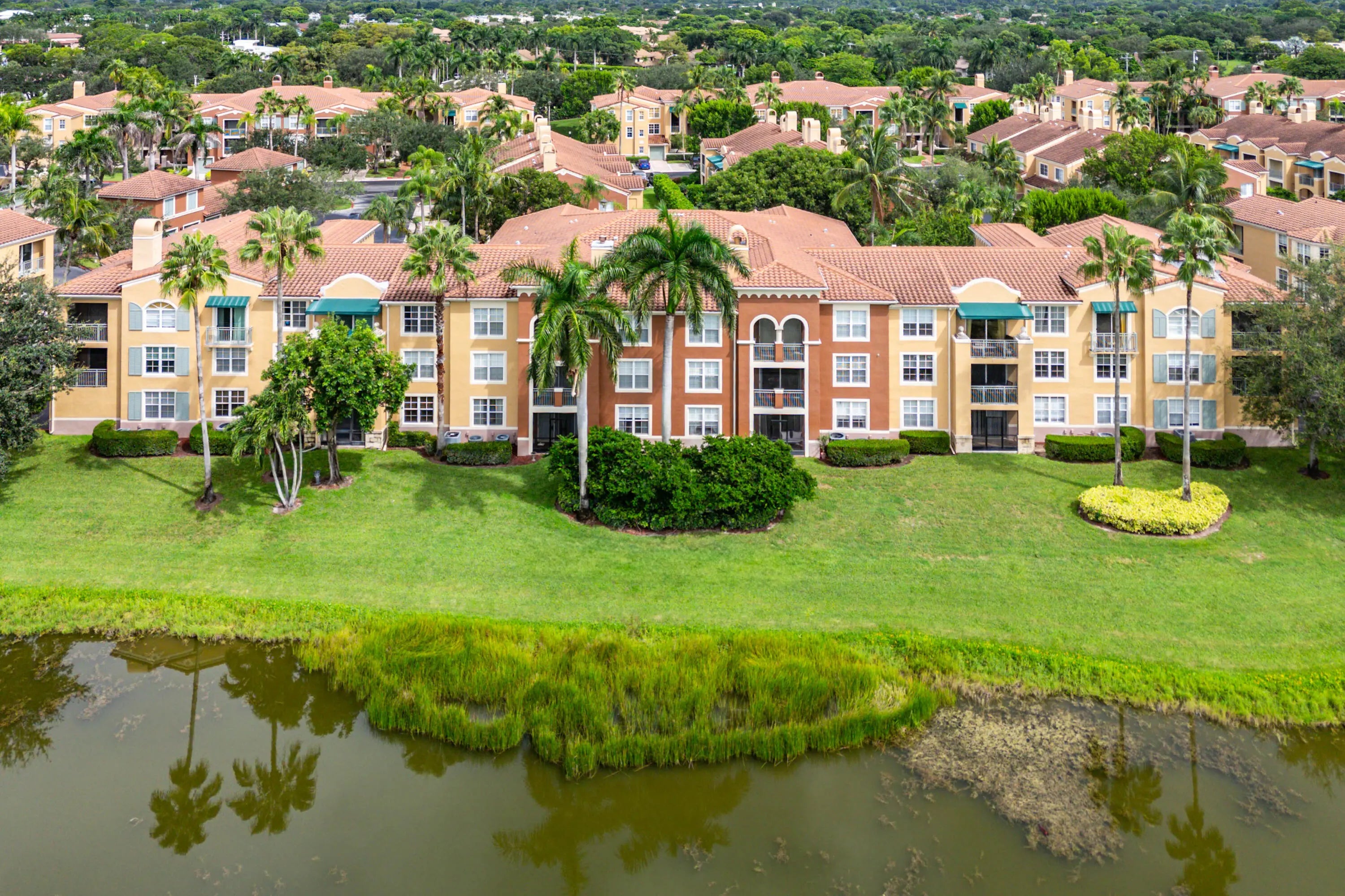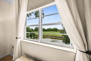 This beautifully updated penthouse corner unit offers a rare opportunity to own one of the most desirable residences in a premier Wellington-area community. Located on the top floor, this 3-bedroom, 2-bathroom home spans 1,627 square feet and showcases sweeping views of the golf course and water canal. With full hurricane-impact glass throughout, the interior is quiet, bright, and secure. Tile flooring flows through the main living areas, complemented by laminate in select spaces, creating a clean and cohesive aesthetic.The spacious primary suite features a walk-in closet and a luxurious private bath, while the second bedroom also includes its own walk-in closet and en-suite bath. A versatile third bedroom or den offers flexible living options.