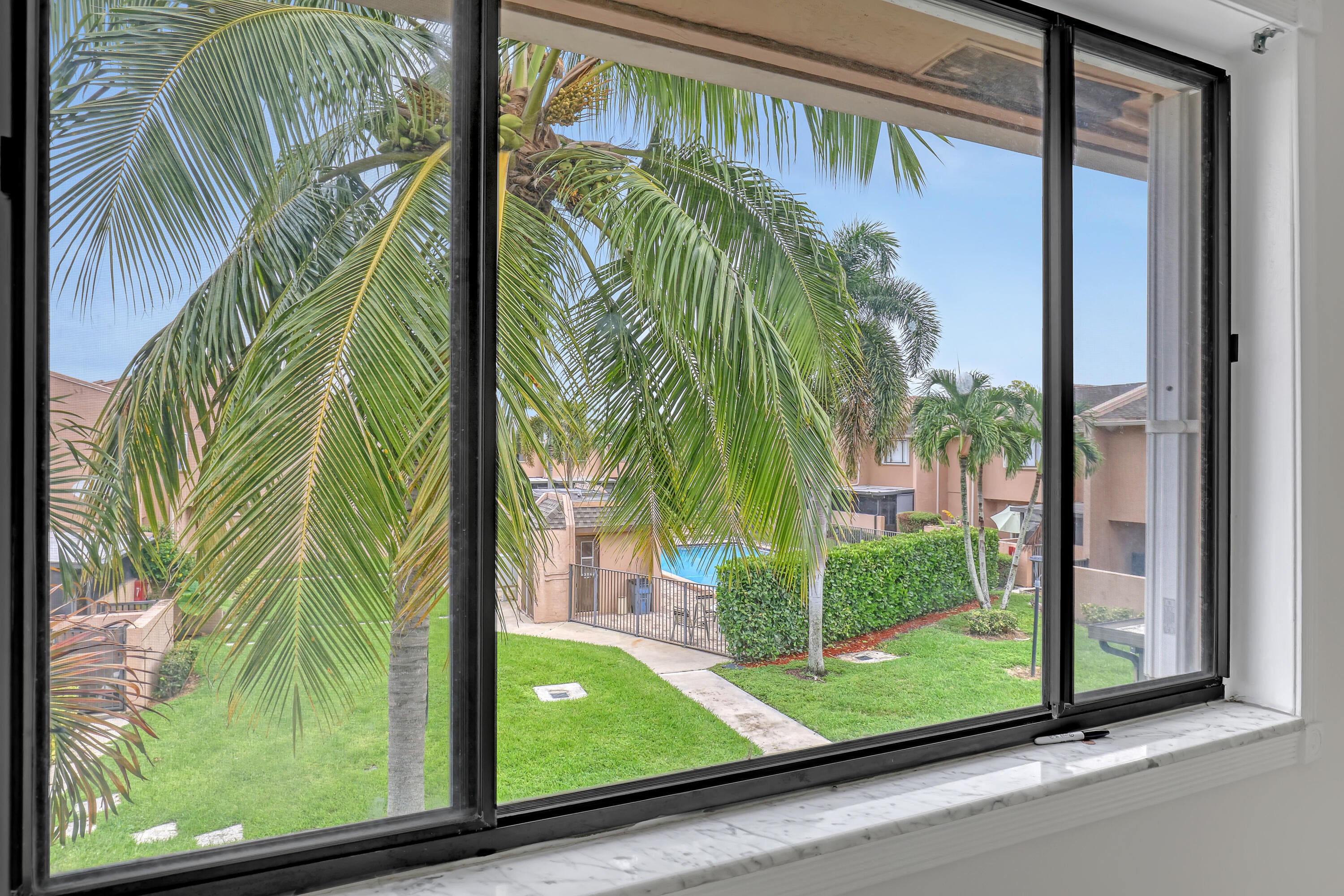 Welcome to this charming 3-bedroom, 2.5-bath corner Townhome in sought-after Royal Palm Village, located in the heart of Royal Palm Beach. This home is surrounded by parks, shopping, dining, and offers easy access to schools and highways.Inside, you'll find a spacious living room and bedrooms filled with natural light from large windows. The home features newer stainless steel kitchen appliances, granite countertops, and tile flooring. Enjoy comfort with a newer AC and water heater, along with hurricane shutters for added peace of mind. In addition, two designated parking spots right in front. The screened-in patio feels like a private yard, perfect for entertaining, with the community pool just steps away.The HOA covers roof maintenance, water, sewer, trash andexterior maintenance for a hassle-free lifestyle. Don't miss this opportunity to live near Commons and Veterans Park, the RPB Cultural Center, and just 20 minutes from the beaches, providing easy access to Palm Beach County attractions. Act fast! Schedule your showing today!