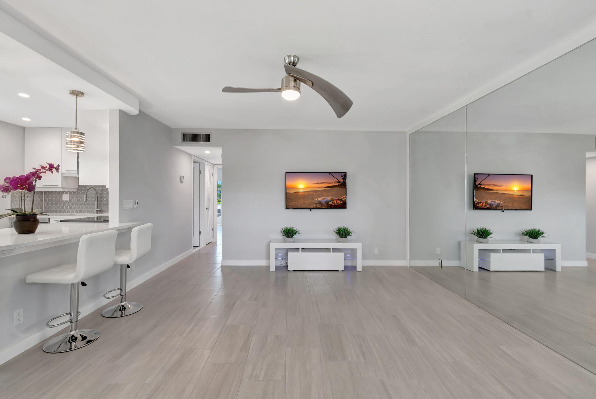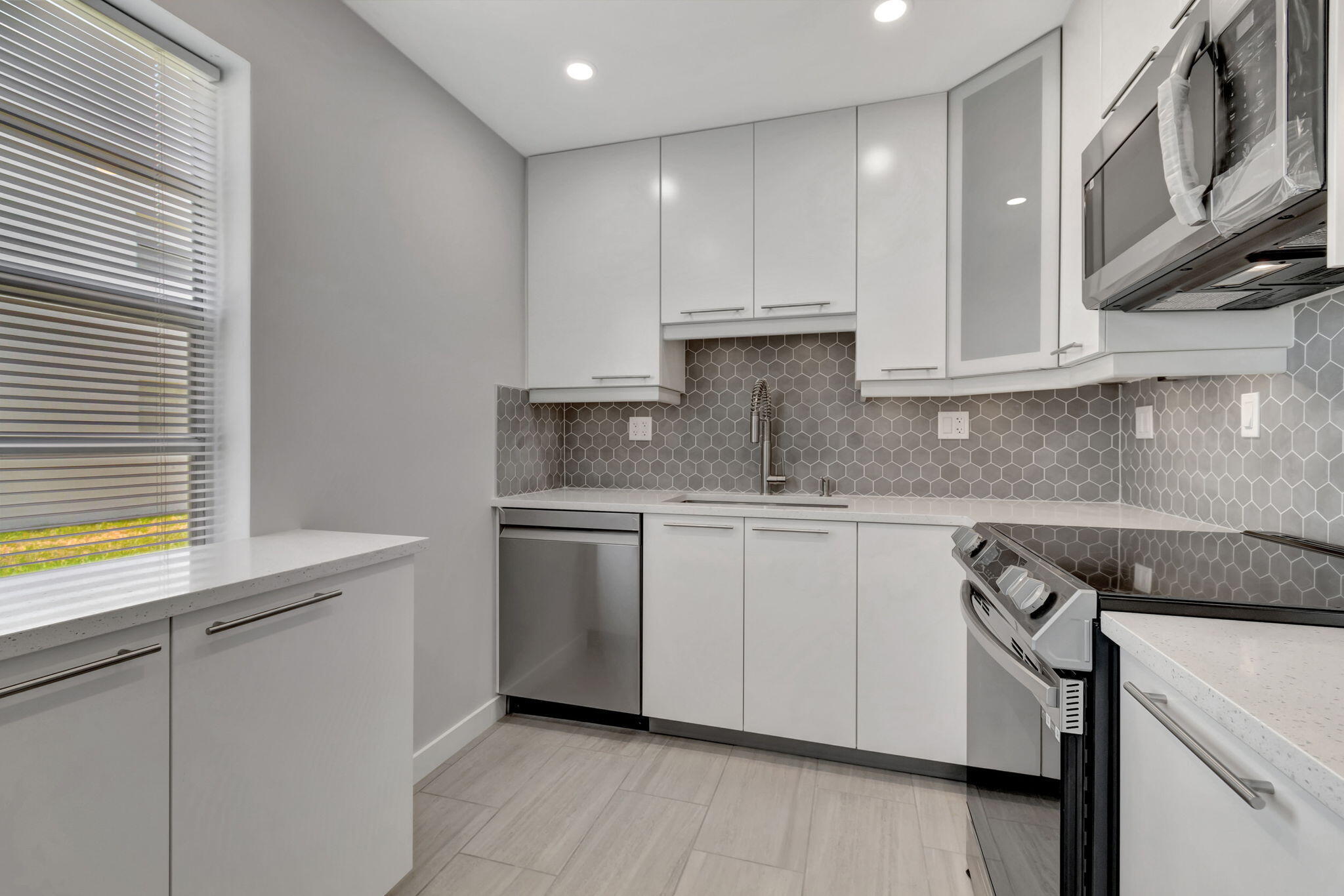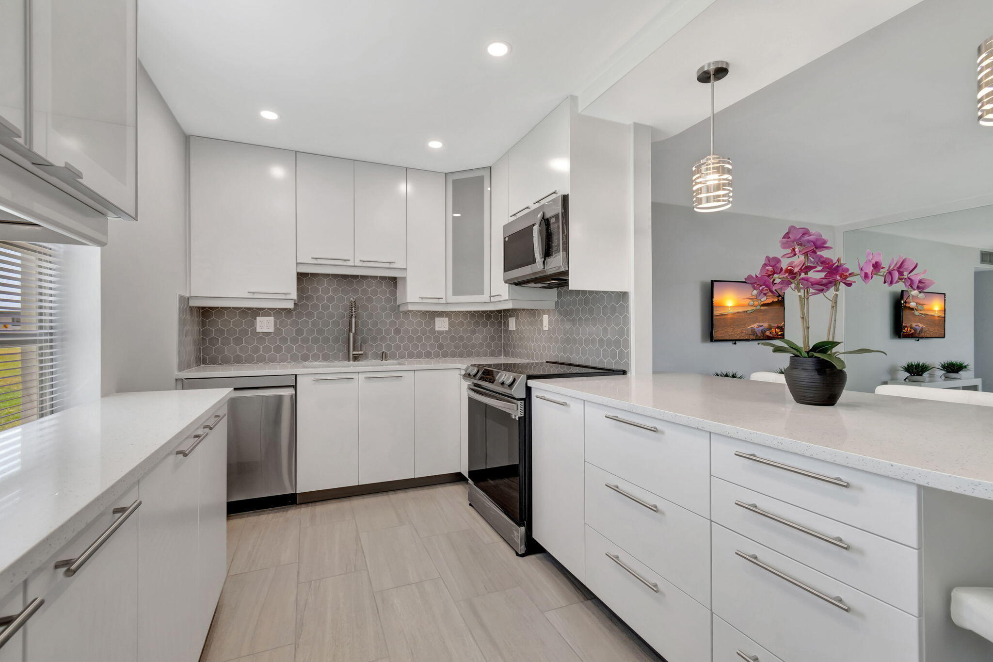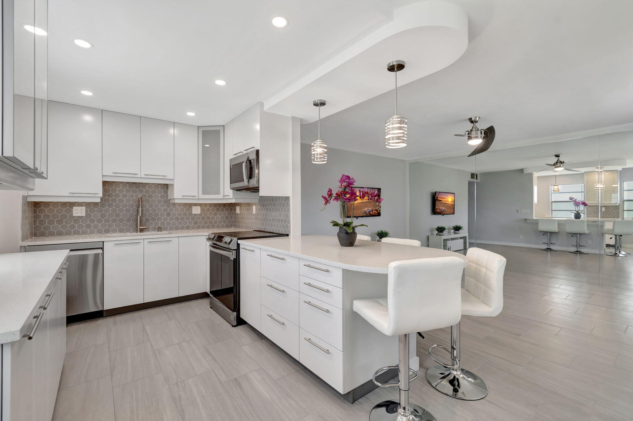 Stunning Custom Remodel!Welcome to 164 Normandy Lane in Delray Beach -- a rarely available, ground-floor corner condo that has been completely transformed with high-end finishes and custom details throughout. This designer residence showcases quality craftsmanship with impact glass, elegant porcelain flooring, and breathtaking golf course views. The gourmet kitchen boasts sleek cabinetry, quartz countertops, and stainless steel appliances, while both bathrooms exude a spa-like elegance with modern tile work and premium fixtures. The spacious primary suite offers a serene retreat with warm natural light and refined touches. Ideally located near the entrance with easy parking, this move-in ready home is nestled within a vibrant 55+ community offering world-class amenities--golf, tennis.