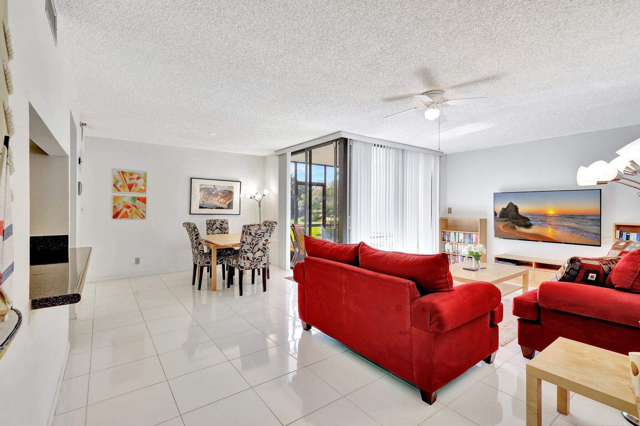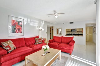 Excellent, first floor condo still available for season 2026. Take in beautiful views of the lake and 2 illuminated fountains from the enclosed balcony which is perfect for use as an office. Community has walking trails, pool, and fitness rooms. The pool is located right behind this building. Free public tennis courts are available within walking distance. Small RVs are allowed to be parked. Close proximity to the beach, world class dining at excellent restaurants, shopping (Trader Joe's, brand new Whole Foods, Target, etc), and vibrant downtown Delray.