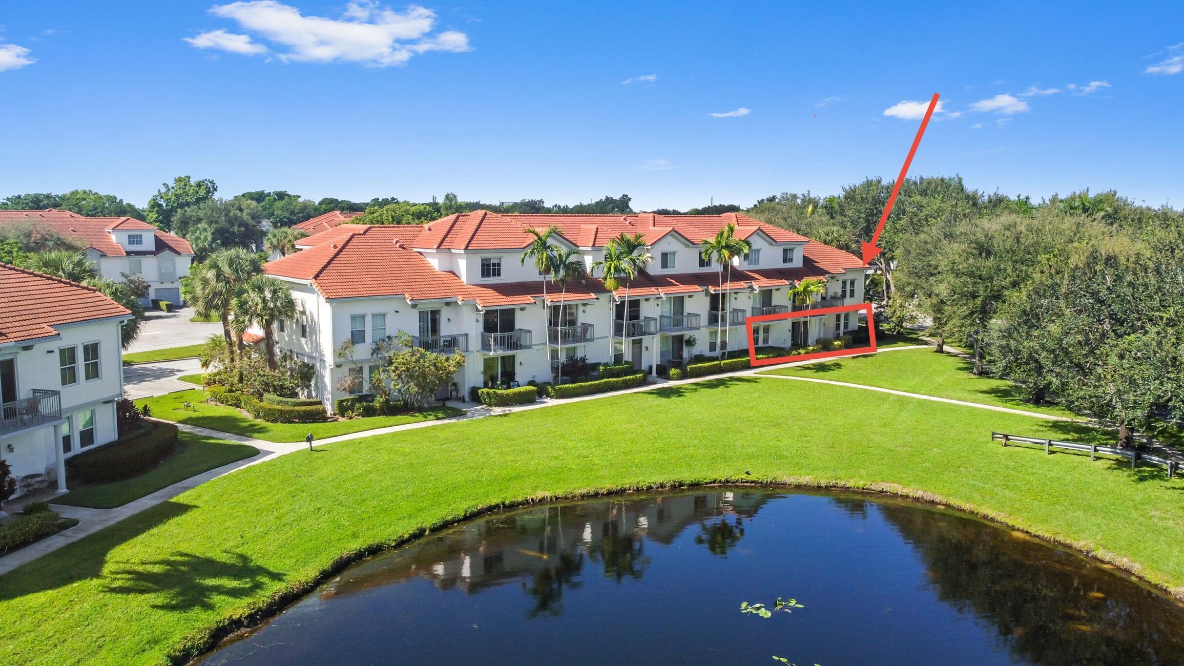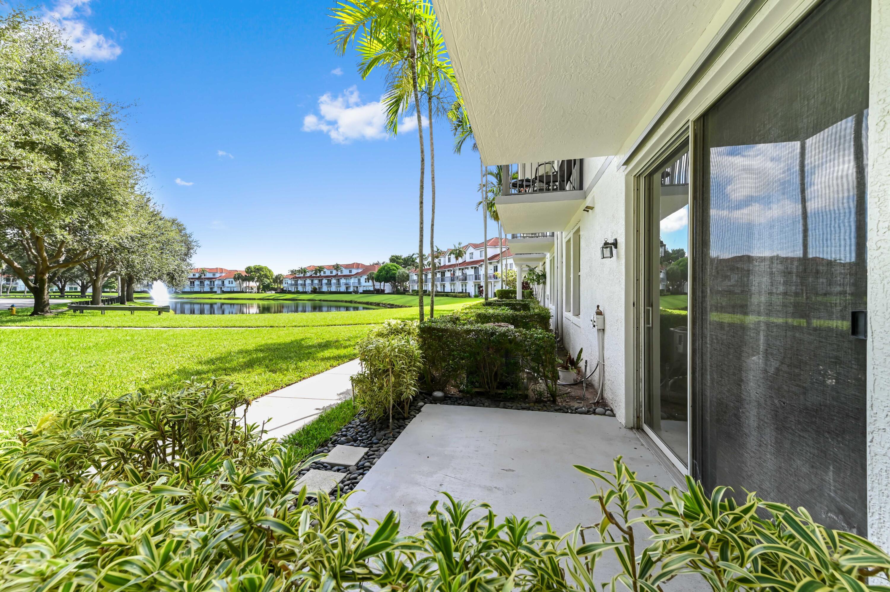 ONLY A FEW MINUTES DRIVE FROM THE BEACH! This RARELY AVAILABLE 1st Floor, 2 BR, 2 BA CORNER residence is centrally located within TERRA VERDE and in a PRIME EAST DELRAY location. The unit offers beautiful direct unobstructed LAKE and GARDENS views. OPEN FLOOR PLAN. Large walk-in closets. One-car garage. Storm Shutters. TILE flooring throughout. STAINLESS STEEL appliances. GRANITE counters in kitchen. Minutes from historic Downtown, I-95, Tri-Rail station, Whole Foods Market, Target store, Fresh Market, Trader Joe's, Walmart and more, Tierra Verde is a RESORT-STYLE PRIVATE GATED COMMUNITY with extensive high-end amenities: heated pool, bike/walk path, fitness center, lighted tennis/ pickleball courts, basketball, volleyball, picnic & grilling areas, gazebos and children playground.clubhouse,business center, trash compactor, on-site Property Manager. Roof 2019. Recently painted. PET FRIENDLY. INVESTOR FRIENDLY. CAN RENT IMMEDIATELY AFTER CLOSING. LOW-COA & robust RESERVES!