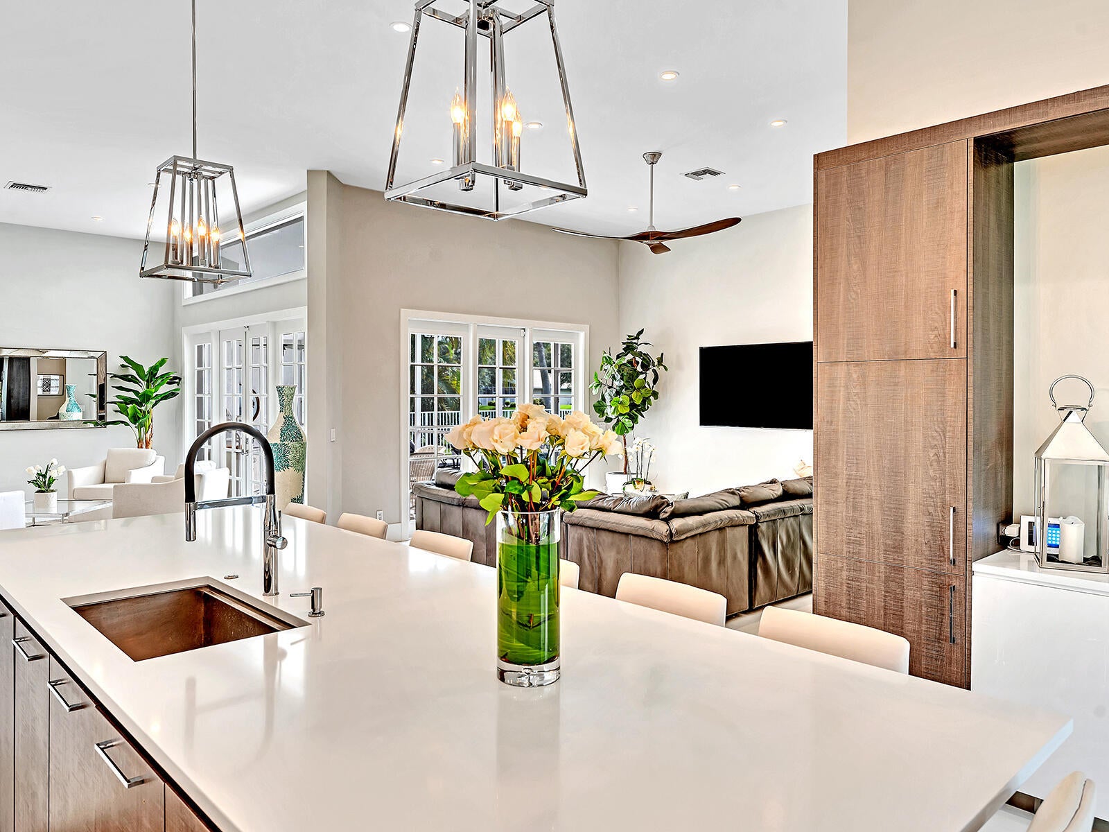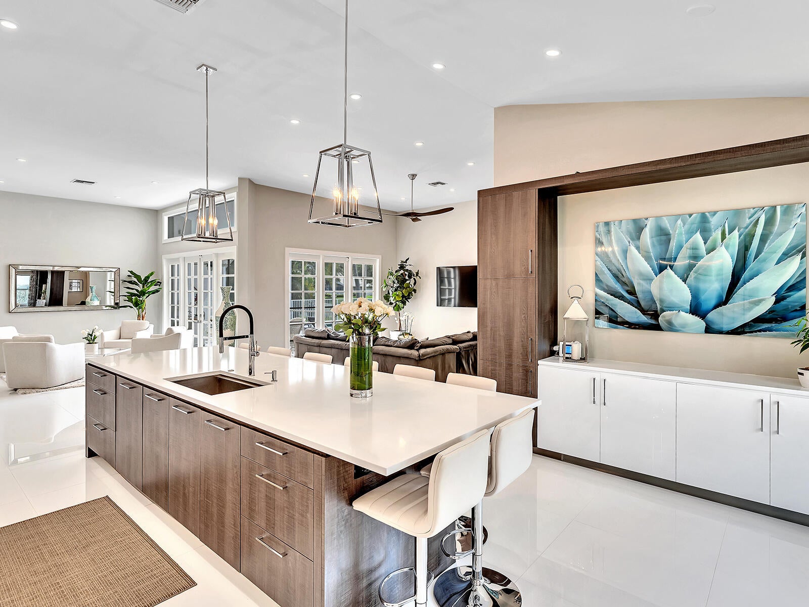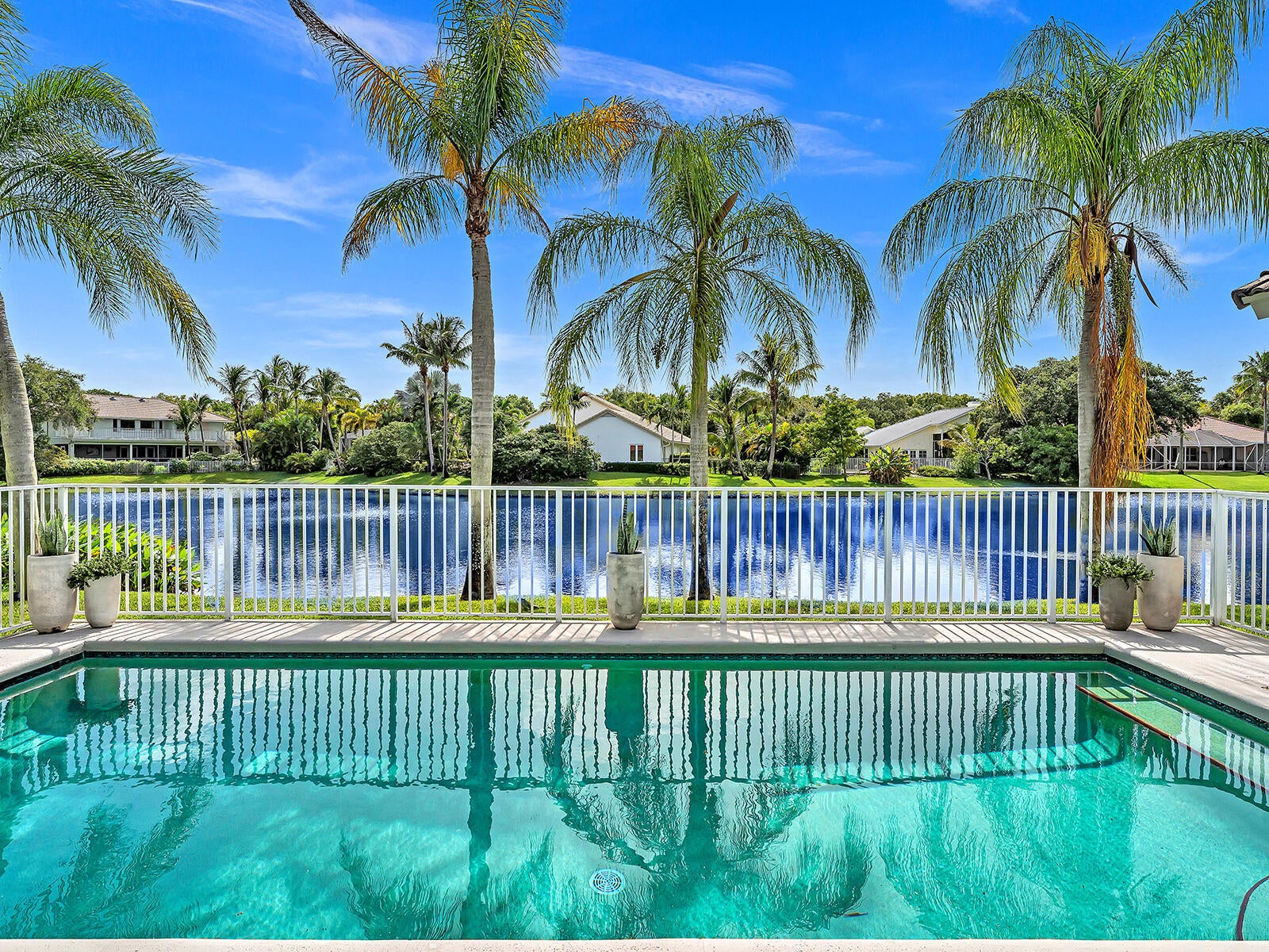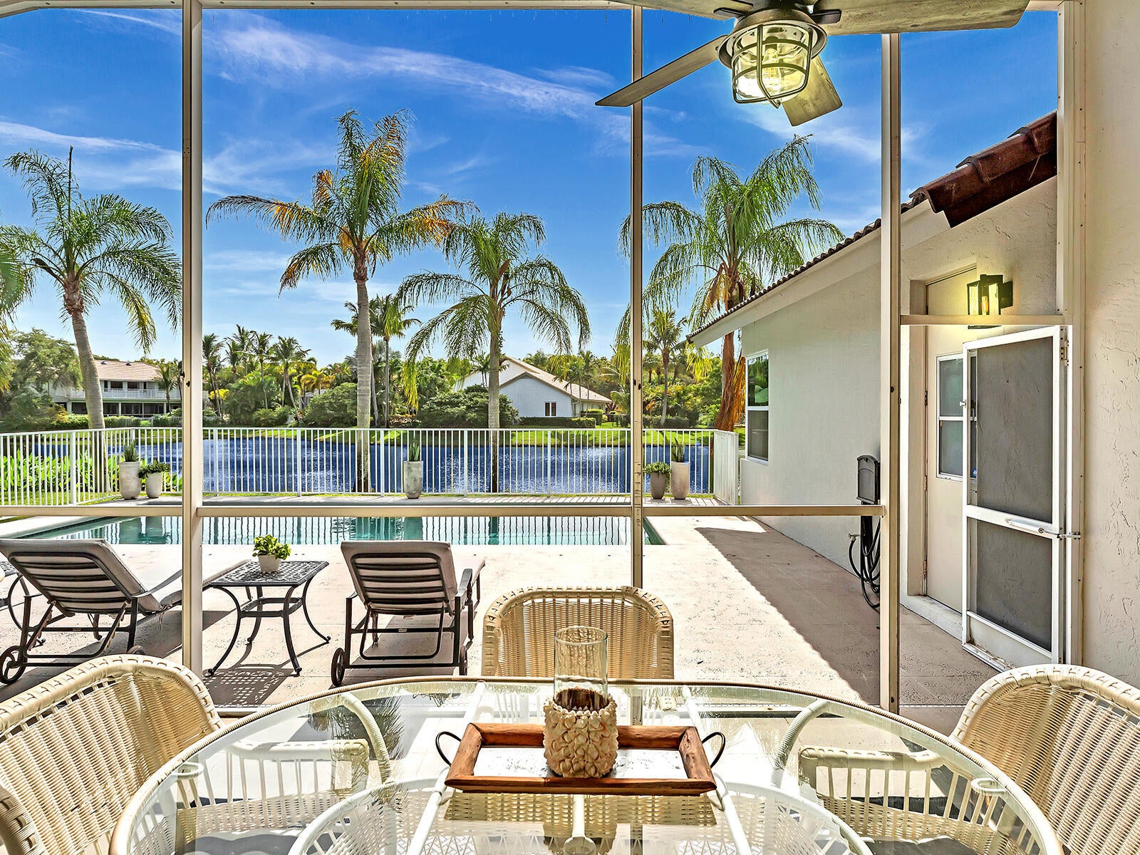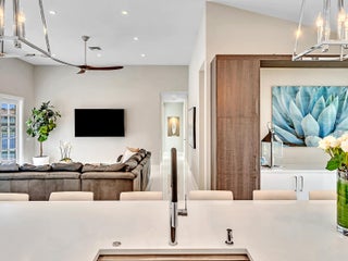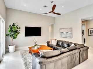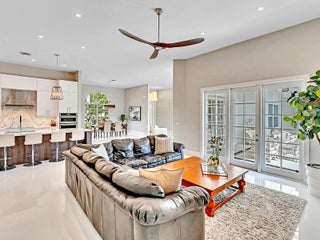 This stunning contemporary 4-bedroom home is located in the highly desirable Andover community. Set among palm trees and live oaks, the 2,754 sq ft residence offers serene lake views, a spacious screened lanai, and an open sports pool. The open-concept design, with soaring ceilings and oversized white glass tile floors, is ideal for entertaining. The custom gourmet kitchen features a 14-foot white quartz island and top-of-the-line stainless steel Jenn-Air appliances, including an induction cooktop and a wine fridge. The master suite boasts a luxurious spa-like ensuite, complete with a large soaking tub and a walk-in shower for ultimate relaxation. Andover is a charming, family-friendly gated community, located just minutes from downtown Delray Beach, residents enjoy convenient accessto restaurants, nightlife, and pristine beaches.