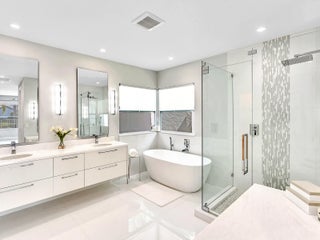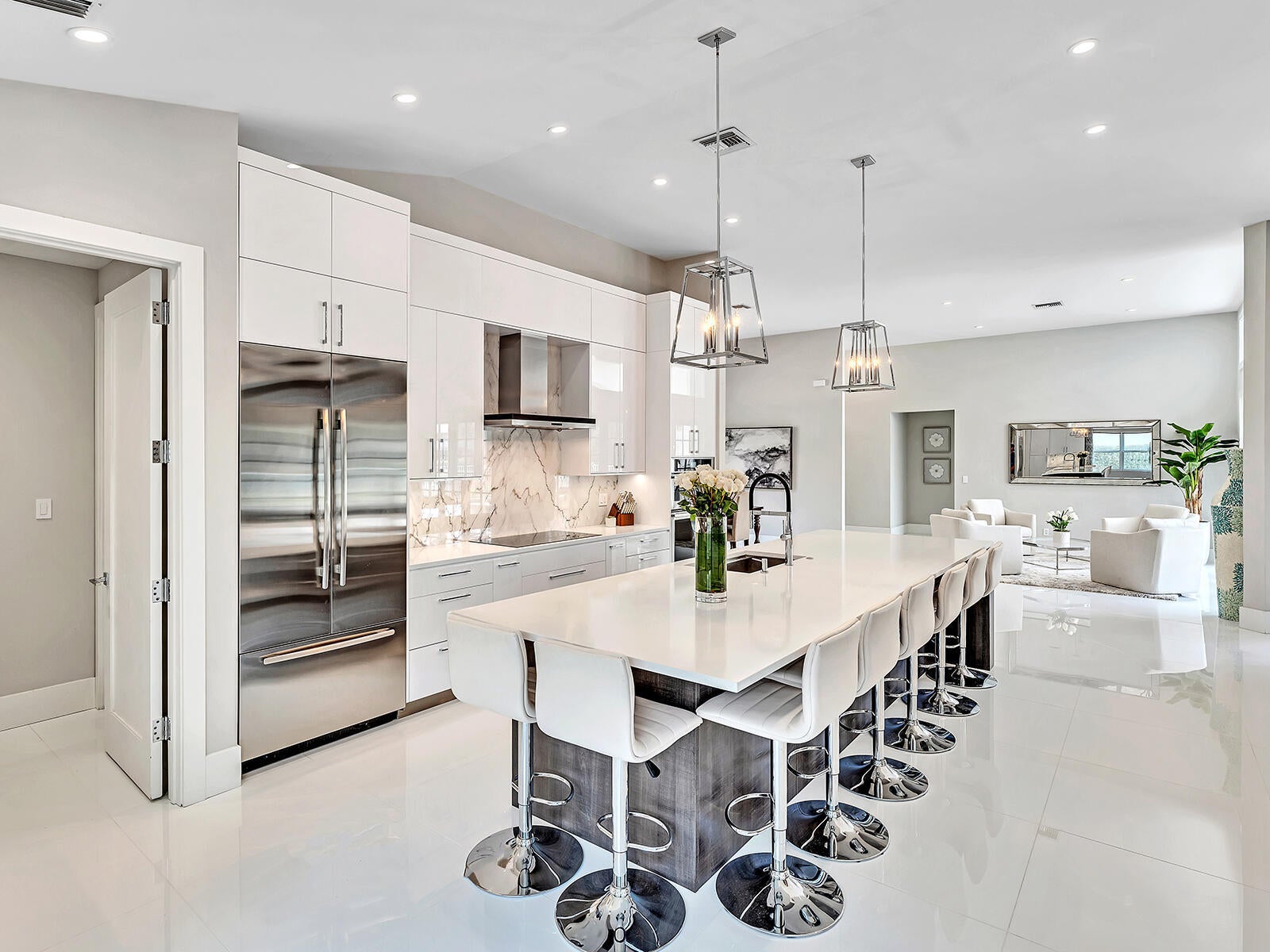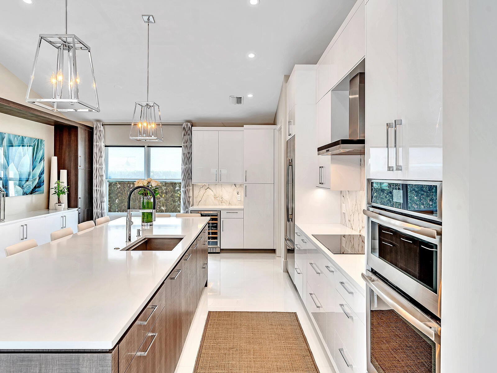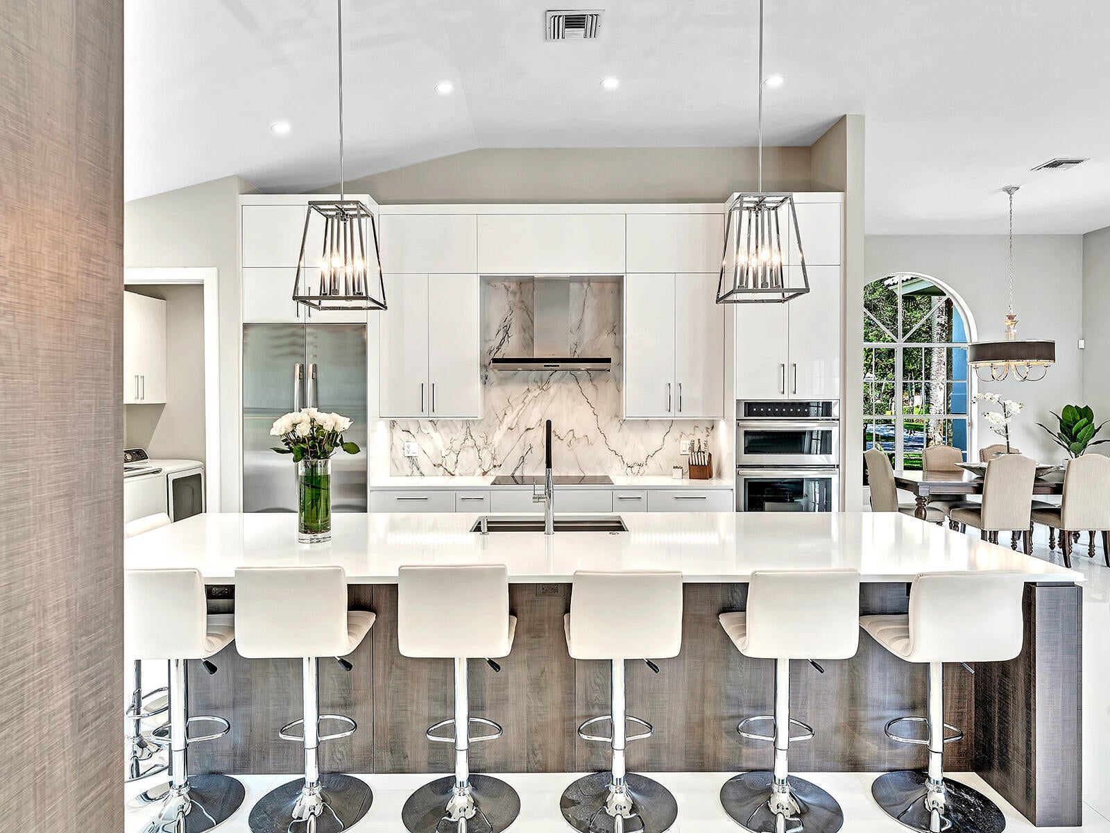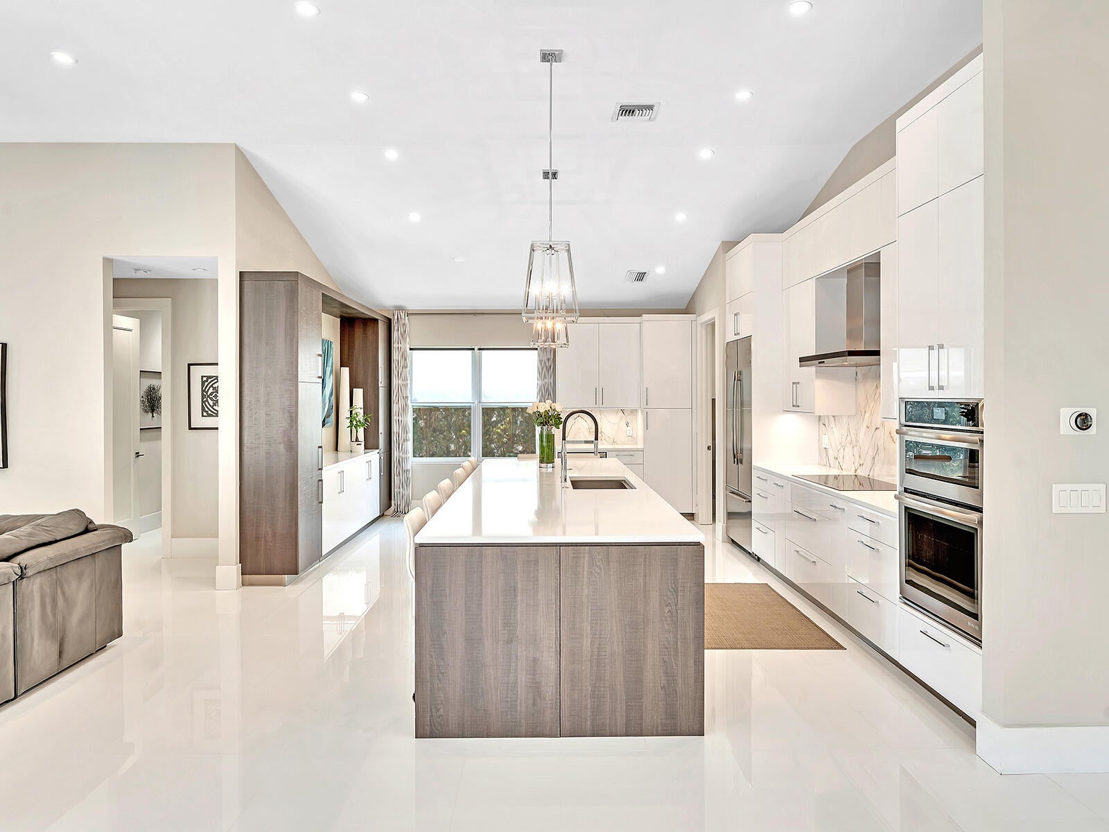 This stunning contemporary 4-bedroom home is located in the highly desirable Andover community. Set among palm trees and live oaks, the 2,754 sq ft residence offers serene lake views, a spacious screened lanai, and an open sports pool. The open-concept design, with soaring ceilings and oversized white glass tile floors, is ideal for entertaining. The custom gourmet kitchen features a 14-foot white quartz island and top-of-the-line stainless steel Jenn-Air appliances, including an induction cooktop and a wine fridge. The master suite boasts a luxurious spa-like ensuite, complete with a large soaking tub and a walk-in shower for ultimate relaxation. Andover is a charming, family-friendly gated community, located just minutes from downtown Delray Beach, residents enjoy convenient accessto restaurants, nightlife, and pristine beaches.