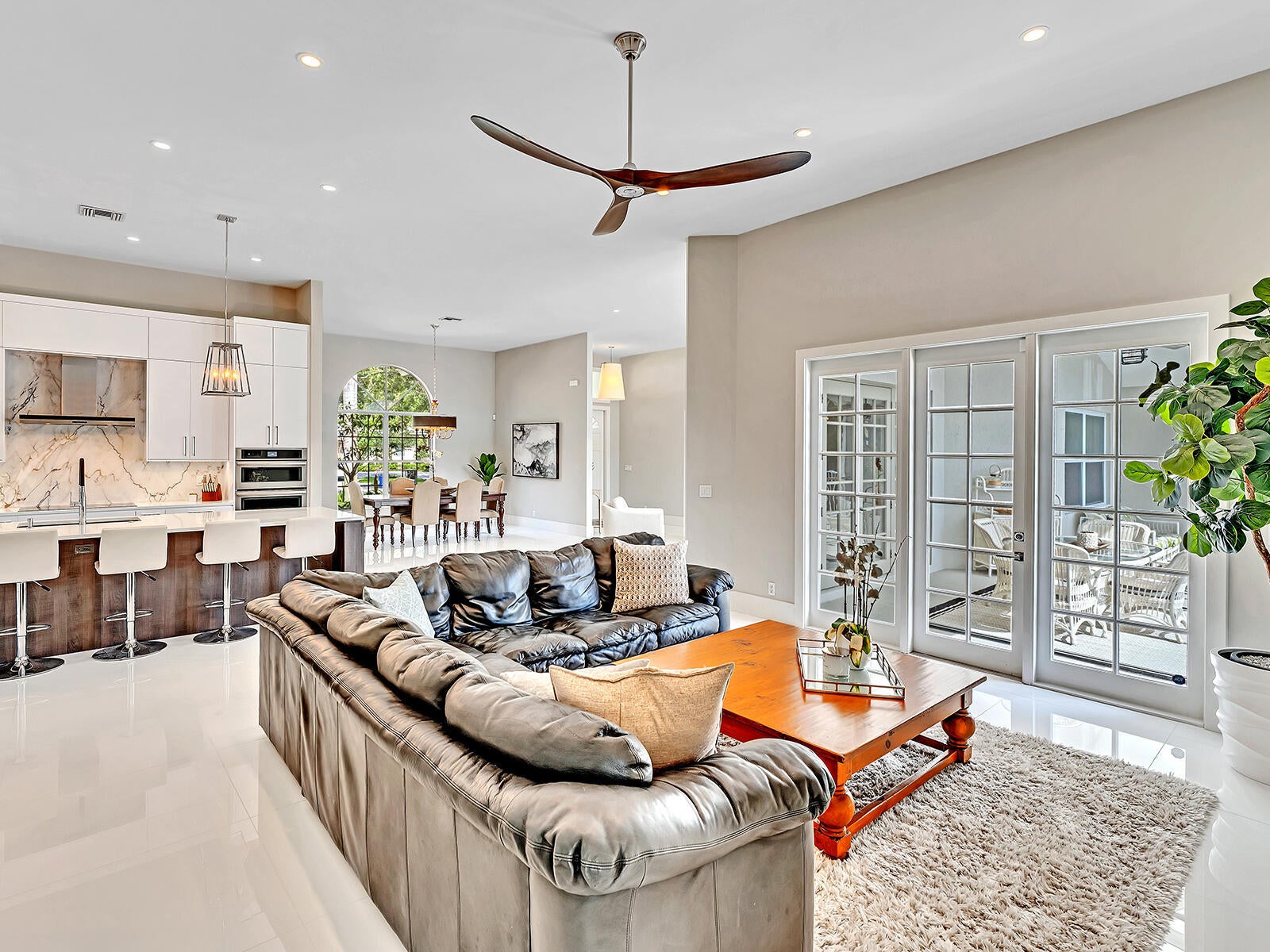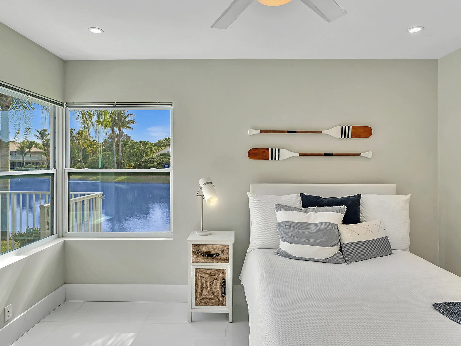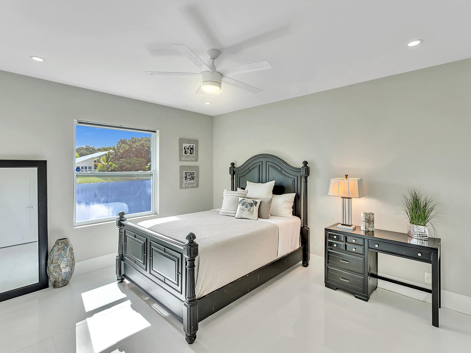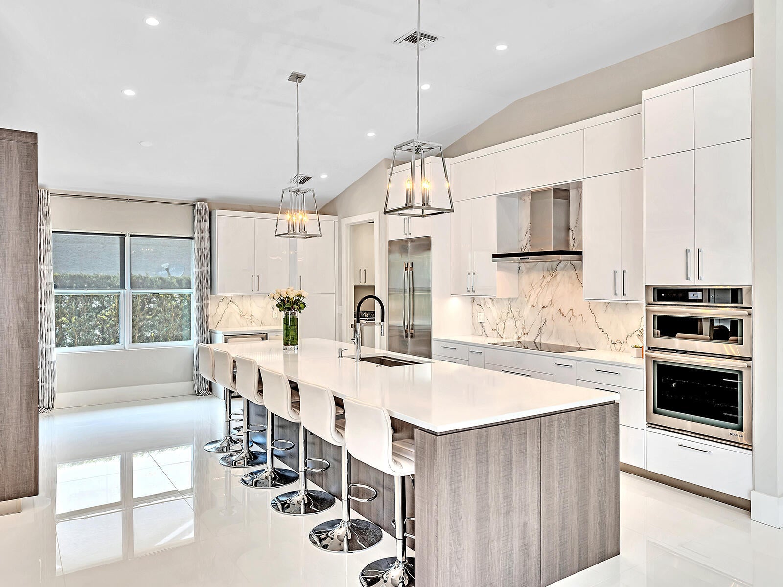 This stunning contemporary 4-bedroom home is located in the highly desirable Andover community. Set among palm trees and live oaks, the 2,754 sq ft residence offers serene lake views, a spacious screened lanai, and an open sports pool. The open-concept design, with soaring ceilings and oversized white glass tile floors, is ideal for entertaining. The custom gourmet kitchen features a 14-foot white quartz island and top-of-the-line stainless steel Jenn-Air appliances, including an induction cooktop and a wine fridge. The master suite boasts a luxurious spa-like ensuite, complete with a large soaking tub and a walk-in shower for ultimate relaxation. Andover is a charming, family-friendly gated community, located just minutes from downtown Delray Beach, residents enjoy convenient accessto restaurants, nightlife, and pristine beaches.