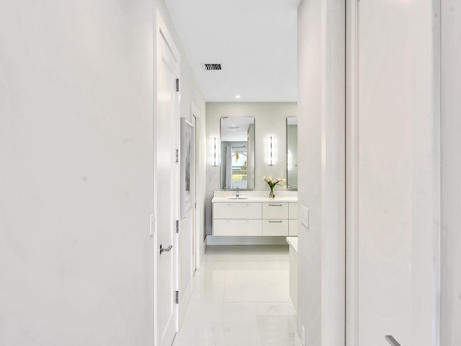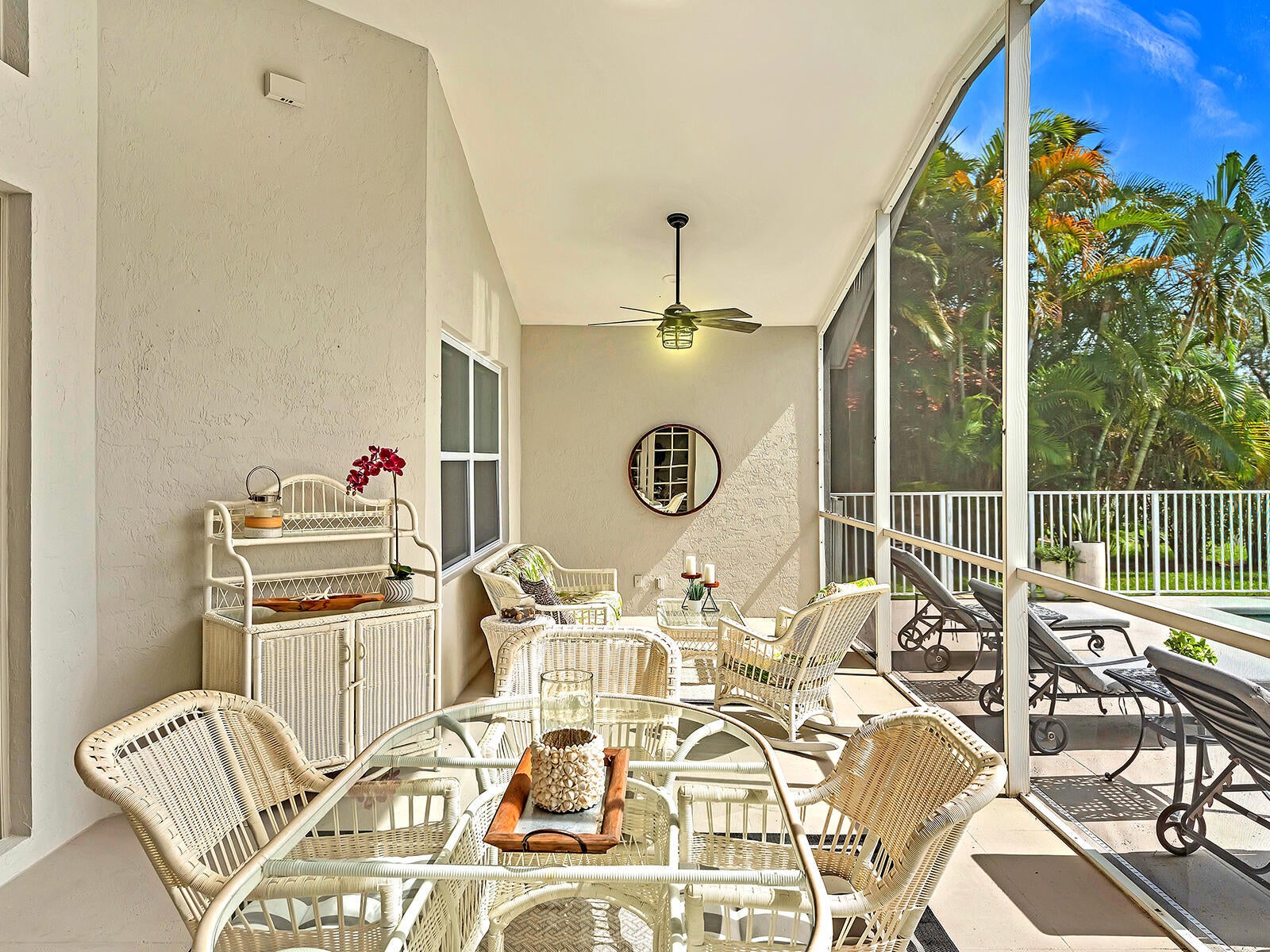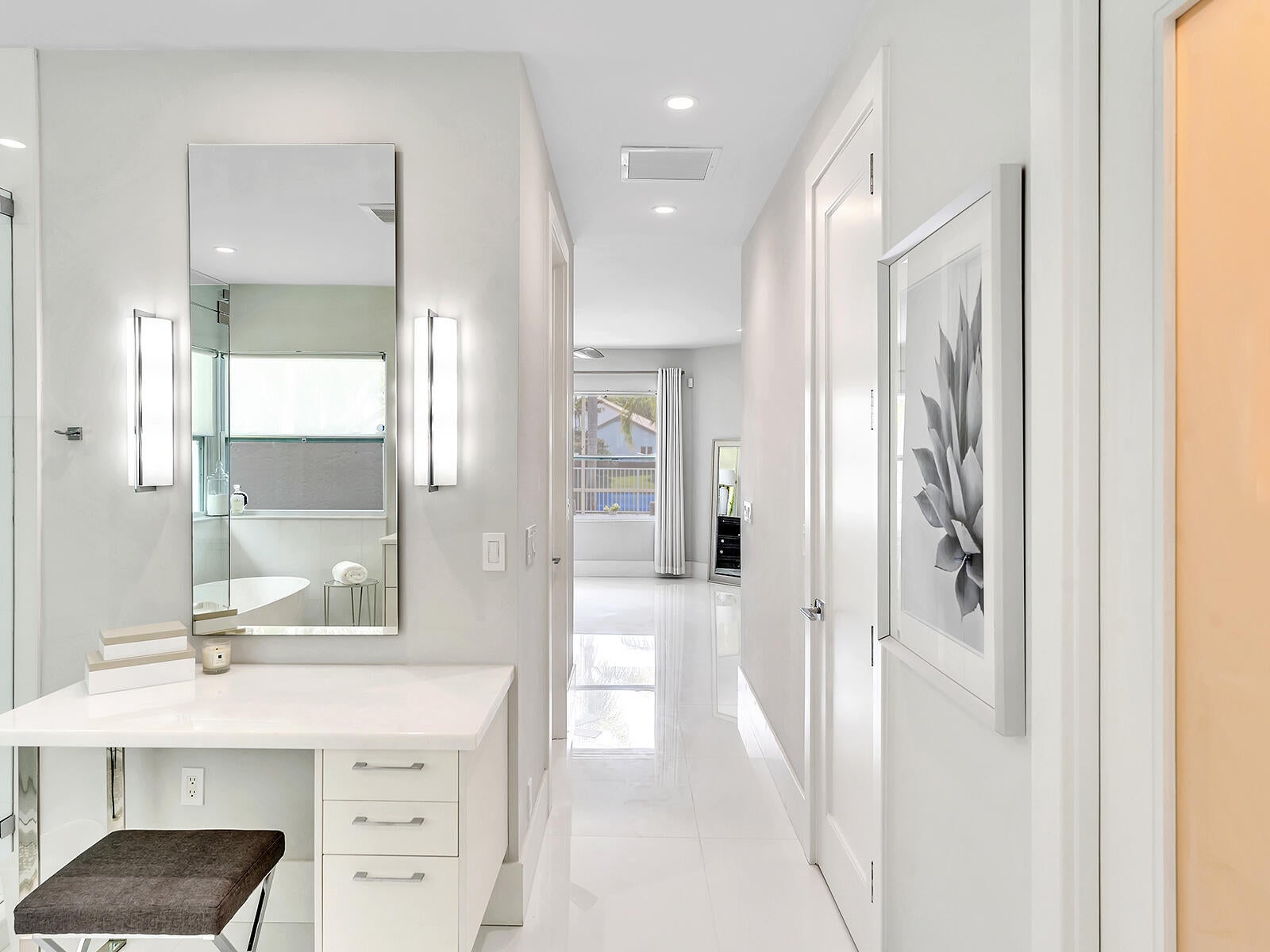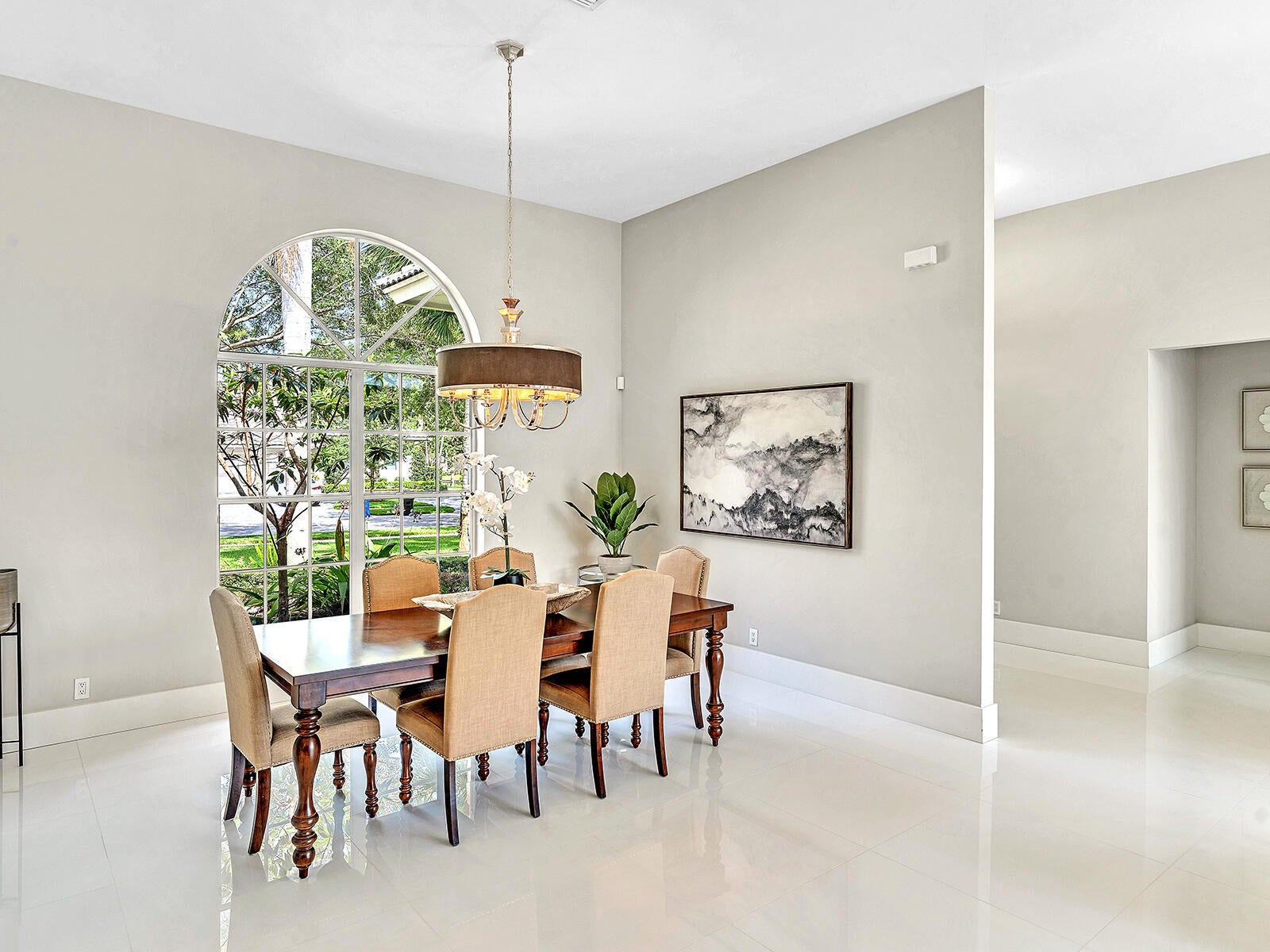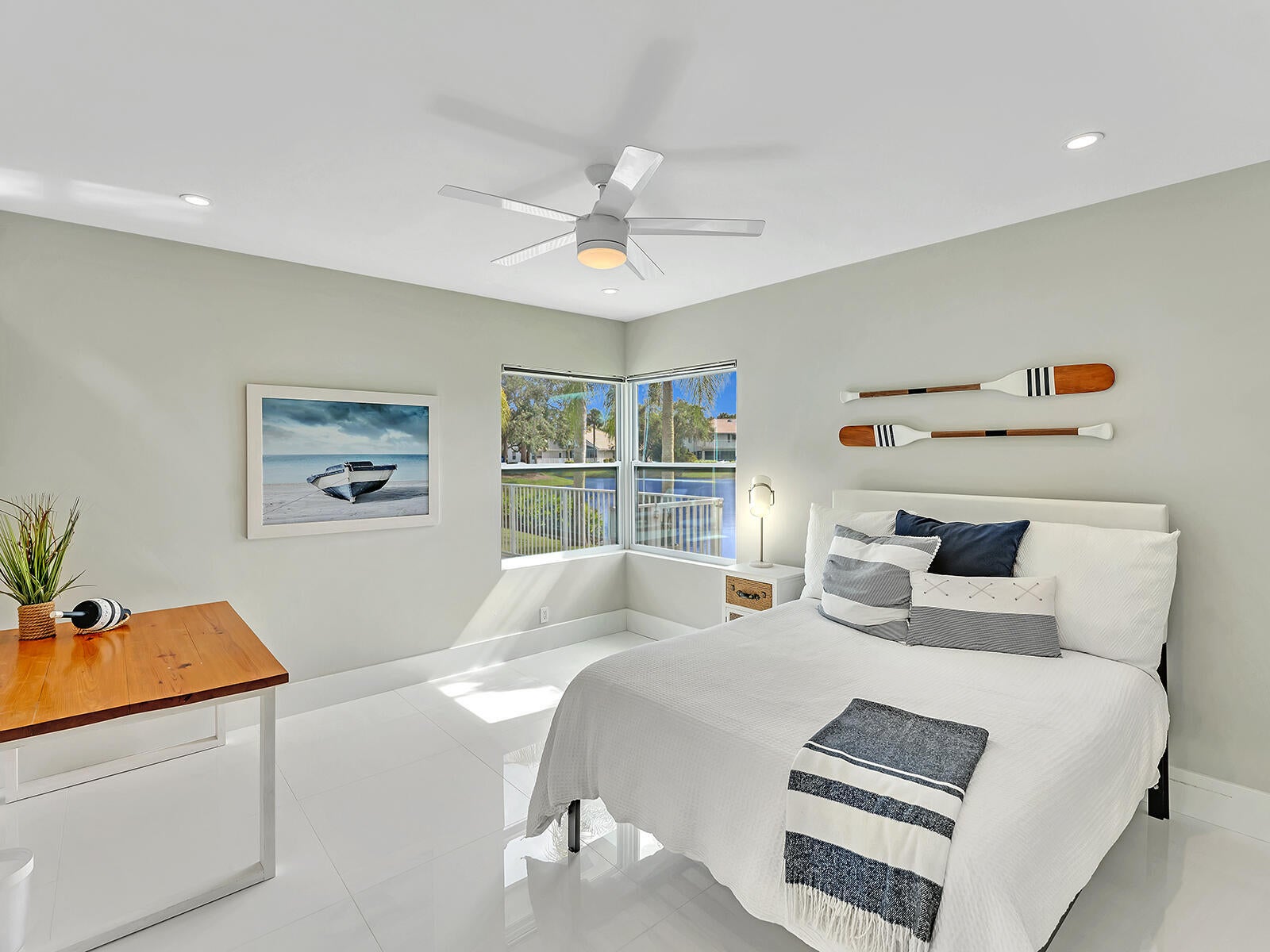 This stunning contemporary 4-bedroom home is located in the highly desirable Andover community. Set among palm trees and live oaks, the 2,754 sq ft residence offers serene lake views, a spacious screened lanai, and an open sports pool. The open-concept design, with soaring ceilings and oversized white glass tile floors, is ideal for entertaining. The custom gourmet kitchen features a 14-foot white quartz island and top-of-the-line stainless steel Jenn-Air appliances, including an induction cooktop and a wine fridge. The master suite boasts a luxurious spa-like ensuite, complete with a large soaking tub and a walk-in shower for ultimate relaxation. Andover is a charming, family-friendly gated community, located just minutes from downtown Delray Beach, residents enjoy convenient accessto restaurants, nightlife, and pristine beaches.