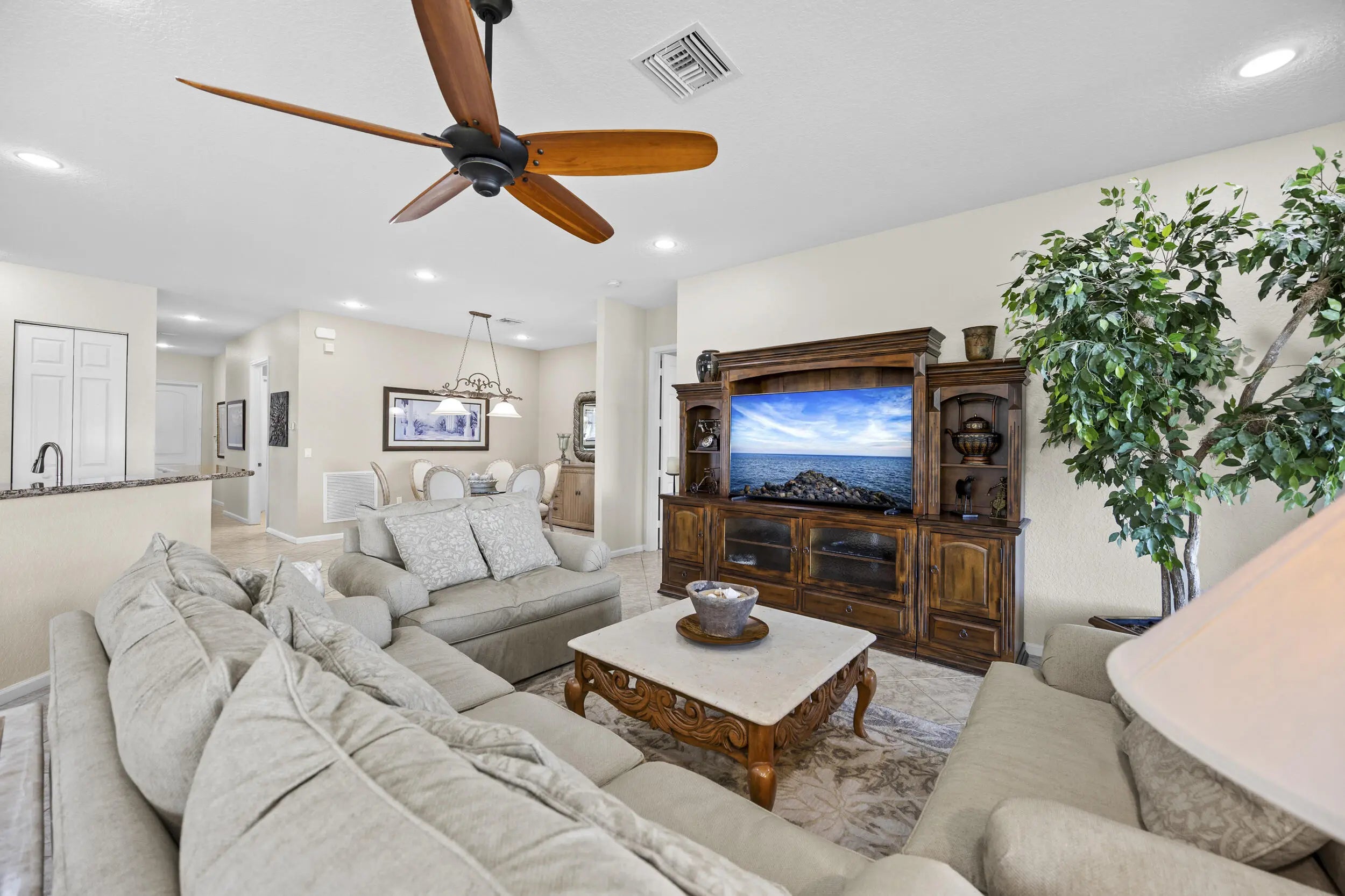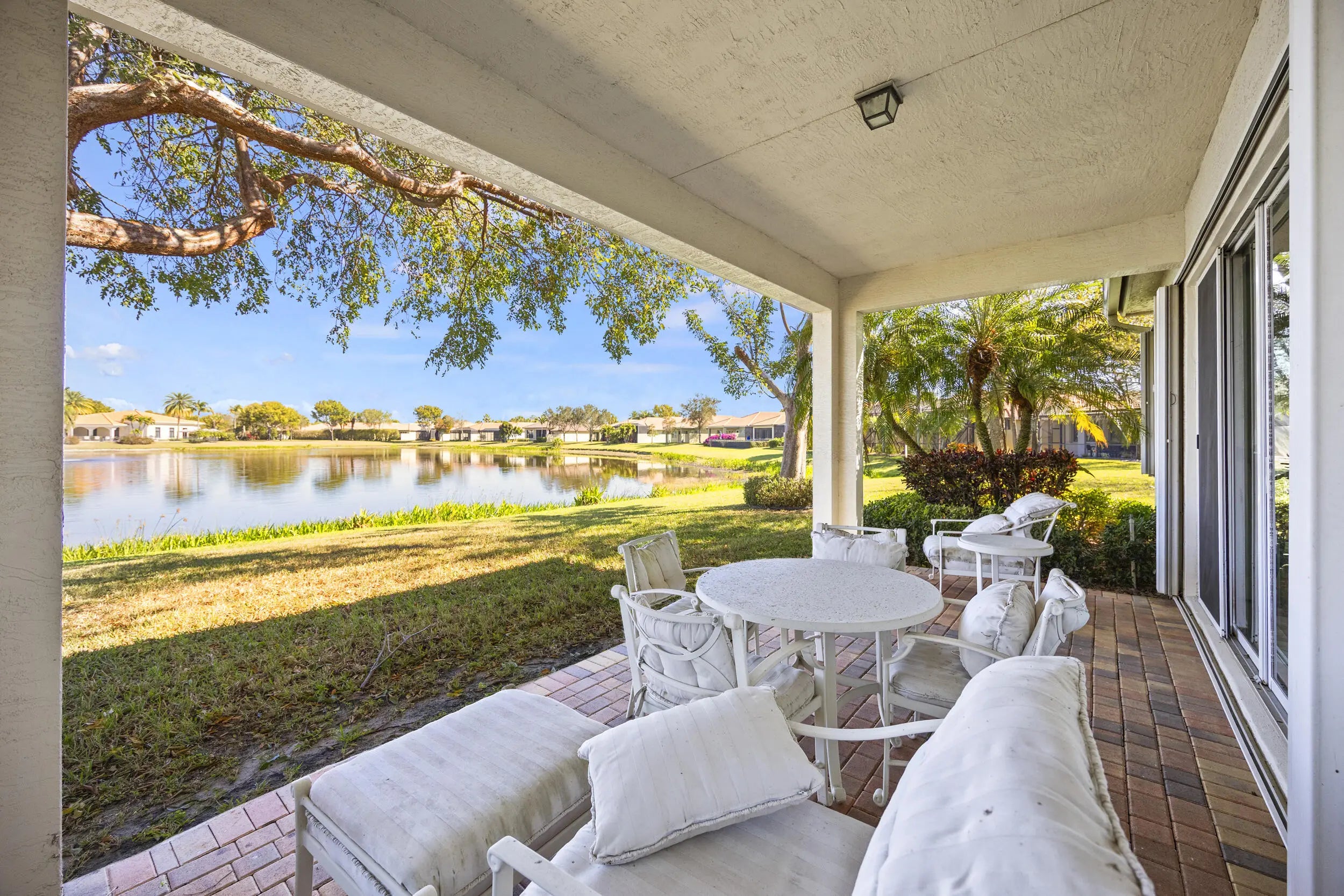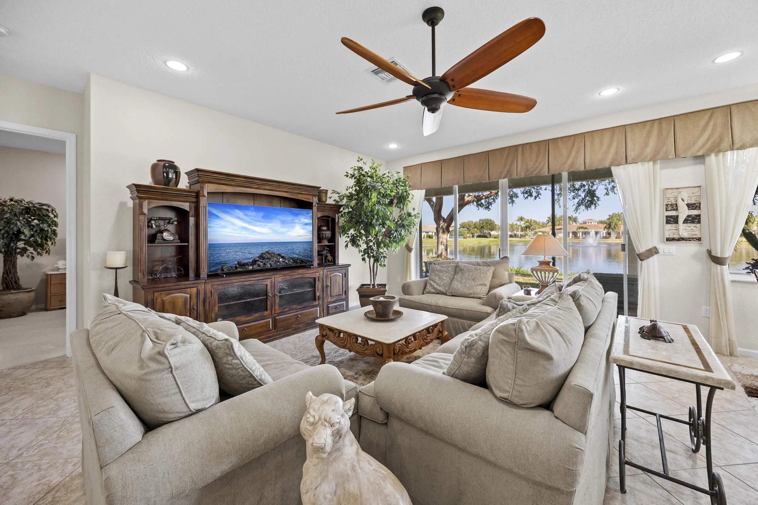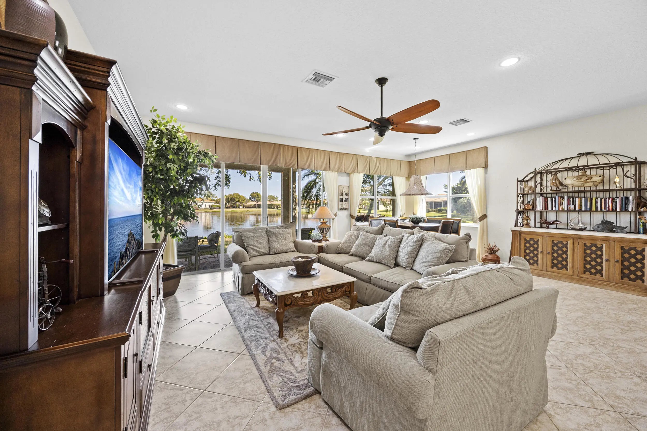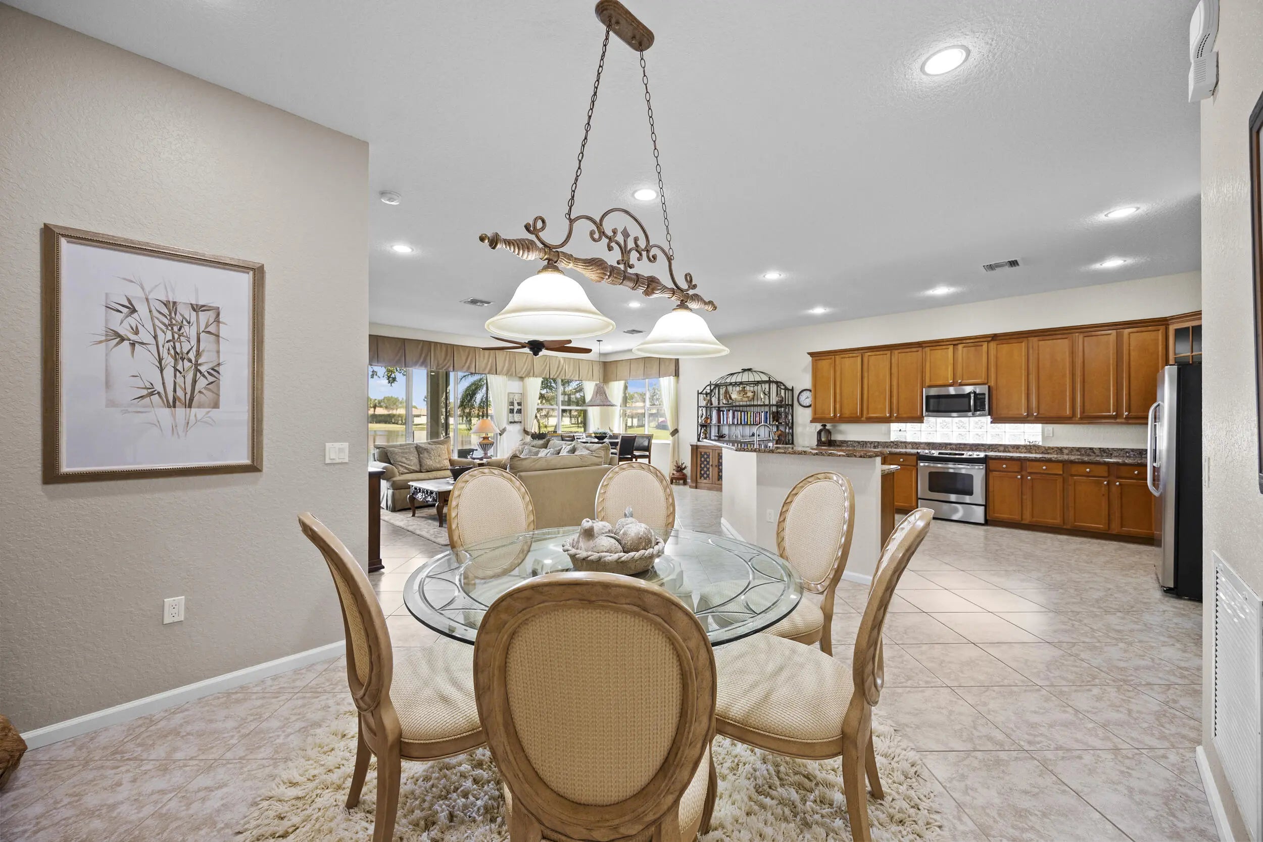 Beautiful 3BR/2BA home in Four Seasons at Tivoli Isles, ideally situated with a side easement that creates a more open, peaceful setting. Enjoy wide lake views overlooking the clubhouse from your own backyard. The light-filled interior offers an open layout, spacious living areas, and a well-designed kitchen that flows comfortably for everyday living and entertaining. Split-bedroom floor plan adds privacy for guests. Relax on the patio and take in the tranquil water views. Located in a gated 55+ community with clubhouse, pool, fitness center, and active lifestyle amenities.
