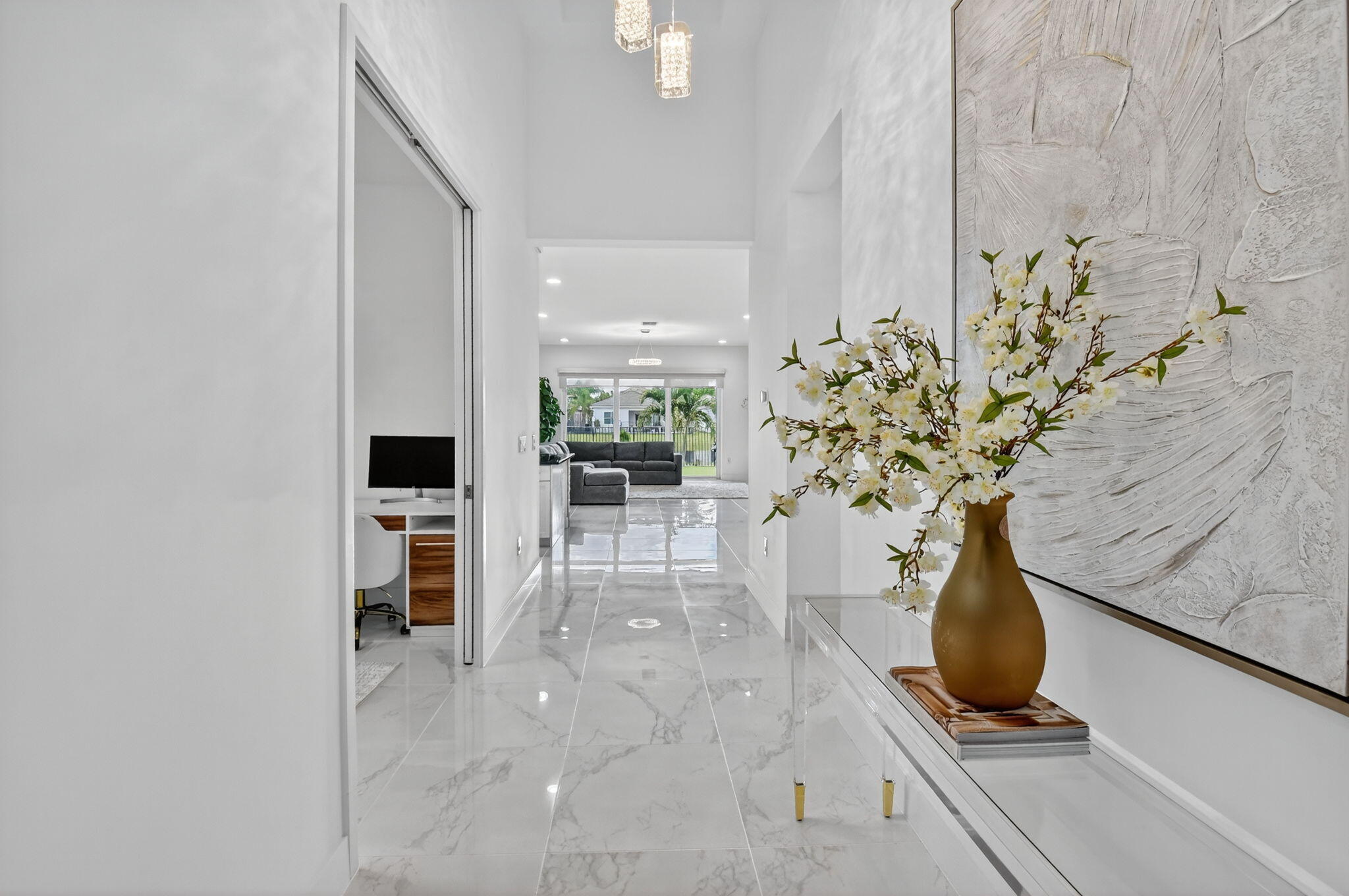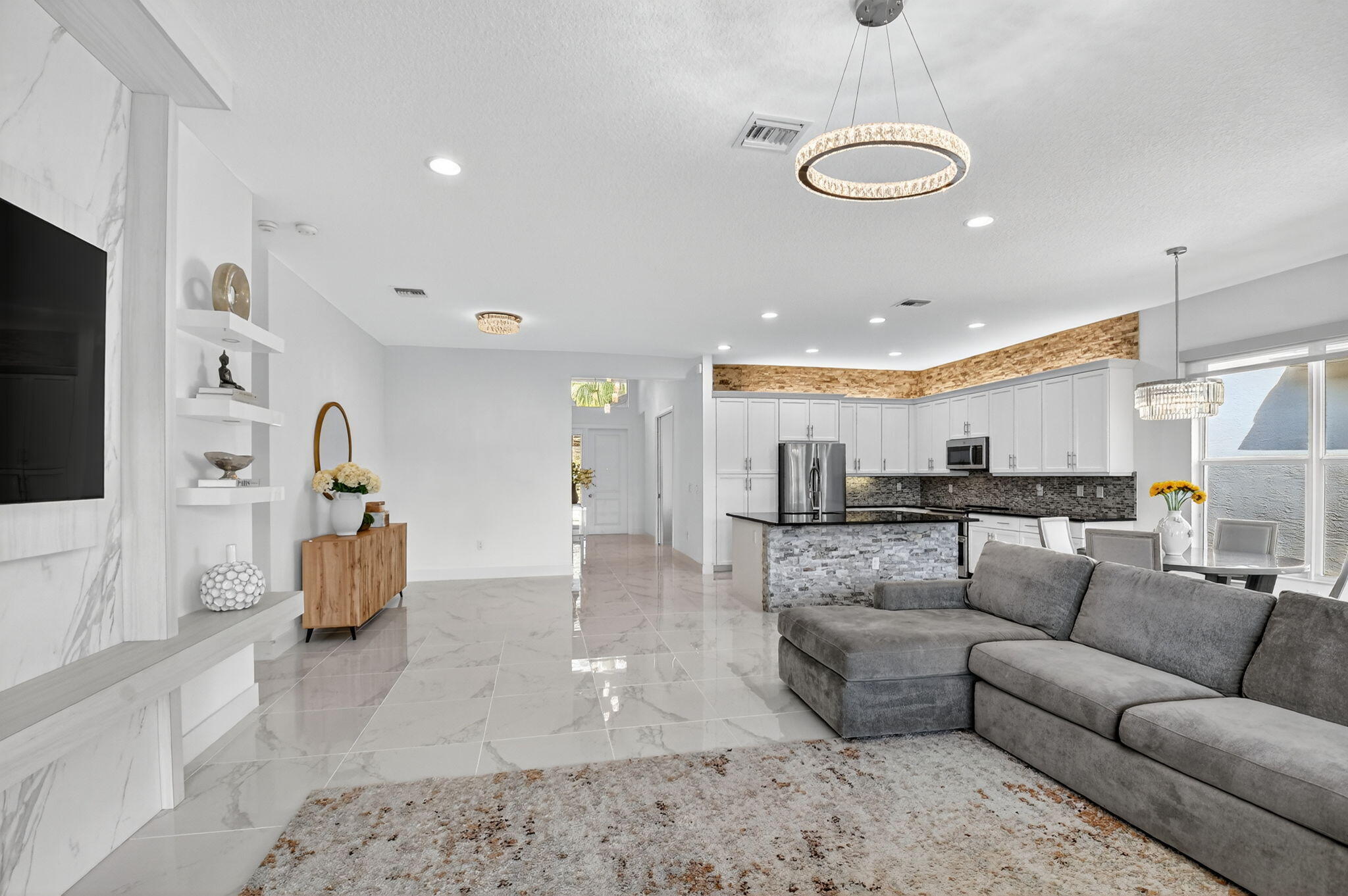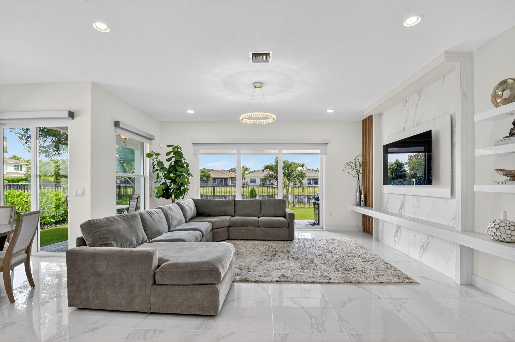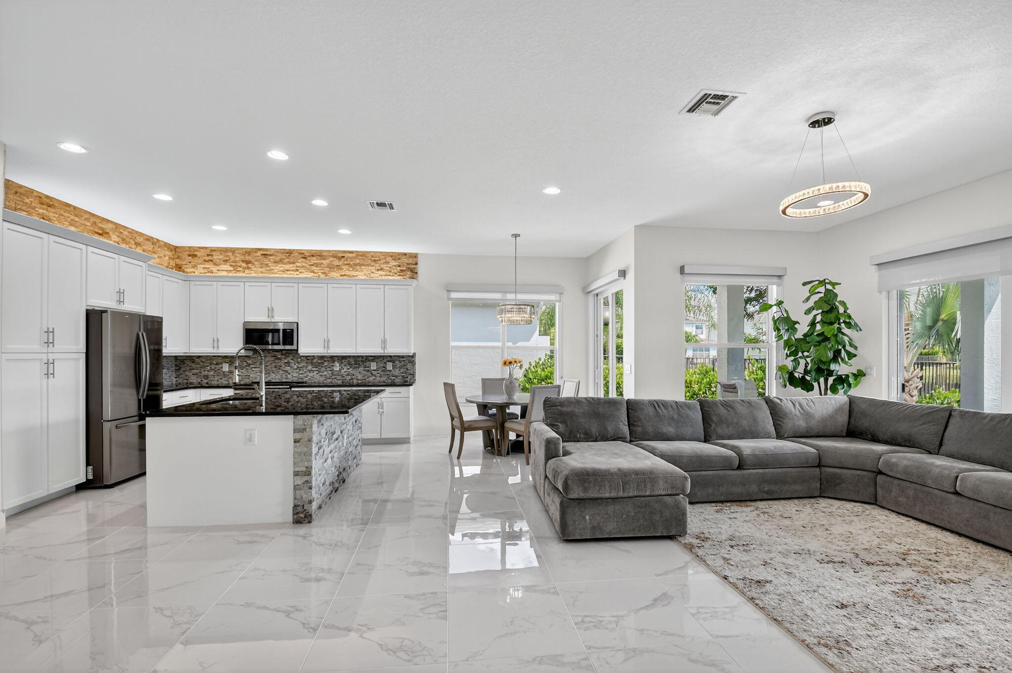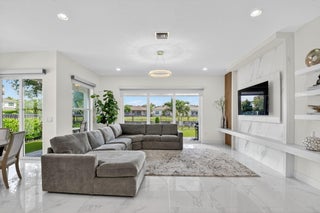 Sellers are ready to make a deal, bring all offers and look no more!!This exceptional one-story residence, nestled within one of GL Homes' most coveted communities, offers the perfect blend of elegance, comfort, and convenience. Ideally situated just minutes from fine dining, upscale shopping, vibrant downtown Delray, pristine beaches, and with effortless access to major roadways, this home truly defines South Florida living at its best.Set on a tranquil lake lot, the property provides a serene backdrop for daily living and entertaining. Inside, high ceilings, an abundance of natural light, and large white ceramic tile flooring create a bright and modern ambiance. The gourmet kitchen features 42-inch white cabinetry, sleek quartz countertops, a spacious island for entertaining, and contemporary designer light fixtures throughout. Every detail has been thoughtfully curated for both beauty and functionality, including an upgraded entertainment center, hurricane glass windows, an upgraded alarm system with a WiFi-enabled digital thermostat, and a low-maintenance landscape enhanced with synthetic turf for year-round appeal. The AC was replaced in 2023. Community Lifestyle Living in Dakota means enjoying an array of resort-style amenities. The 11,417-square-foot clubhouse is the heart of the community, offering: State-of-the-Art Fitness Center with premium cardio and strength-training equipment. Elegant Event Room, complete with a catering kitchen, is perfect for gatherings and celebrations. An Indoor Sports Court is designed for a variety of recreational activities. This residence is more than a home; it's a lifestyle, where modern design meets the best of South Florida living. All attached TV's do not convey.