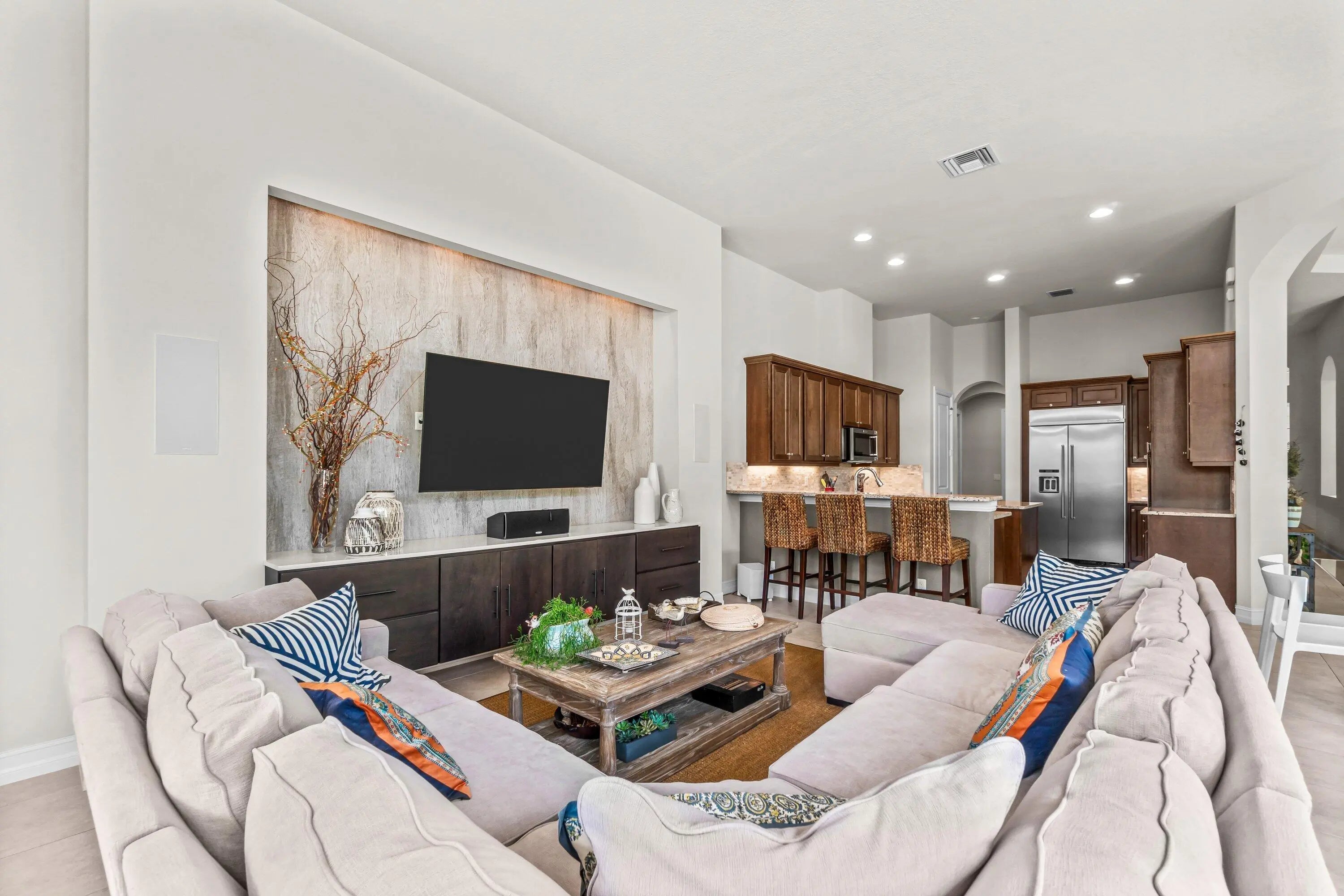 Stunning 4-Bedroom, 4-Bath Pool Home with 3-Car Garage in Jupiter Country Club Available for rent in the prestigious, gated community of Jupiter Country Club, this elegant residence offers a spacious split floor plan with formal living and dining rooms, plus a private den/office. The expansive master suite includes space for a sitting area and a luxurious bath with dual vanities, a soaking tub, oversized walk-in shower, private water closet and two walk in closets. On the opposite side of the home, you'll find two ensuite bedrooms with walk-in closets, along with a private guest bedroom that has direct access to the cabana bath. The gourmet kitchen is perfect for gatherings and entertaining, featuring a storage island, breakfast bar, casual dining area, and an open flow into the...