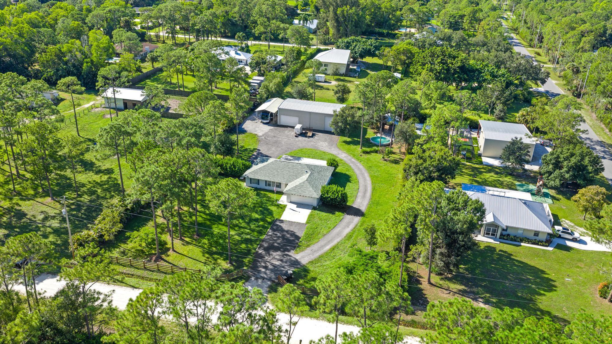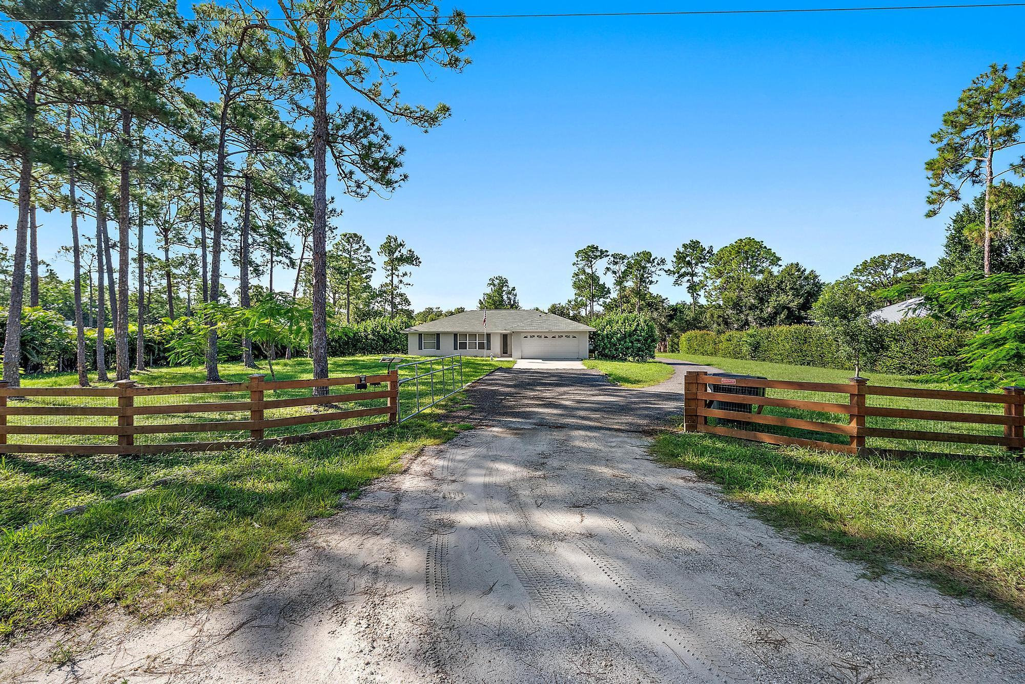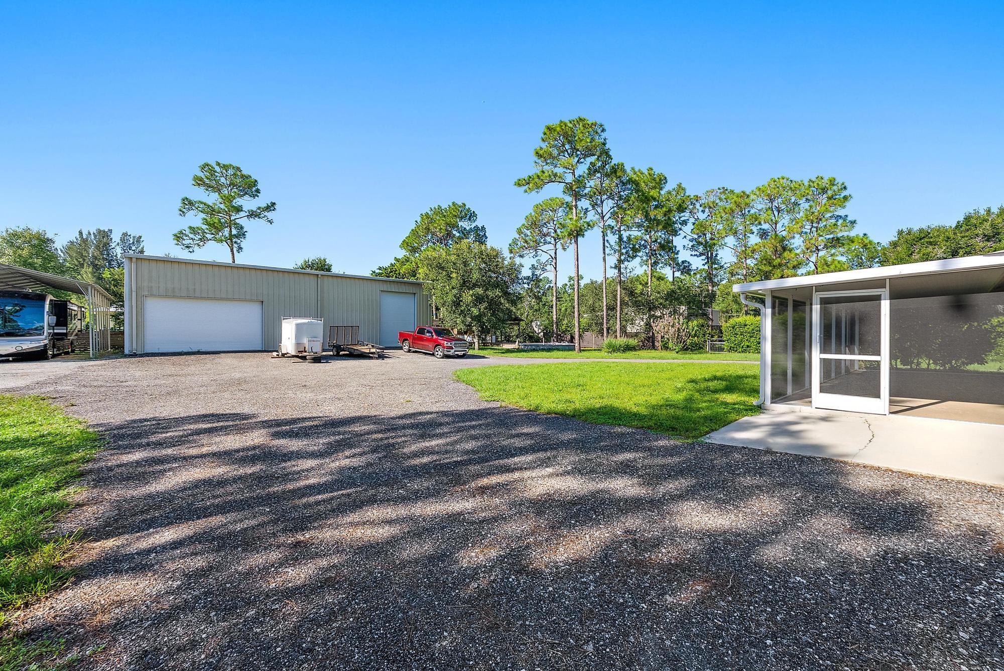 Discover the perfect blend of comfort, function, and country charm in this 3 bed, 2 bath Jupiter Farms home on a 1.25-acre fenced and gated lot. The split floor plan features a spacious primary suite with en suite bath and custom walk-in closet, while a newly renovated guest bath serves two additional bedrooms. Enjoy the oversized screened patio--ideal for entertaining or relaxing after a day outdoors. A massive 32x60 detached garage shop with three doors offers room for boats, RVs, or a workshop. Just beyond is a deck with a partially above-ground pool, outdoor dining area, toilet, and shower--creating a true backyard retreat. This home embodies Jupiter Farms living, offering privacy, space, and outdoor freedom just minutes from town conveniences, beaches, and top-rated schools.