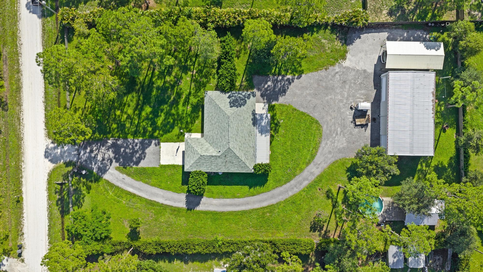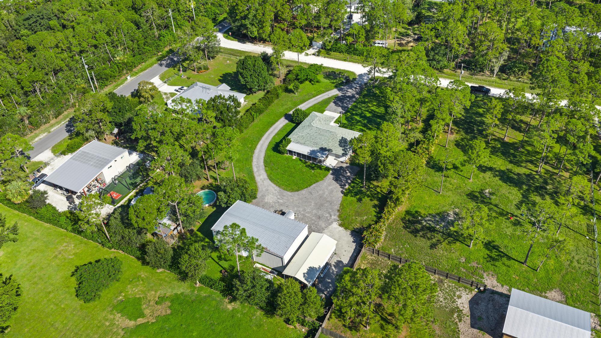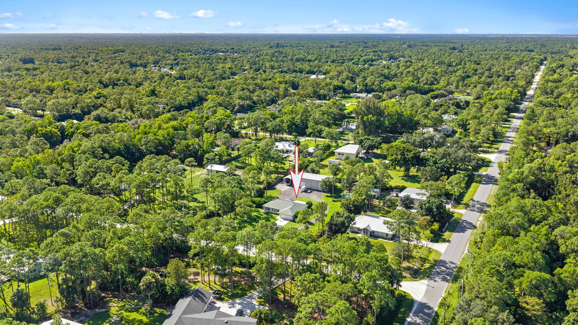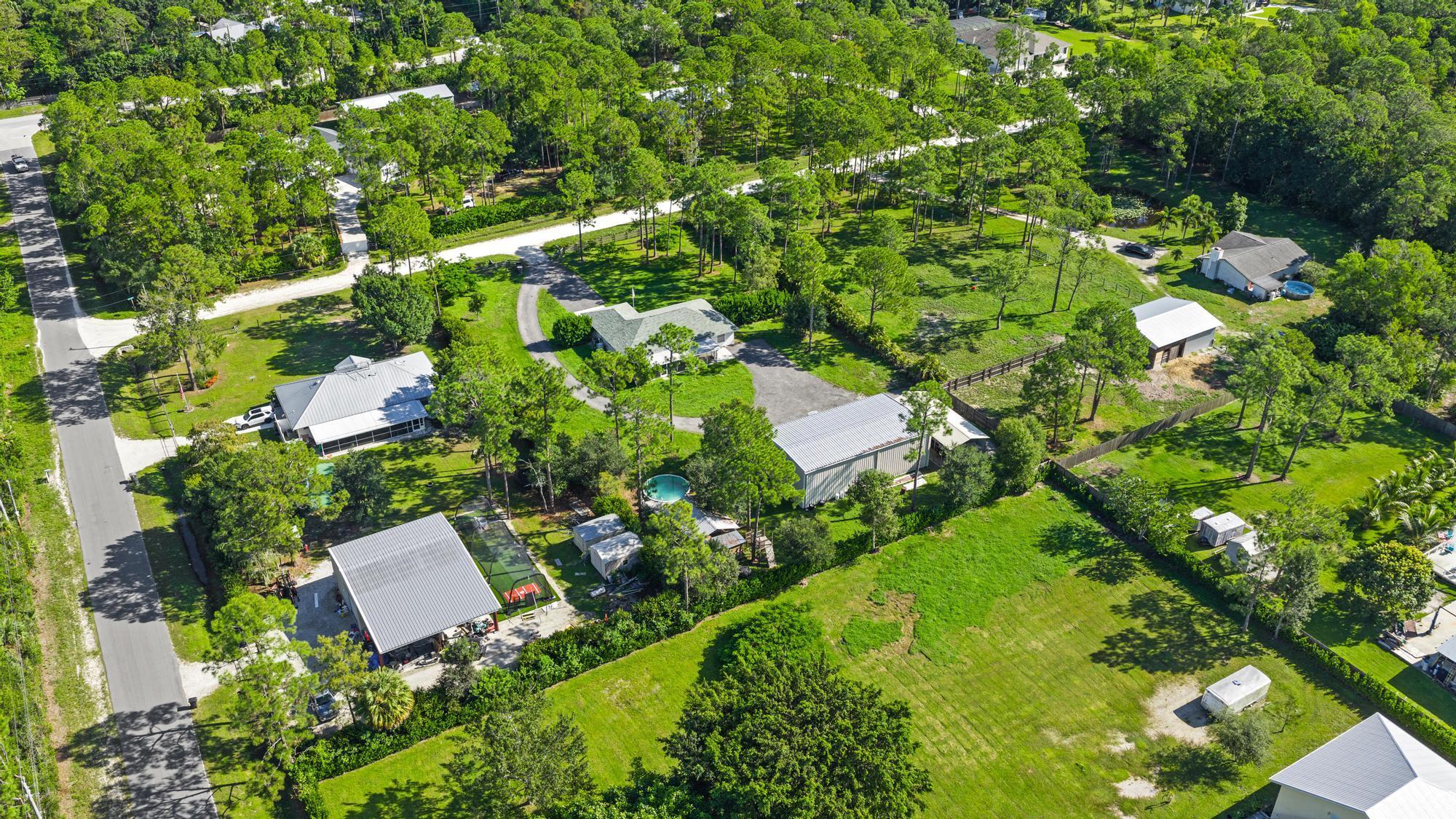 Discover the perfect blend of comfort, function, and country charm in this 3 bed, 2 bath Jupiter Farms home on a 1.25-acre fenced and gated lot. The split floor plan features a spacious primary suite with en suite bath and custom walk-in closet, while a newly renovated guest bath serves two additional bedrooms. Enjoy the oversized screened patio--ideal for entertaining or relaxing after a day outdoors. A massive 32x60 detached garage shop with three doors offers room for boats, RVs, or a workshop. Just beyond is a deck with a partially above-ground pool, outdoor dining area, toilet, and shower--creating a true backyard retreat. This home embodies Jupiter Farms living, offering privacy, space, and outdoor freedom just minutes from town conveniences, beaches, and top-rated schools.
