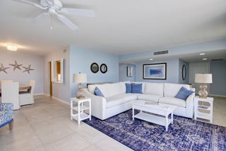 Experience the ambiance and quality of a 5-star hotel in this fully furnished, turnkey oceanfront paradise. This luxurious 2-bed, 2-bath residence unfolds with a serene coastal ambiance, featuring modern electronic shades for effortless light control and stylish tile floors. Breathtaking ocean views from every room provide a stunning backdrop for daily living. Step outside onto the spacious, covered balcony to enjoy the ocean breeze. Located just a short stroll from the vibrant dining and shopping of Atlantic Avenue, this is coastal living at its finest.