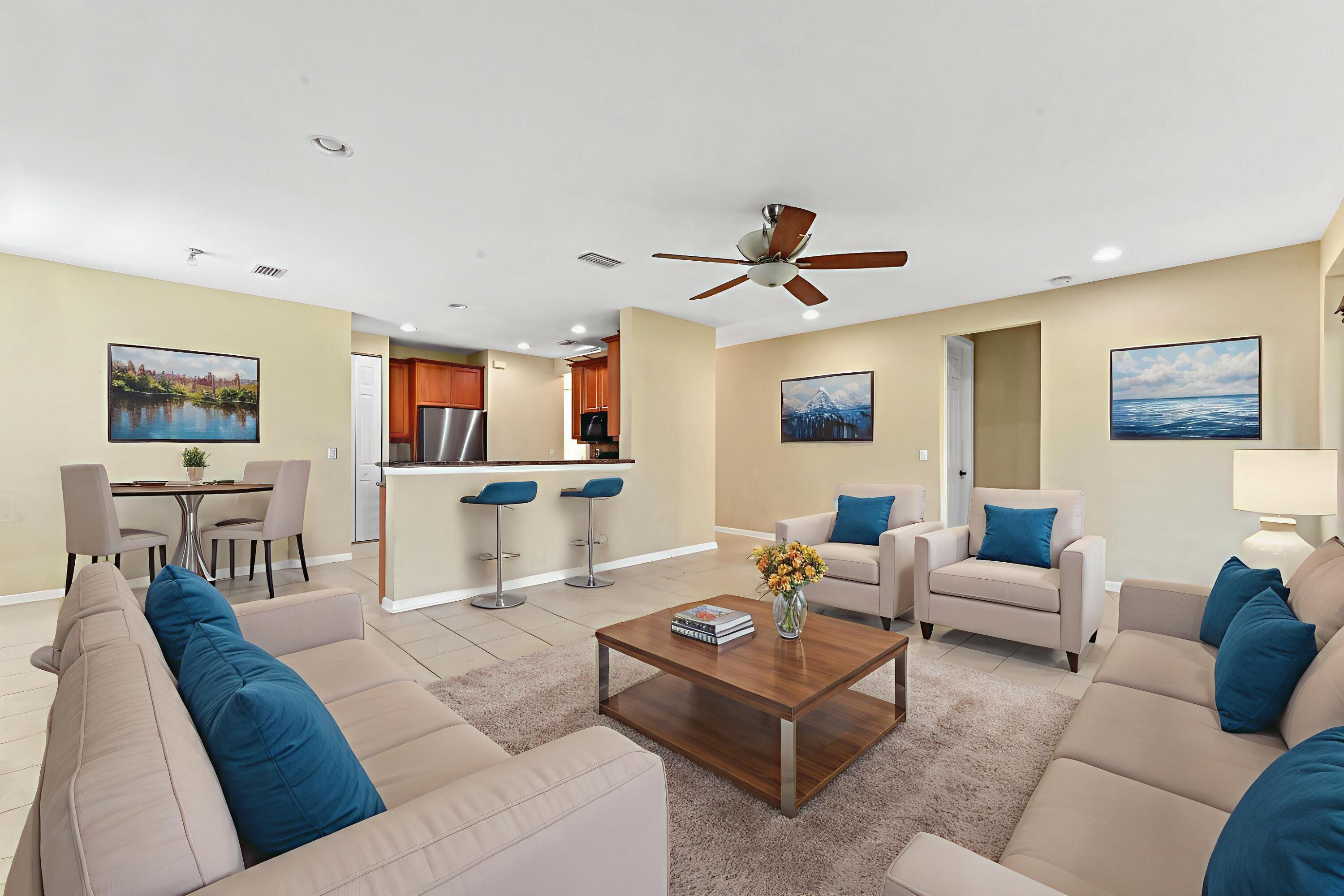 Motivated seller! Brand new AC! Submit all offers! Welcome to this stunning two-story corner home, offering the perfect blend of elegance and functionality. Newly painted and landscaped, featuring a paved driveway and a spacious 2-car garage, this residence is thoughtfully designed to meet your lifestyle needs. The kitchen is a culinary delight, showcasing sleek granite countertops, rich dark cabinetry, and ample space for meal preparation. The family room seamlessly connects to the patio and backyard, creating an ideal space for relaxing or entertaining. A formal dining room and living room add a touch of sophistication, while a convenient downstairs bedroom and full bathroom make hosting guests effortless. The walk-in laundry room, complete with a sink, enhances everyday convenience.Upstairs, you'll find a serene retreat in the master bedroom, which boasts a walk-in closet with mirrored doors and plenty of storage. The home's volume ceilings add a sense of grandeur, enhancing the light and airy ambiance throughout. Whether enjoying quiet evenings on the patio or hosting lively gatherings, this home's layout provides the perfect backdrop for making cherished memories. Located in a gated community with exceptional amenities, you'll enjoy access to a clubhouse, fitness center, tennis and basketball courts, a tot lot, and more. Perfectly situated just minutes from premier shopping, dining, and entertainment, this home is the ideal combination of luxury and convenience. Don't miss your opportunity to experience all this property and community have to offerschedule your tour today!