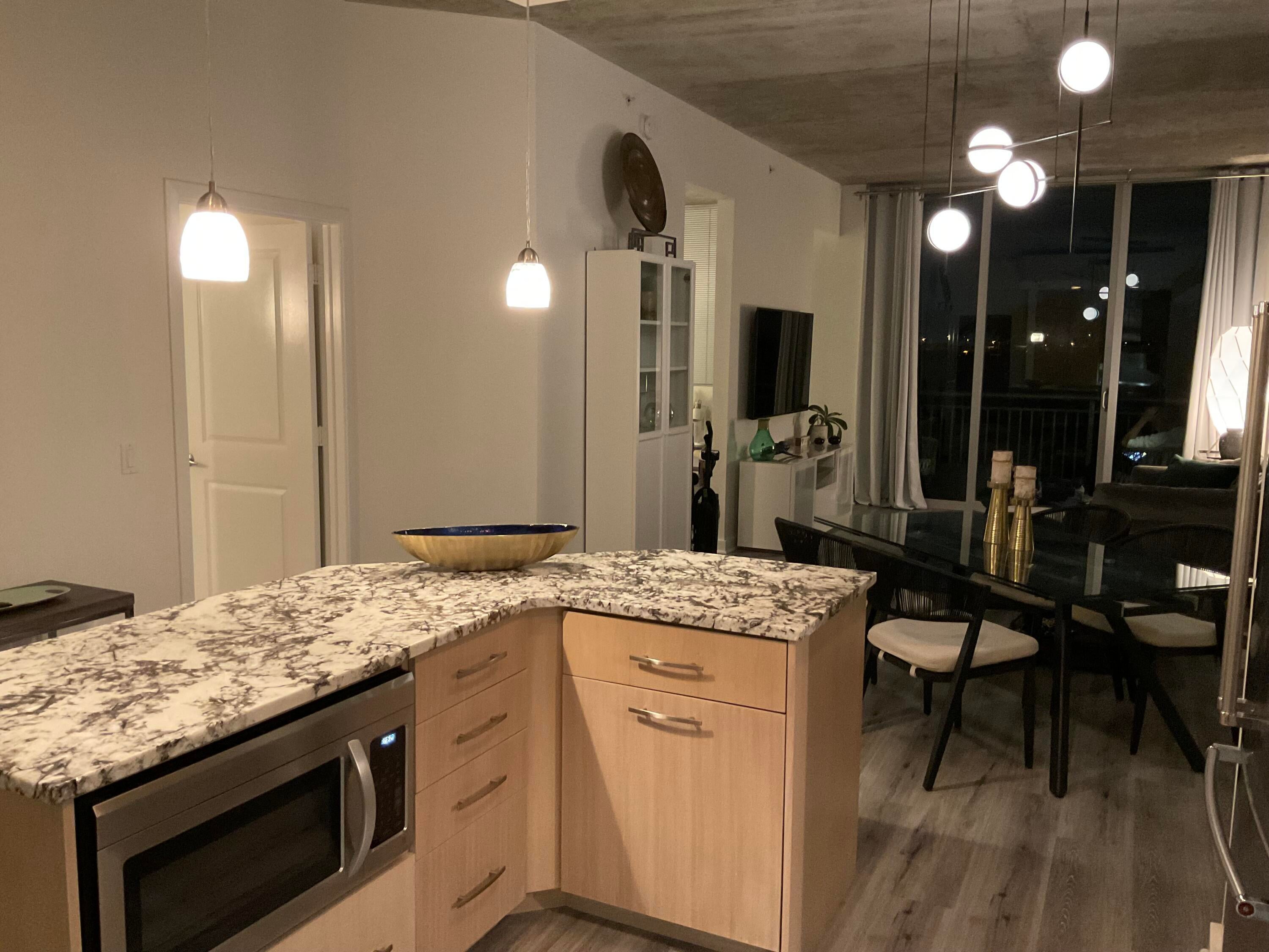 Seasonal or Annual - Turn-Key and Move-in ready, beautifully renovated condo. Fully furnished throughout, with new kitchen appliances, improved kitchen storage with prep, cooking and serving tools, and service for 6 available to you. The new bath has double vanity with storage plus a linen closet. MBDRM is updated with closet systems and storage, linens, plus a new mattress. While the community does not provide cable, WiFi is in place and the property has a 65'' Smart TV, and electric to $125/MO is included. Balcony overlooks Clear Lake and western horizon.The Edge offers rooftop pool deck with BBQ, clubhouse, exercise facility, meditation room, business center, assigned garage parking, package closet for receipt of deliveries, 24/7 security and manned lobby. Enjoy The Palm Beaches and easy transit options - The Circuit for close trips; PBI, Tri-Rail, and Brightline for travel to Orlando, FLL and MIA