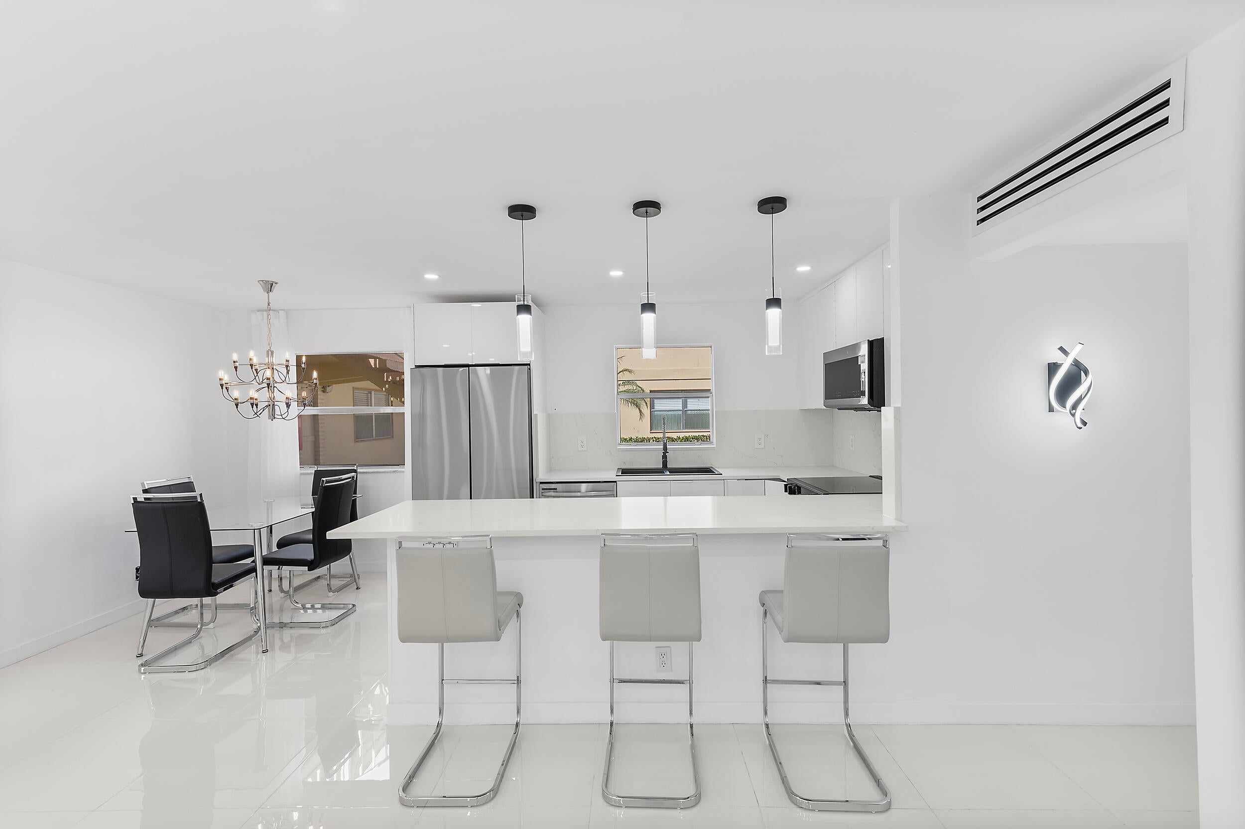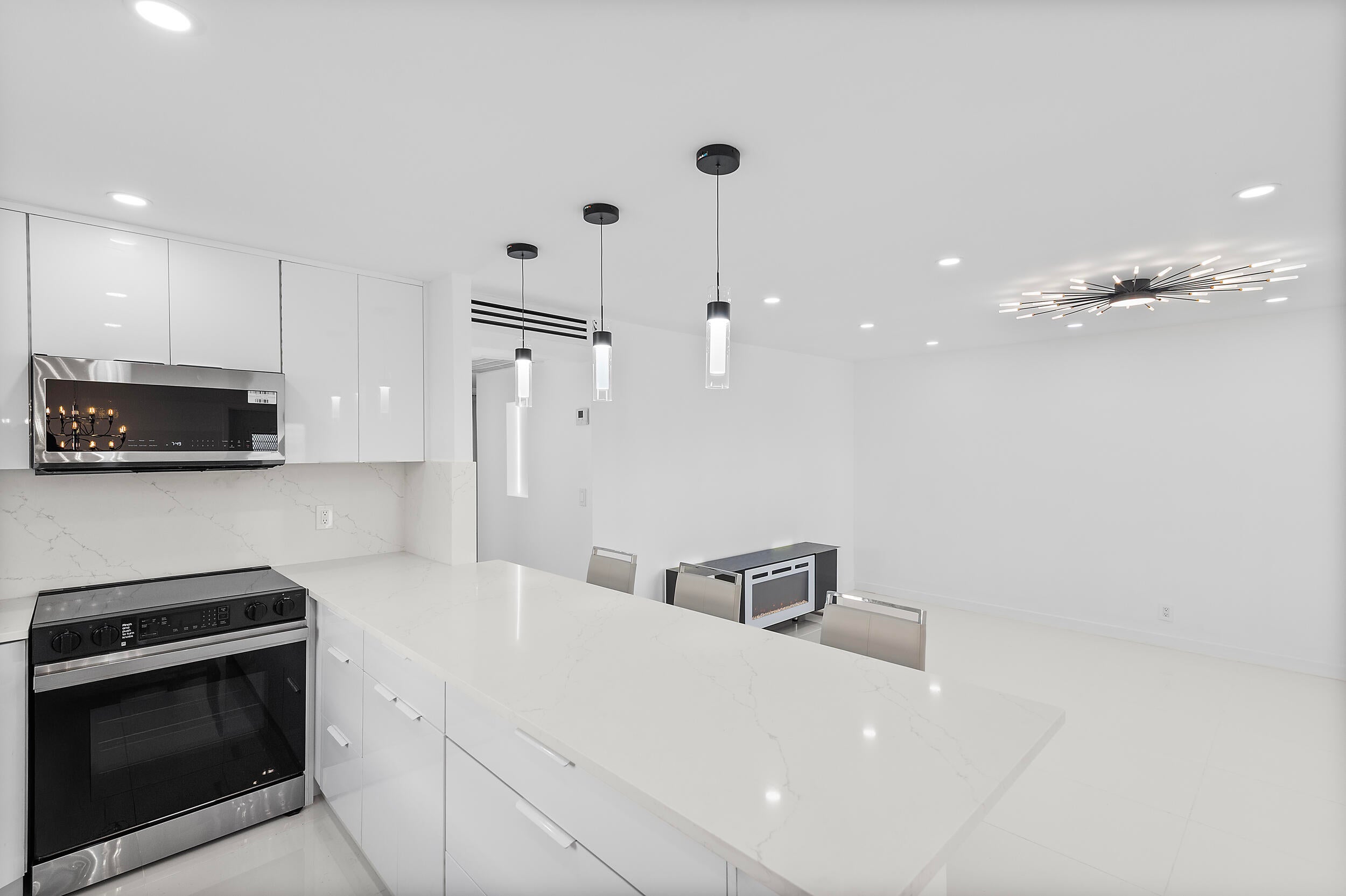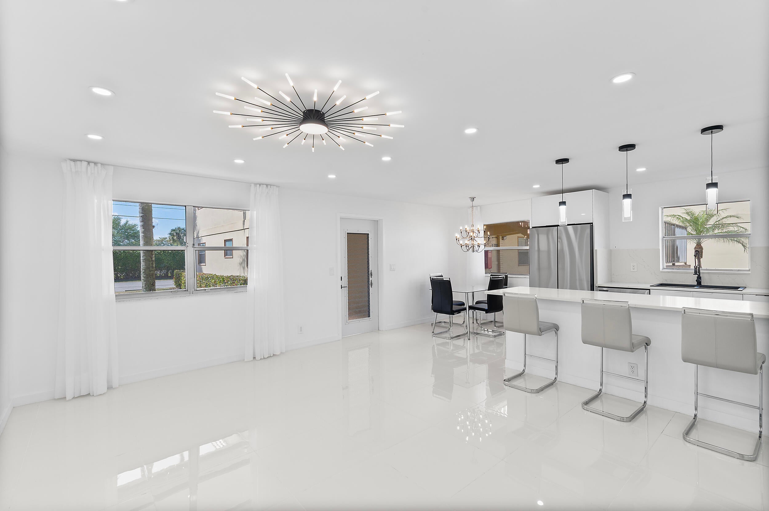 Welcome to your 2 bedroom/2 bathroom Ground floor unit . Fully Renovated all new porcelain flooring open kitchen recessed lighting quartz countertops stainless steel appliances Ac 2019 water tank 2021 this home is ready for its new owners! Saxony E building is very peaceful and a quick walk to Publix, Walgreens & steps from places of worship !This building is fully funded. Relax and indulge in the resort-style amenities of Kings Point which include: two 18-hole golf courses; indoor/outdoor pools, tennis, fitness studio, pickle-ball, etc. State-of-the-art theatre plus dining at East End Cafe and The Bistro. 24 security gate and courtesy shuttle for comfort and convenience. Come check it out!
