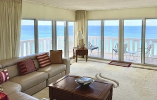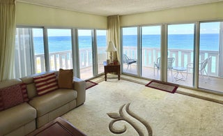 STUNNING DIRECT OCEAN VIEWS FROM THIS PENTHOUSE CORNER UNIT. FURNISHED, TURNKEY JUST BRING YOUR TOOTHBRUSH. WRAP AROUND BALCONY W/ NORTH LIGHTHOUSE VIEWS. GUEST BEDROOM OFFICE WITH A PULL DOWN MURPHY BED. WASHER/DRYER IN UNIT. UPDATED WITH KITCHEN OPEN TO OCEAN VIEW. MUST BE RENTED ANNUALLY FOR 12 MONTHS. ELEGANT UPDATED, 55+ AMENITY BUILDING INCLUDING; HEATED OCEANFRONT POOL WITH ALL DAY SUN, FITNESS ROOM, DIRECT BEACH ACCESS, BINGO, CARDS, CLUBS & ACTIVITIES. CABLE, WATER, SEWER, & INTERNET INCLUDED. 24 HOUR DOORMAN/SECURITY. WALK TO MANY RESTAURANTS, ENTERTAINMENT BANKS & SHOPPING. ALL REQUIRED SIRS INSPECTIONS COMPLETED. COVERED PARKING.