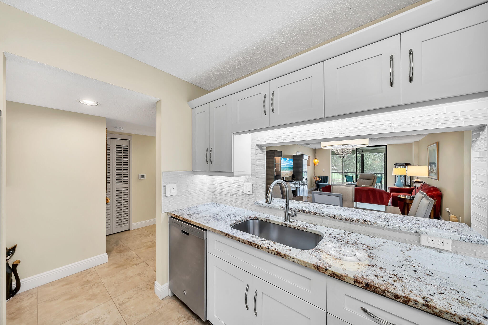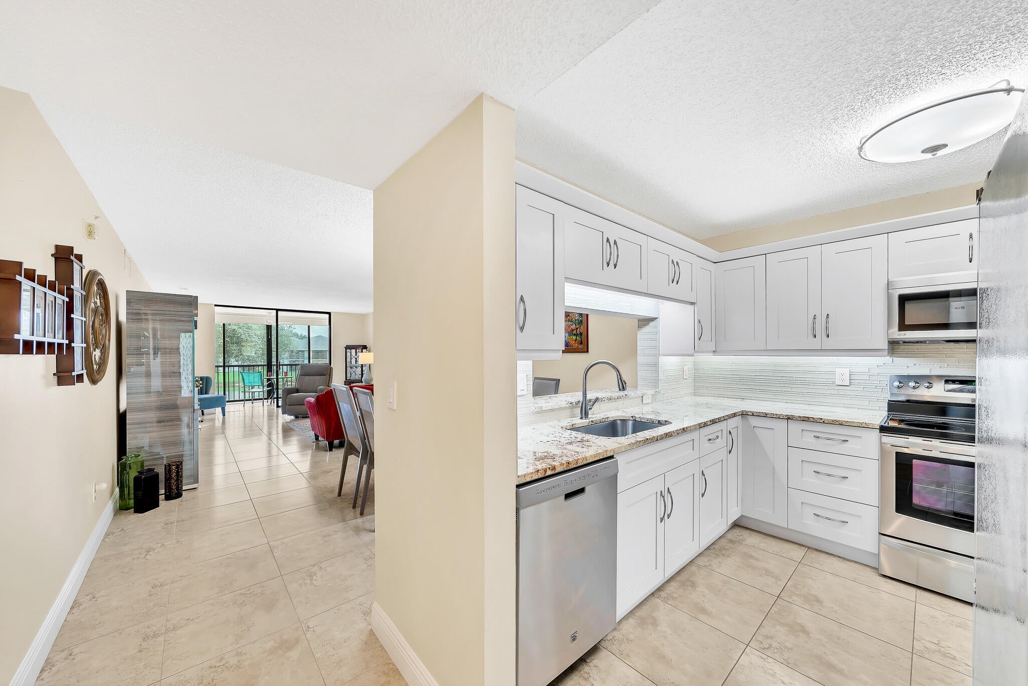 This fully updated lakefront condo with newly installed elevator in the heart of the vibrant 55+ community of Lakes of Delray WILL NOT LAST! This light-filled 2BR, 2-BA condo with screened-in balcony captures breathtaking lake views from every room, creating a tranquil, resort-style ambiance you'll love coming home to. The condo features a newly remodeled kitchen & bathrooms, an eat-in kitchen, a utility/laundry/pantry room, modern finishes throughout, and sleek tile flooring throughout. Hurricane accordion shutters, fire sprinklers, AC 2021, Hot water heater 2018. Lakes of Delray is a gated community known for its exceptional amenities - including a grand clubhouse, resort-style pool with (2) satellite pools, a fitness center, tennis & pickleball courts, walking trails, social clubs, ....card rooms, bus service that stops at buildings, all year round organized events and access to AMR an emergency medical service delivering prehospital care. Located just minutes from Downtown Delray, beaches, shopping, dining, and medical facilities.Whether you're seeking a seasonal retreat or a full-time residence, this stunning lake-view condo offers it all - style, comfort, security, and a vibrant social lifestyle!