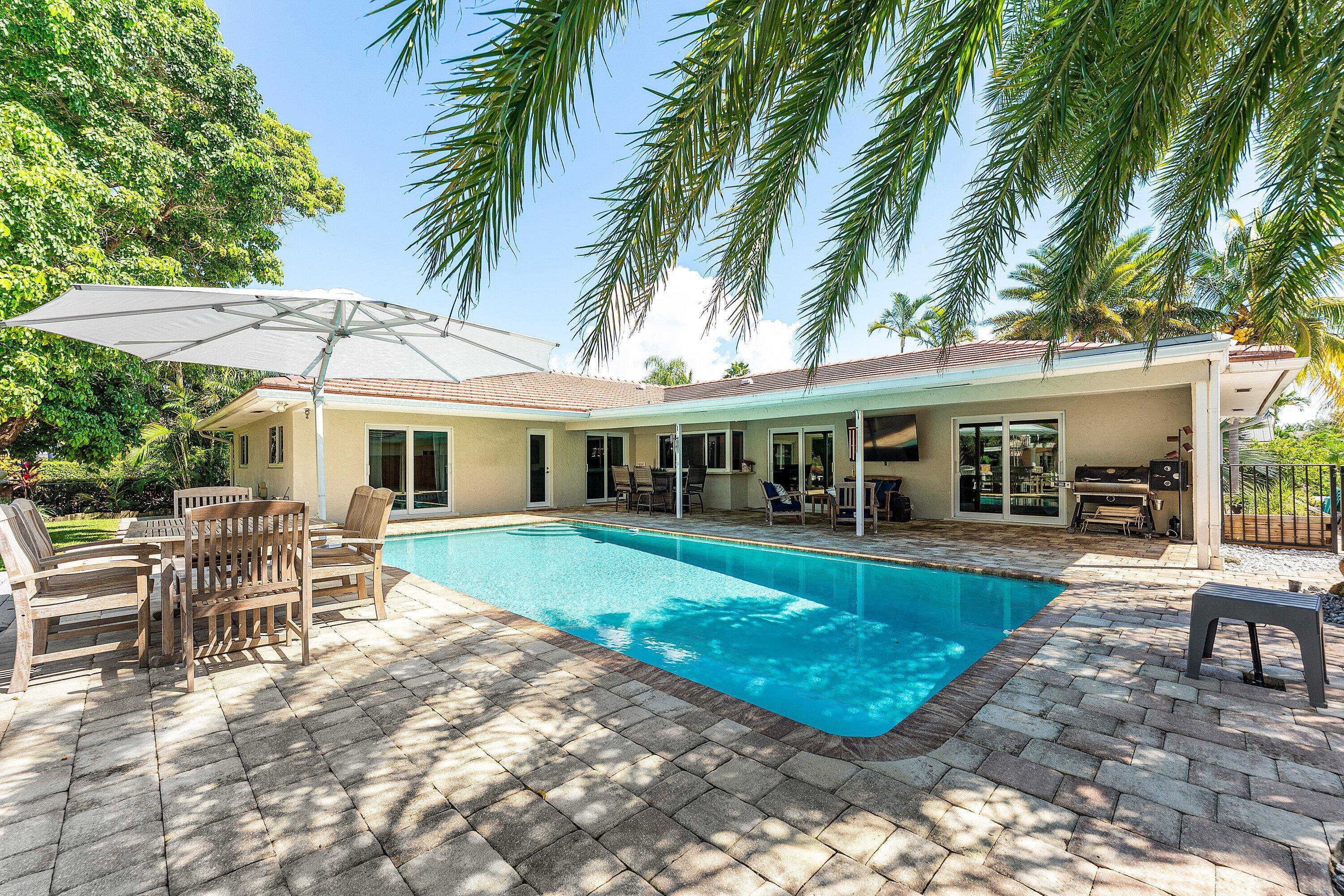 Welcome to 1219 SE 15th Avenue, a modern waterfront retreat in the heart of Deerfield Beach's coveted Cove neighborhood. With 90' of frontage and no HOA, you'll enjoy the ease of waterfront living on this oversized 10,600+ sf lot without restrictions. Bring your boat! Entertain freely, and make this home truly your own. Three spacious bedrooms plus a private office provide plenty of room to spread out, while the central kitchen featuring gas range and premium appliances makes cooking a centerpiece of the home.The backyard is a true highlight--an expansive covered patio, heated 30ft pool, and wide canal views create a resort-style setting. With 90 feet of deepwater frontage, a 20K lbs. boat lift, floating dock, and direct access to the Intracoastal, this property is a boater's dream.Outdoor furniture, floating dock box, and outdoor mounted TV are all included, so your lifestyle upgrades begin on day one. The Cove offers the perfect balance of tranquility and convenience, just a short ride to the beach, Deerfield's lively waterfront restaurants, Mizner Park in Boca Raton, and the shops of Lighthouse Point. With Fort Lauderdale International Airport less than 30 minutes away, this location is ideal for both full-time residents and seasonal escapes.