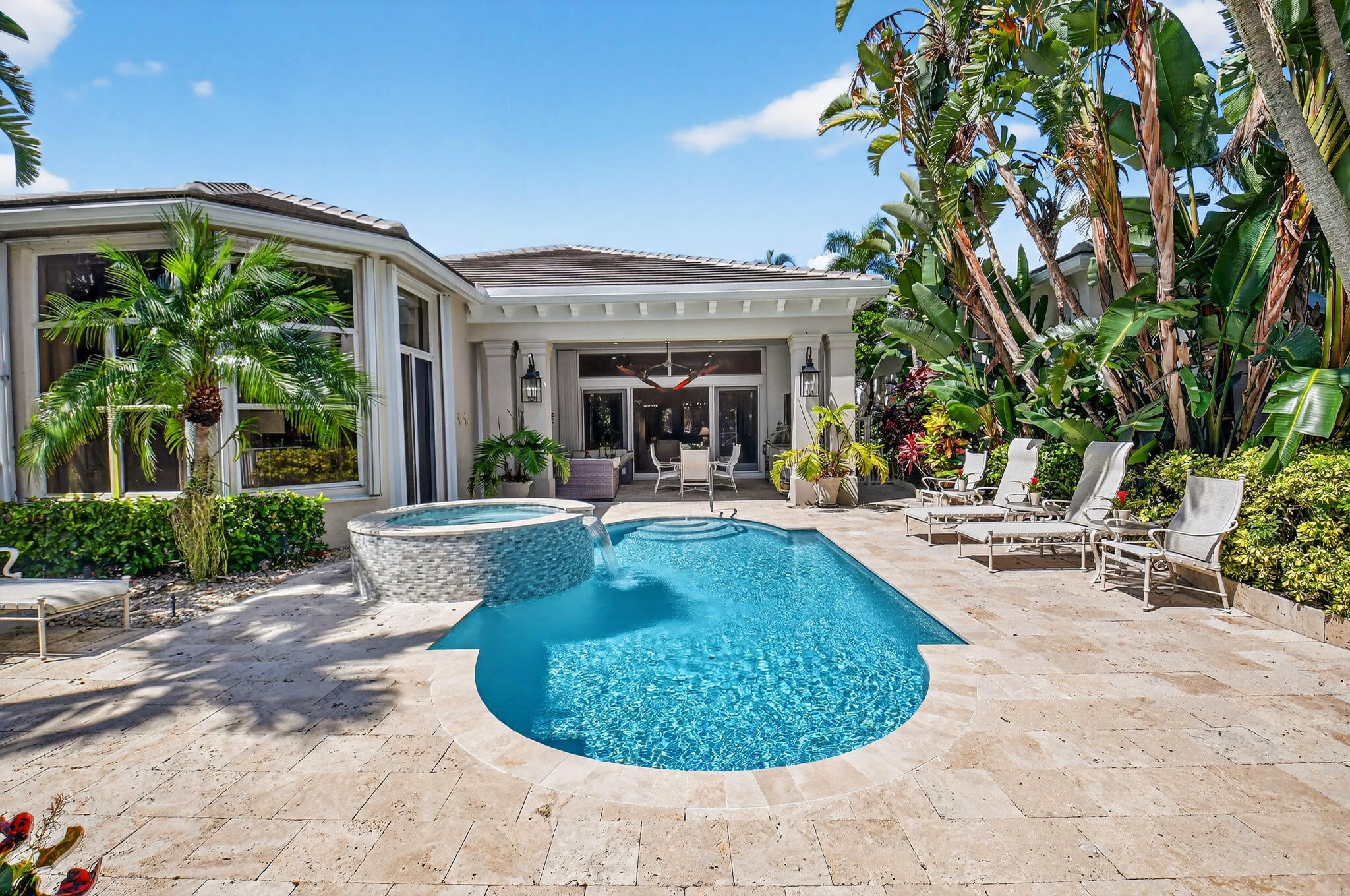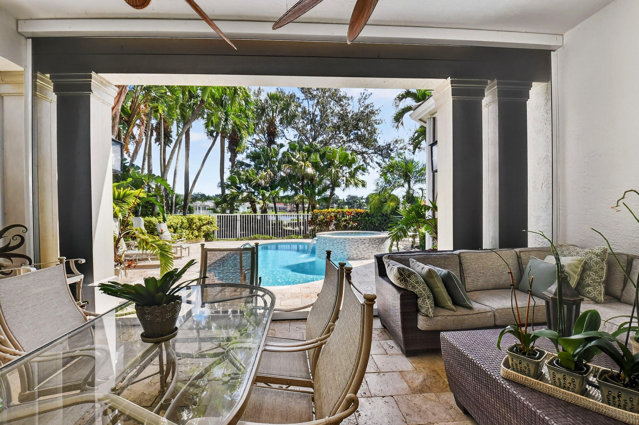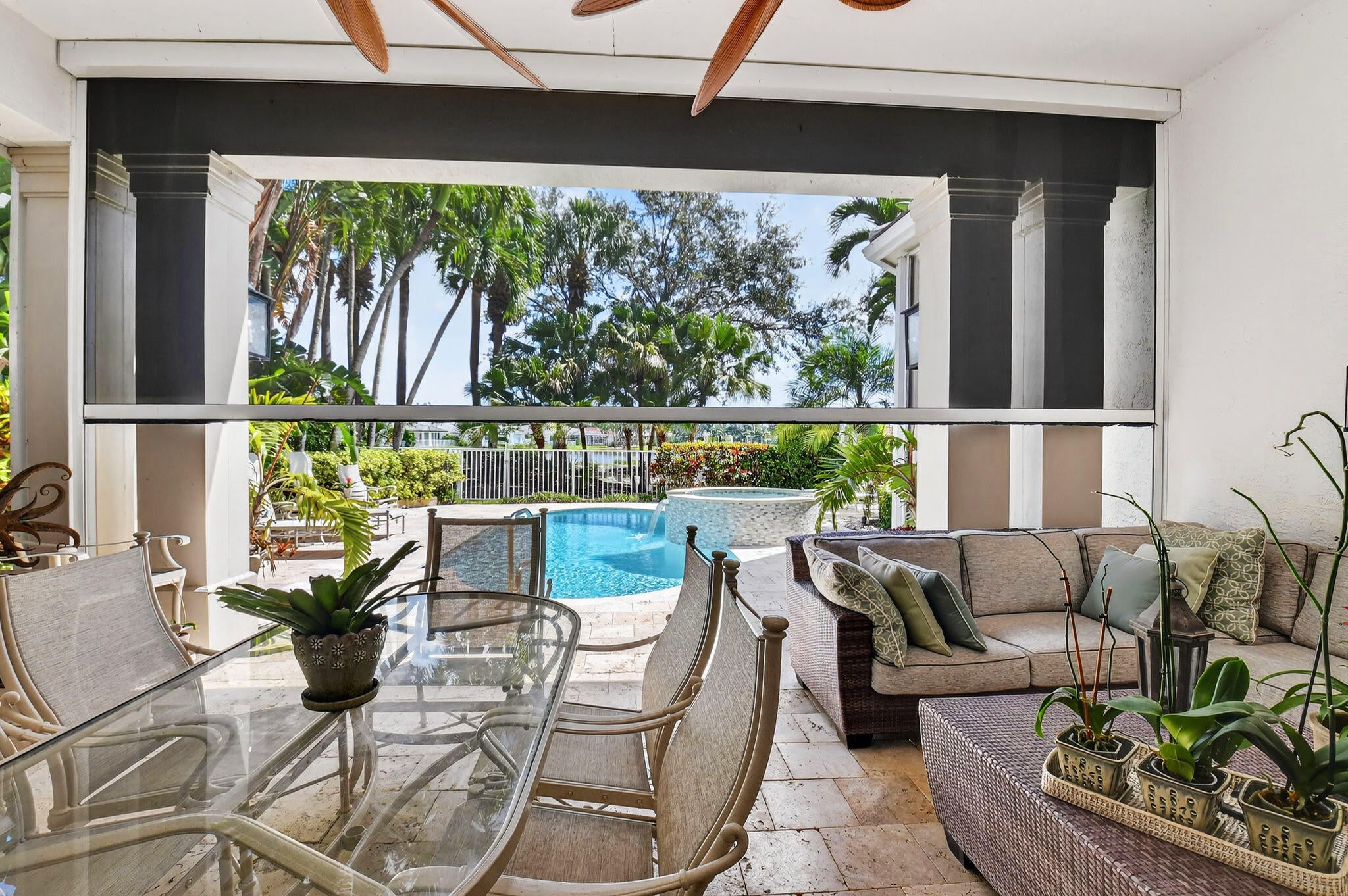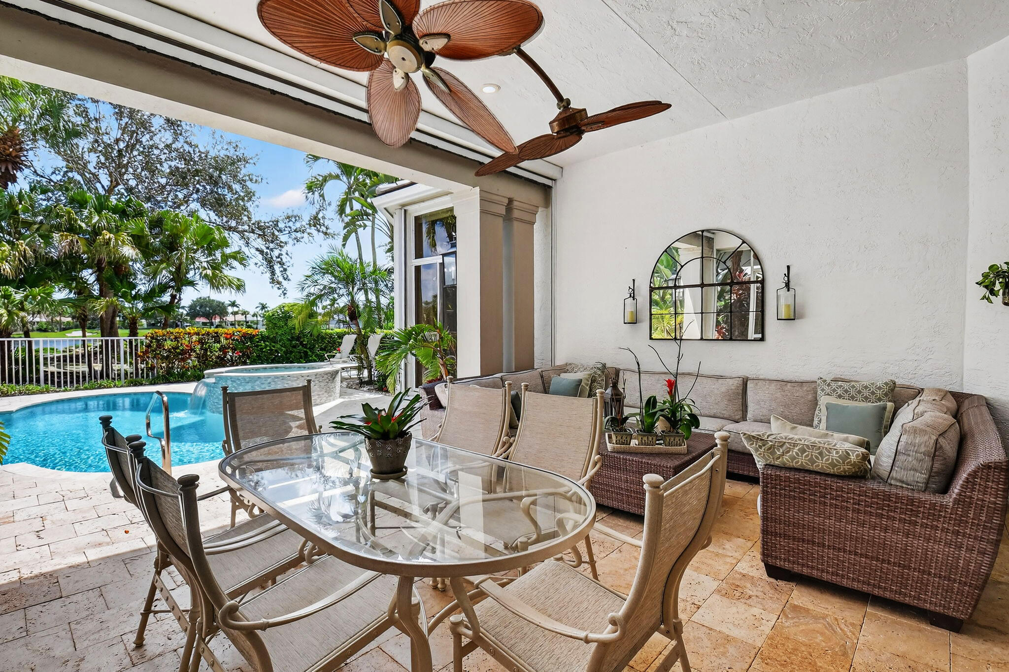 Fabulous 4 Bedroom, 4 Bath home with stunning Lake & Golf Views. Step through the front door into a spacious open floor plan with high ceilings and abundant natural light. This beautiful, updated home features a new roof, modern kitchen, up-graded bedrooms and baths, and expansive new impact sliders leading to an outdoor oasis. The patio area is designed for ultimate enjoyment, complete with a custom grill, mounted TV, comfortable seating and a fully remote-controlled phantom screen. The pool, spa & deck have all been completely redone in recent months, creating a luxurious retreat perfect for entertaining or relaxing. This home is move-in ready and sure to impress the most discerning buyers. This home features a partial golf membership.The home has complete hurricane protection with both impact glass, accordion shutters and electronic front door hurricane shutter.