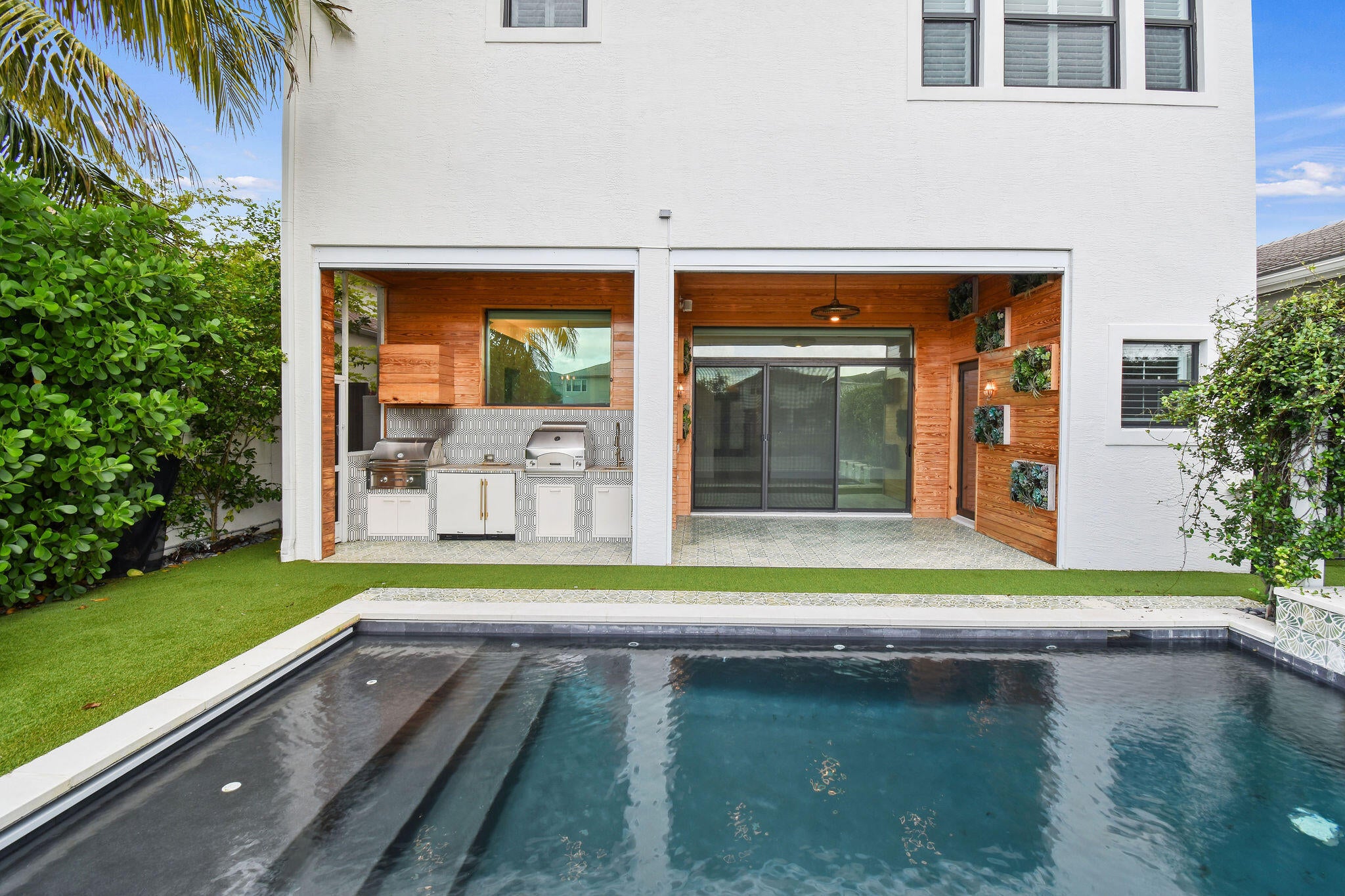 Auto Sprinkler, Built-in Grill, Covered Patio, Custom Lighting, Fence, Outdoor Shower, Screen Porch
