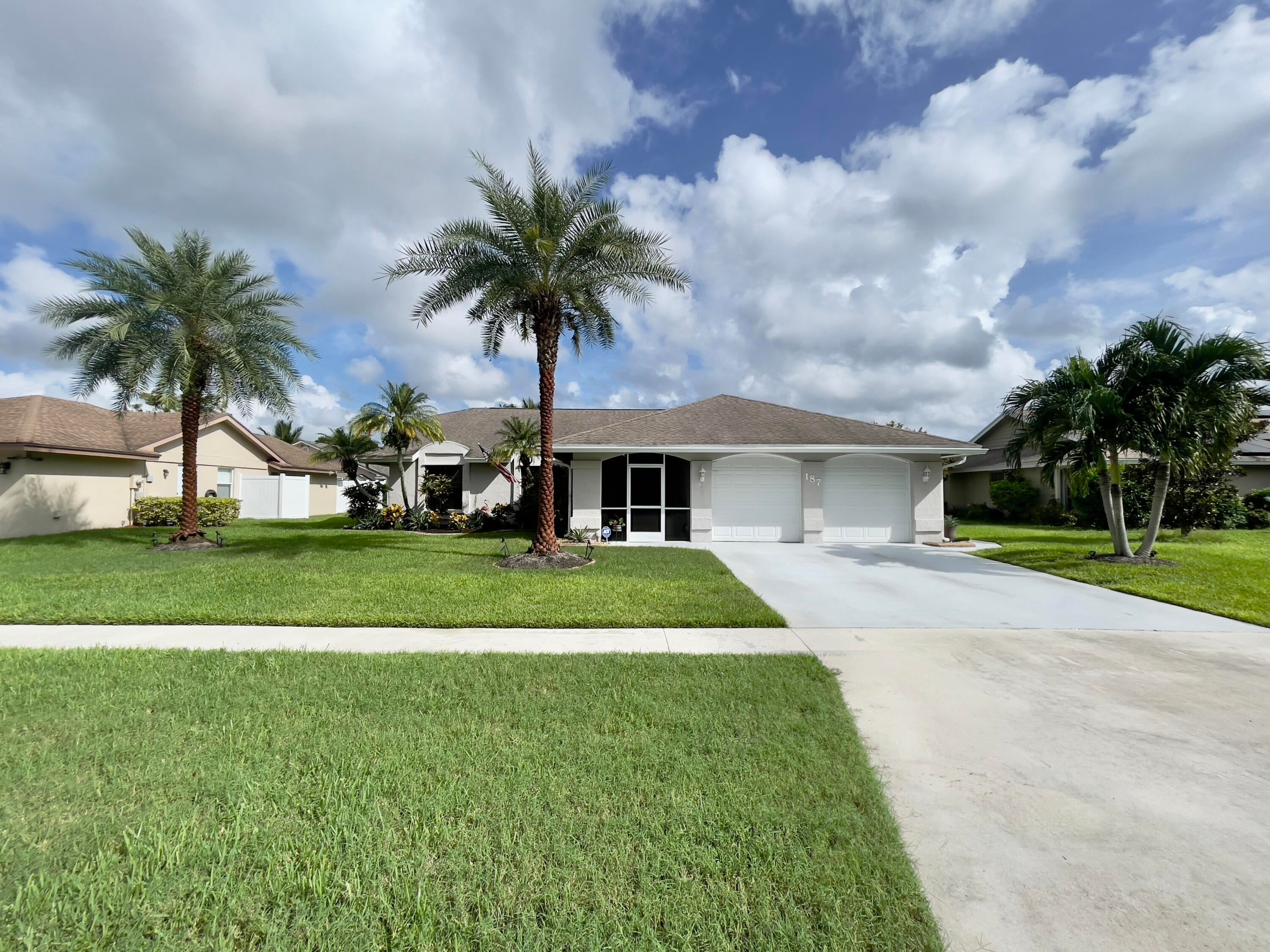 Welcome to this waterfront oasis in the heart of Royal Palm Beach. Beautiful pool home offers wide lake views on a lushly landscaped lot. Cathedral ceilings, skylights & sliding glass doors fill the home with natural light and create seamless indoor-outdoor flow. Open concept connects spacious, living, dining & kitchen, making it perfect for entertaining or family gatherings. Primary suite has a private bath, two closets, & tranquil pool views. Two additional generously sized bedrooms offer flexibility for family, guests, or home office. Enjoy year-round sunshine from the pool deck & screened lanai--perfect for morning coffee, BBQs, or sunsets. Minutes to top-rated schools, parks, shopping, & dining. $25 Month HOA fees. Beautiful home, Prime location, Great Value