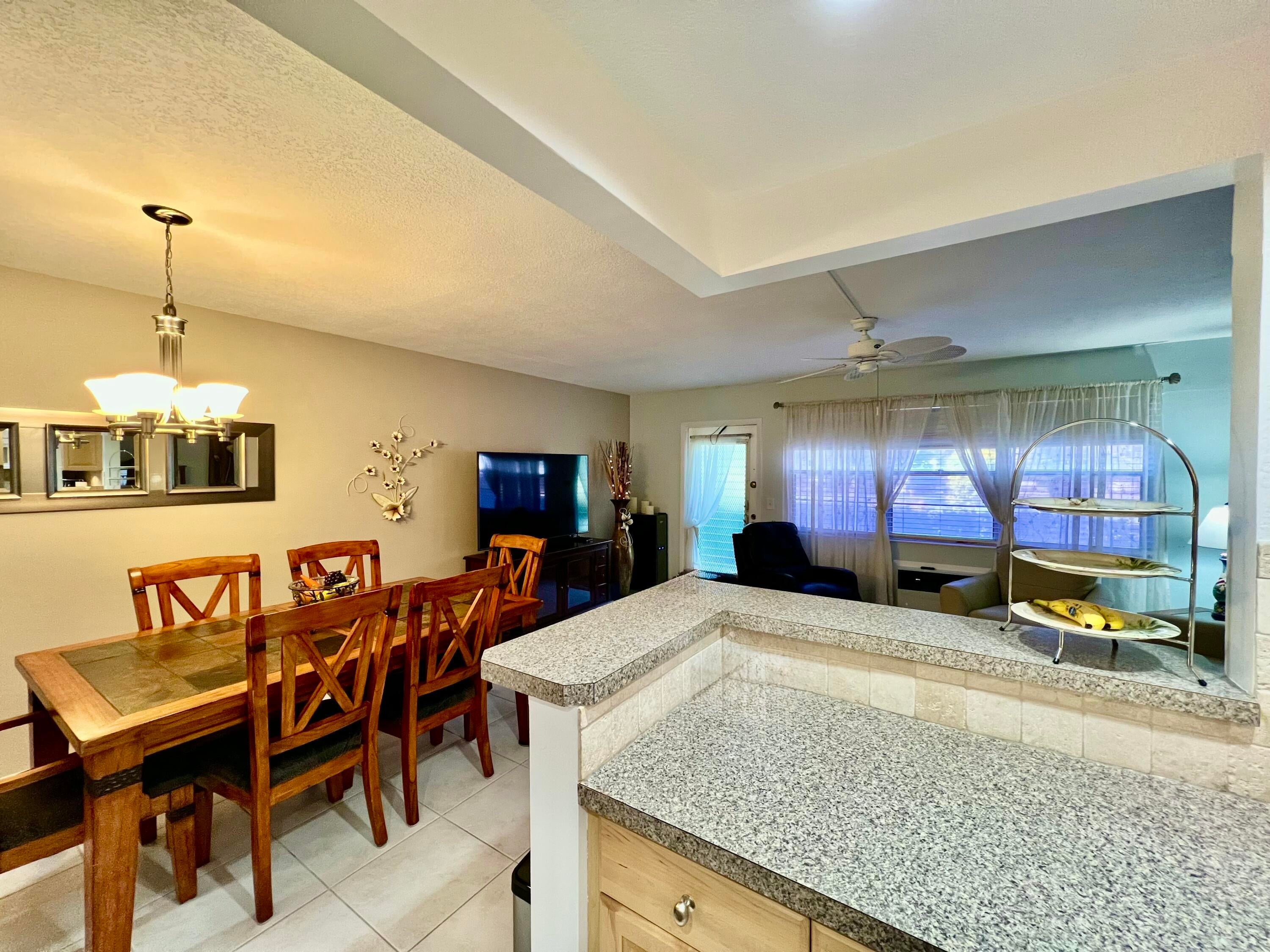 RARE FIRST-FLOOR & WATER VIEW. Experience modern comfort in this remodeled first-floor garden condo at Century Village East. This 1-bedroom, 1.5-bath unit offers a beautiful water view with a private bench by the lake and direct access to a tranquil back patio. Fully furnished and turn-key, it's rental-ready with recent updates, including a newer refrigerator and microwave (2 years old) and a new electric panel for added peace of mind.Schedule your showing today!