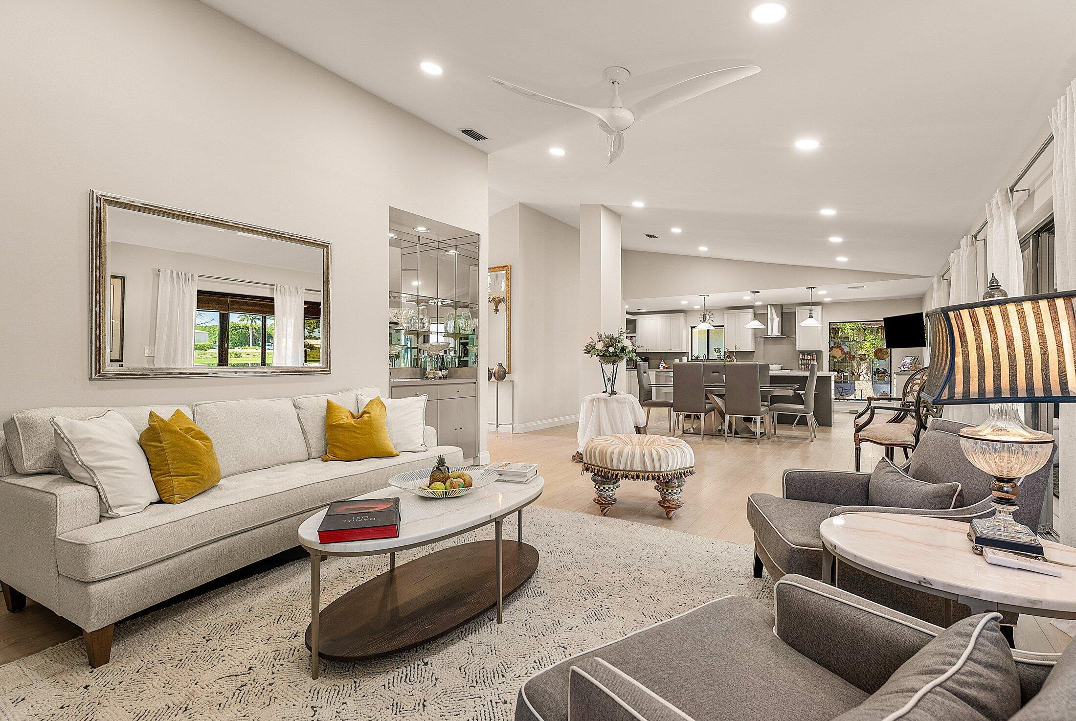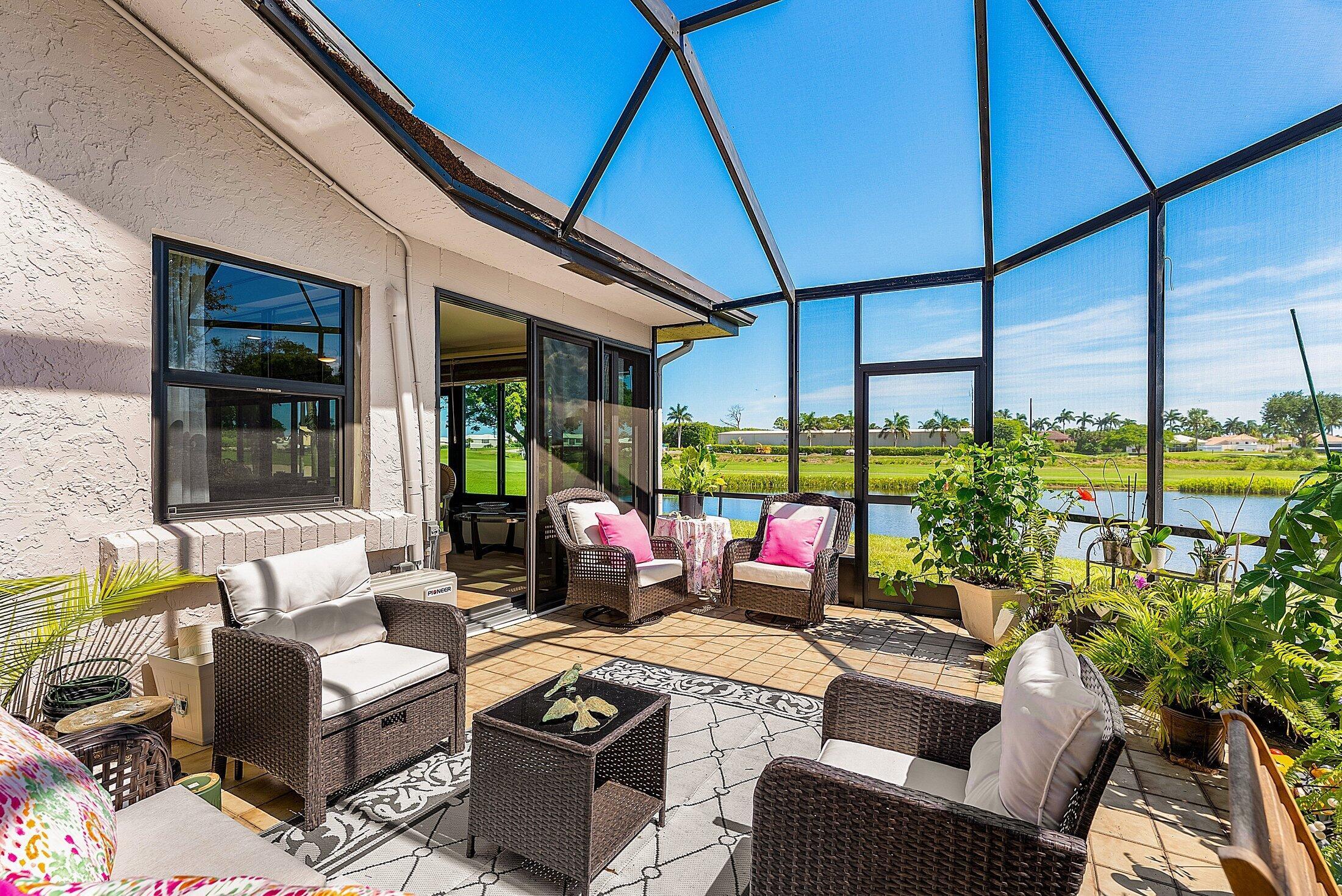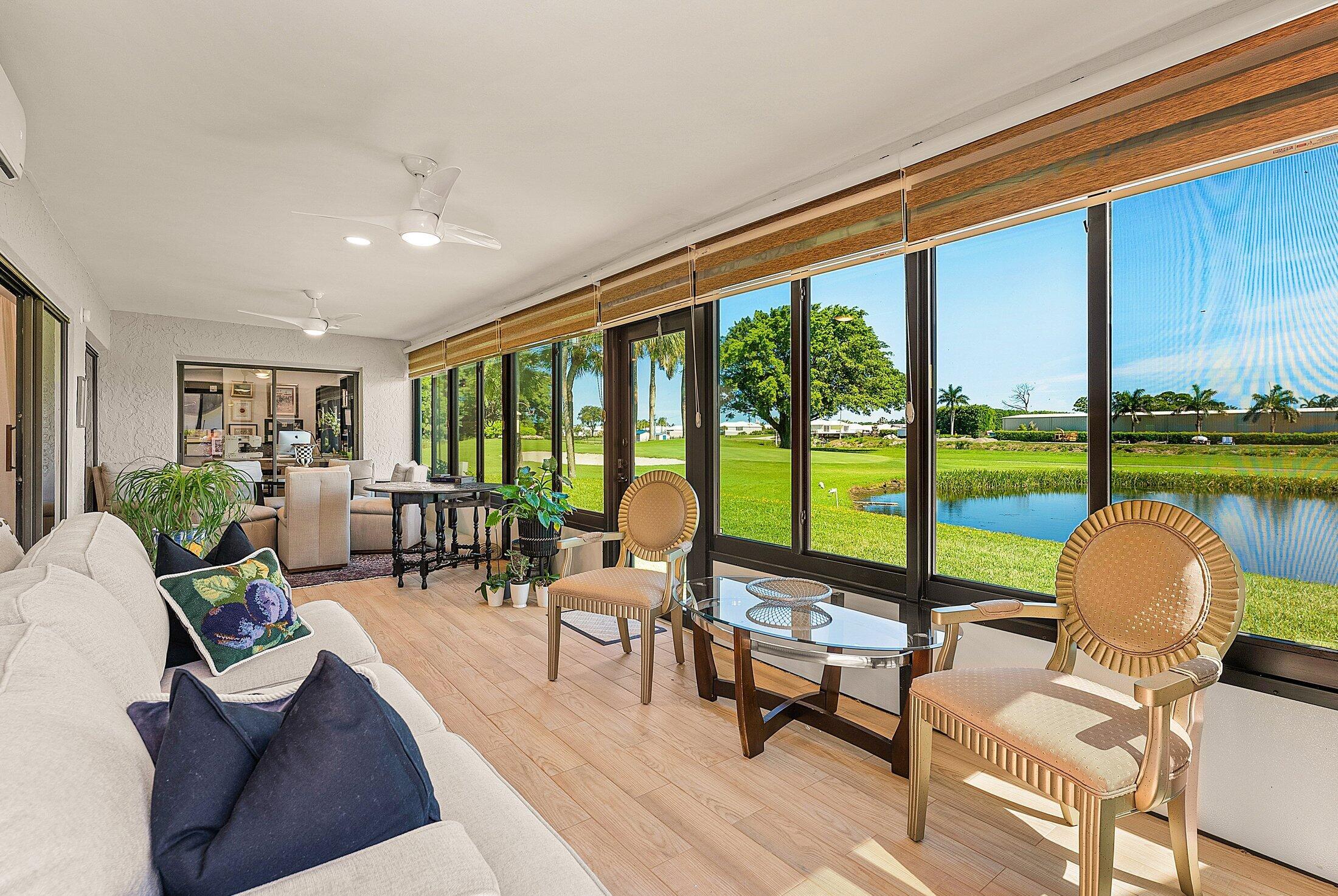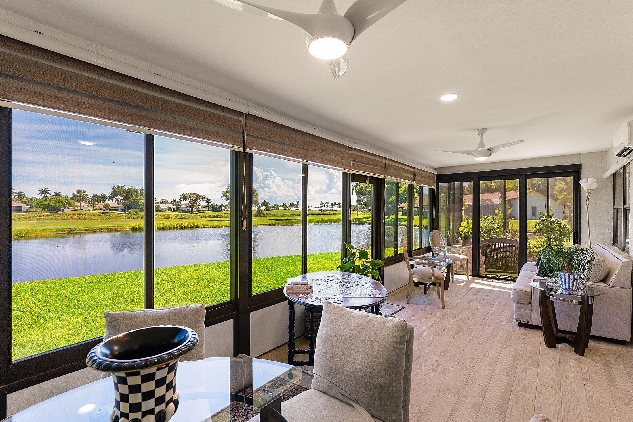 ONE OF A KIND and EXCEPTIONAL HOME in the prestigious Boca Delray Country Club, a 55+ non-equity, gated golf community, stands unparalleled with over 2,300 SF on a RARE CUL-DE-SAC WATERFRONT LOT, showcasing breathtaking LAKE and GOLF COURSE VIEWS. This NEWLY RENOVATED residence, FLOODED WITH NATURAL LIGHT, features an OPEN FLOOR PLAN with VAULTED CEILINGS, 3 SPACIOUS bedrooms, 2 bathrooms, and a versatile den/office. A RENOVATED kitchen, with a large QUARTZ island and HIGH-END APPLIANCES, flows seamlessly into the DINING AREA and GRAND FAMILY ROOM. Open the glass doors into the AIR-CONDITIONED Sunroom and you've created a breathtaking space for ENTERTAINING. THE OVERSIZED MASTER SUITE, BATHROOM and WALK-IN CLOSET CONTINUE THE HOME'S FLUID DESIGN. Features of this stunning home includeengineered wood flooring and porcelain bathrooms tiles, impact windows, a newer roof and AC. This extraordinary property, with its unmatched design and attention to detail, sets a new standard for luxury living in a vibrant community with a par 60 course, new clubhouse and premier amenities.