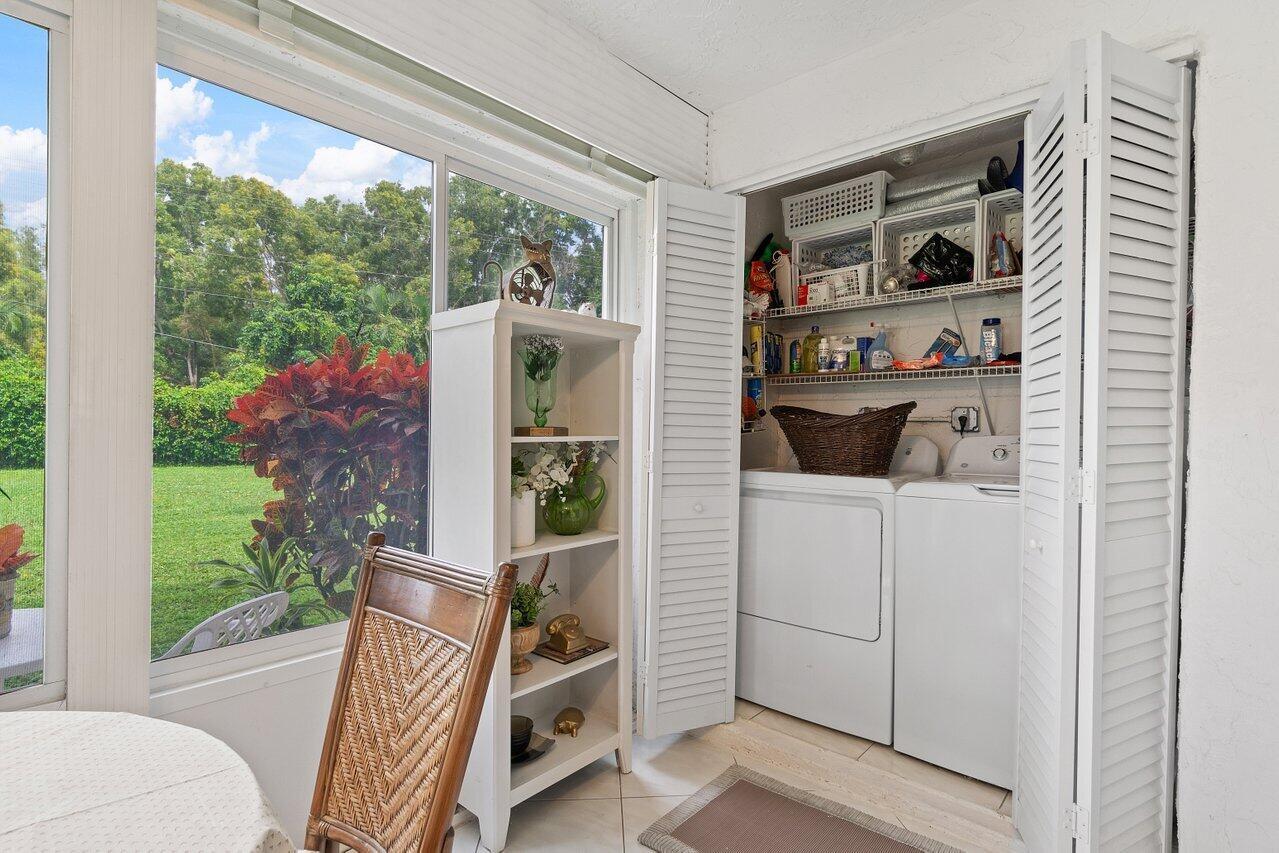 Oversized corner unit in desirable 55+ community of BRIDGEVIEW. Spacious first floor corner unit with new full hurricane impact windows. Beautiful spacious back patio. Washer and Dryer and large remodeled kitchen with new island and new stainless steel appliances. This building boasts also a new roof and gutters! Centrally located close to shopping, downtown & the BEACH. Maintenance includes cable, internet, water, trash, roof, lawn & building insurance. Amenities include pool, tennis, clubhouse, billiards, library & so much more!