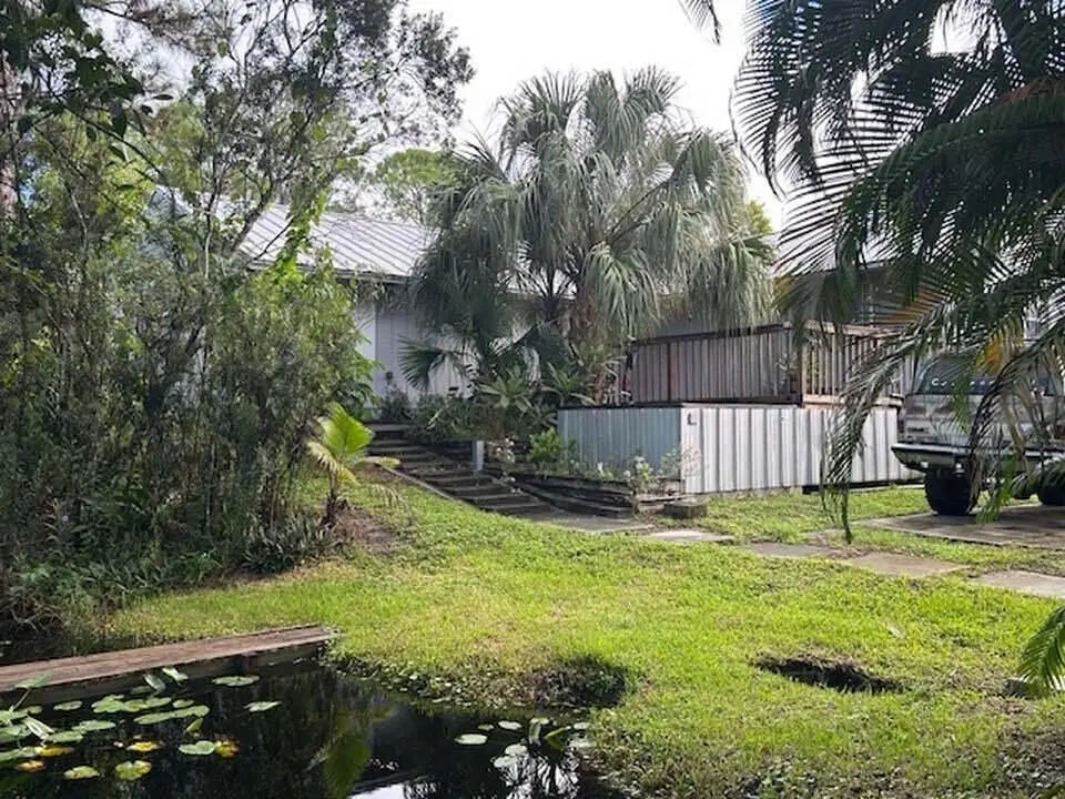 Come make this home yours!! 3 bedroom, 3 full bathrooms, large family room, galley kitchen and huge primary bedroom added to back for your own oasis. Very private, serene, newer metal roof installed 2021, main AC unit new in 2023. Sitting on approx. 1.31 acres tucked behind mature trees at very end of street. There is an awesome mancave and a pond with a walking bridge over it. Gas stove, and whole house generator. A canal borders the east side. All room sizes are approximate. Please do your own due diligence. This property is finalized from probate. Current owner has no knowledge of any issues with property. Home is being sold AS-IS with the right to inspect.