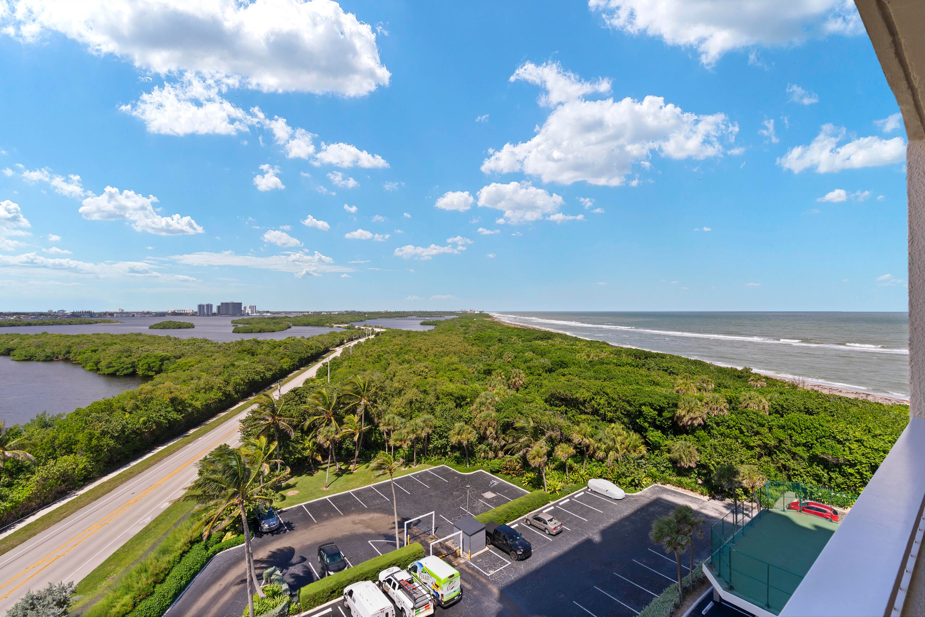 Spend Your Winter by the Ocean in This Beautifully Situated Singer Island CondoEnjoy the winter season in this well-appointed 2-bedroom, 2-bathroom residence located in the desirable Water Glades Condominium on Singer Island. Perched on the 9th floor, this unit offers unobstructed panoramic views of the Intracoastal Waterway, Munyon Island, Little Munyon Island, John D. MacArthur State Park, and the Atlantic Ocean.The bright and spacious living and dining areas open to a private balcony, perfect for enjoying stunning sunrises over the ocean and breathtaking sunsets across the Intracoastal. The unit features a functional layout with ample storage, central A/C, and high-speed internet included.Water Glades offers a full complement of resort-style amenities, including a heated community pool, fitness center, tennis and pickleball courts, clubhouse, community room, library, lobby area, putting green, and shuffleboard. Additional conveniences include bike storage, extra storage, an on-site car wash, assigned parking, building security, and an on-site manager. Ideally located on Singer Island, the property is just minutes from world-class shopping, including The Gardens Mall and nearby boutique shops, with endless dining options within a few miles. Downtown West Palm Beach and Palm Beach International Airport (PBIA) are only a short drive away, providing easy access to cultural attractions, entertainment, and travel connections. Available for the winter season.