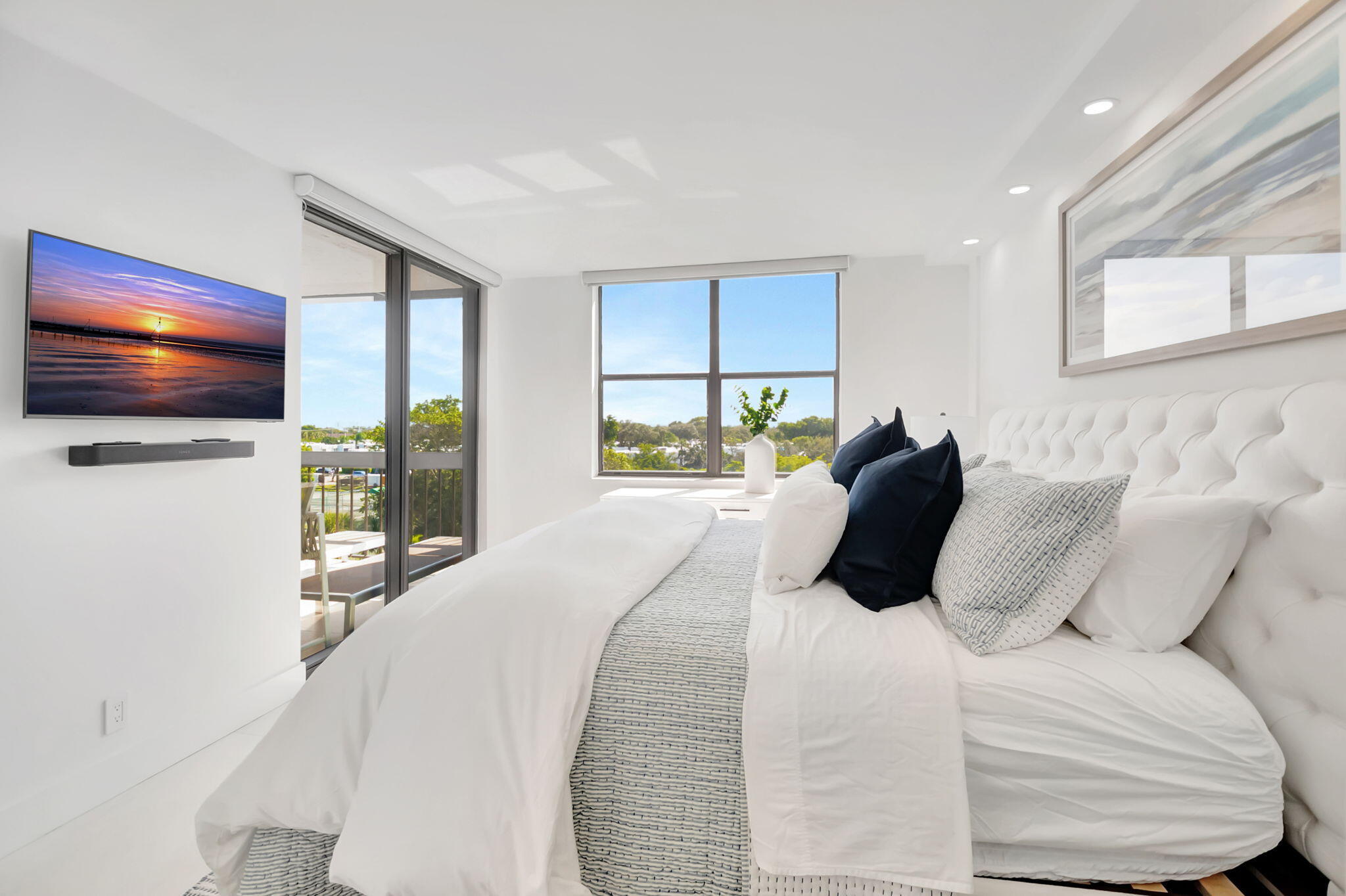 Experience luxurious coastal living in this stunning, modern 2-bedroom, 2-bathroom top-floor corner unit, offering breathtaking pool views. Available for the month of January 2026. Also, May through October (off season price), with a preferred stay of four months, this residence is fully furnished by a professional decorator. The gourmet kitchen features quartz countertops and ample cabinet space, ideal for culinary enthusiasts. The apartment boasts large-format white porcelain flooring throughout, creating a sleek and cohesive look. The thoughtfully designed split bedroom layout allows for privacy and comfort, with electric window treatments enhancing convenience. Step out onto the spacious balcony that overlooks the pool, providing a serene retreat to relax and enjoy the sceneryThe main bedroom features an exquisite bathroom and a walk-in closet, while the utility room is equipped with a sink and brand-new washer and dryer. Residents enjoy access to a secured lobby, two heated pools, a gym, and a community room. Pickelball available across the street at $14 per hour. Conveniently located with easy access to I-95 and close to Whole Foods, Target, Publix, and Trader Joe's, this property is just minutes from downtown Delray. Water, internet, cable, and a monthly cleaning service are included in the price, offering unparalleled convenience and luxury.