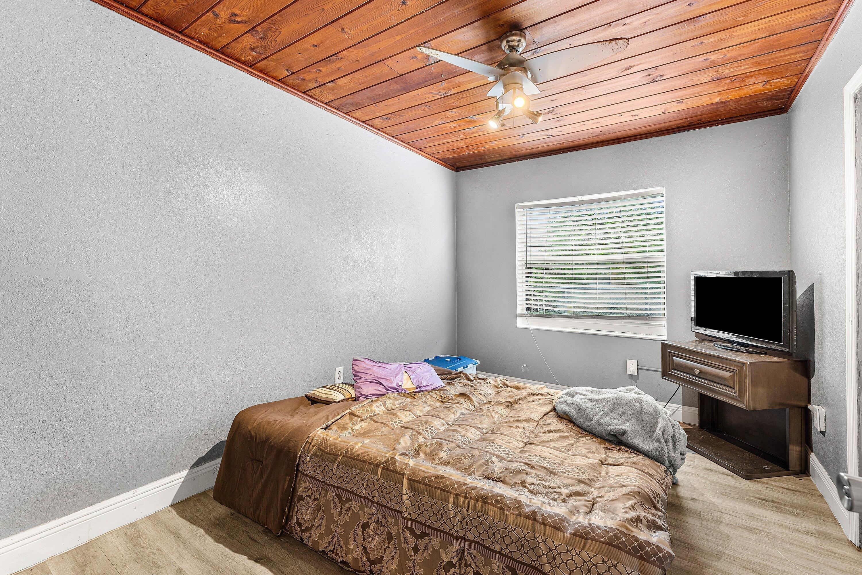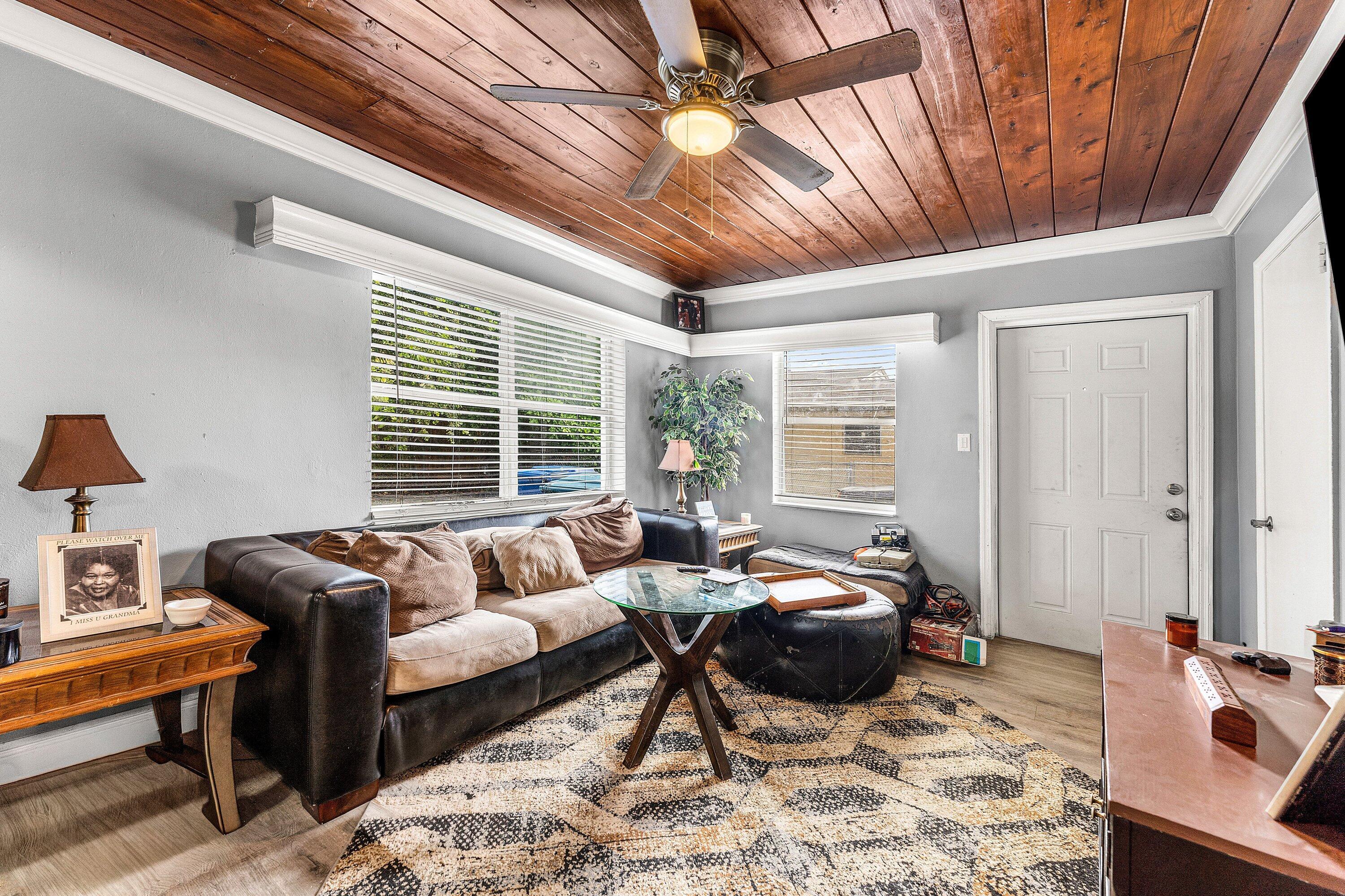 Excellent investment opportunity located just minutes from the Intracoastal and downtown, offering strong rental potential and long-term value. This beautifully updated duplex features two fully remodeled units, each with its own driveway, laundry, and separate utility meters, making it an ideal setup for investors or owner-occupants seeking reliable income with minimal maintenance.Unit 1 is a spacious two-bedroom, one-bath residence that has been tastefully updated throughout. The interior features wood-look vinyl flooring, a decorative tongue-and-groove wood ceiling, updated fixtures, and an abundance of natural light. The kitchen comes equipped with solid wood shaker cabinetry, ceramic tile countertops, a brick backsplash, and stainless steel appliances. The master bedroomoffers generous space and ample storage, while the fully remodeled bathroom showcases rustic wall accents, a new vanity, and a beautifully tiled shower-tub combo with updated hardware. Unit 2 is a one-bedroom, one-bath unit that mirrors the same attention to detail and quality craftsmanship. It features wood-look vinyl flooring, a tongue-and-groove ceiling, modern fixtures, and a bright, open feel. The kitchen is complete with solid wood cabinetry, a tile backsplash, an oversized sink with new hardware, stainless steel appliances, and plenty of natural light. The bathroom has been fully updated with floor-to-ceiling tile, a glass-enclosed shower-tub combo, and a new vanity. This unit also includes in-unit laundry for added convenience. Outside, the property offers two separate driveways, private utility setups for each unit, and a large backyard that provides additional outdoor space or potential for future enhancements. The location offers excellent accessibility to local beaches, marinas, restaurants, and shopping, while maintaining the quiet appeal of a residential neighborhood. This turnkey duplex is an outstanding opportunity for investors seeking a strong income-producing property with minimal upkeep required. With both units beautifully updated and equipped with laundry, it's a rare find in a desirable coastal area.