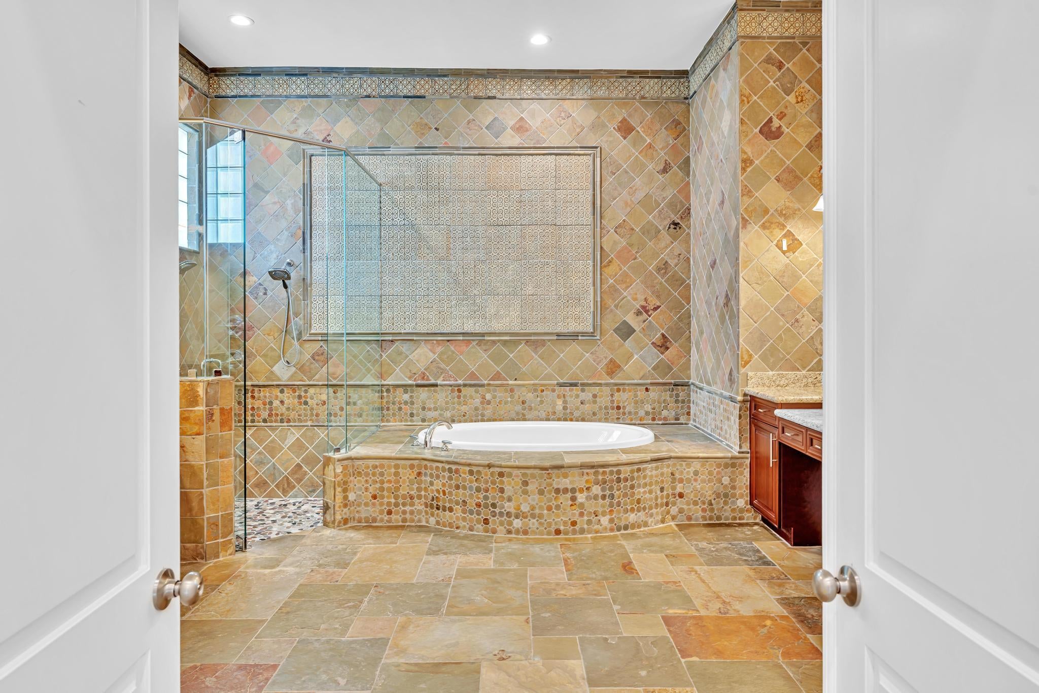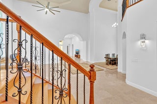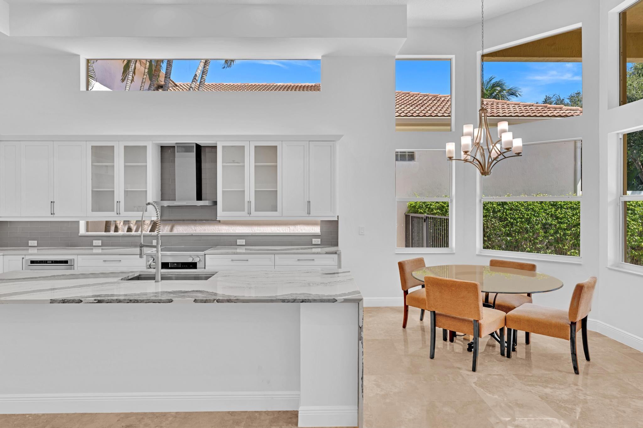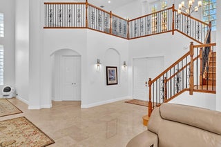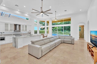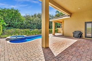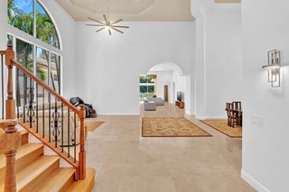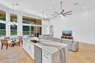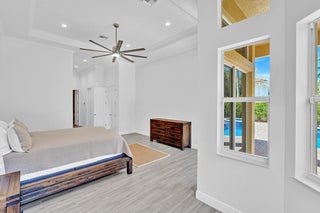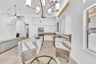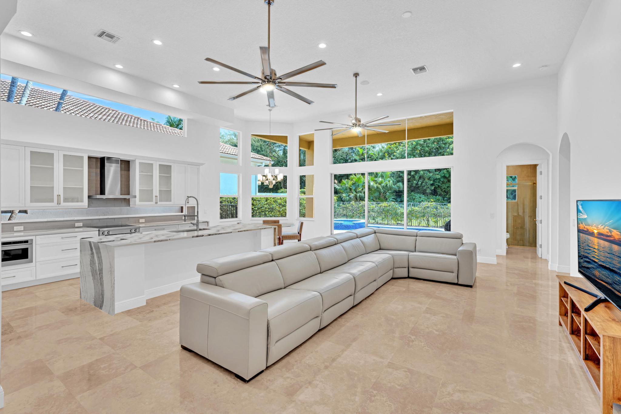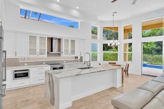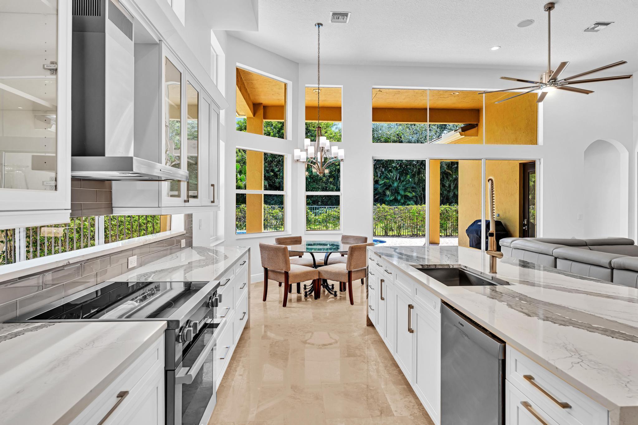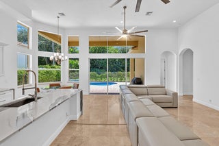 Inspired by Italian designers from Manhattan, the owner, an Upper East-sider, just completed over $700,000 in upgrades and renovations. The chic, contemporary, yet elegant palatial estate, features: newly remodeled chef's kitchen with Cambria quartz countertops, Meile/Monagram appliances, kitchen craft cabinets; the newly remodeled bathrooms offer a unique craftsmanship with either Italian porcelain or slate, brushed nickel fixtures and toto or Koehler finishes. A 2023 tile roof with a 25-year warranty, new insulation, gutters/downspouts and solar attic fans. A 2023 completely remodeled pool and spa.The living and dining areas feature majestic 22' ceilings; the living area design incorporates modern, sleek brushed nickel chandeliers and 72'' fans; with a custom solid oak staircase with solid oak flooring. For "green" energy efficiency enthusiasts, the home includes NEW, state of the art: salt water, heated pool and spa; 5ton Carrier and 4ton Trane HVAC Units with Halo UV/4" Hepa air filtration and ecobee thermostats; 35 Halo recessed lights. Moreover, the five star, Mizner Country community includes 2 award winning restaurants and well-appointed bars; a complete, modern wellness facility (day spa, Techno-Gym and dedicated facilities for tennis, pickle-ball Pilates, spinning as well as a Ritz Carlton resort-style pool, outside bar and restaurant area.