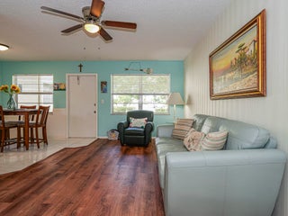Why rent when you can own! This 1-bed 1.5-bath is perfect for vacationing or scaled down living in the resort style community of Vista Royale. Corner unit, Roof 2022, vinyl flooring, newer hot water heater and best of all it comes fully turn-key. All you need are your suitcases. As a 55+ community all maintenance and amenities are included. Play golf on the communities 27 hole course, tennis, pickleball, enjoy walking trails, bike trails or relax in one of the communities 3 pools. With the active clubhouse and restaurant there is always something to do! Close to beach, shopping & medical. Room sizes approx.