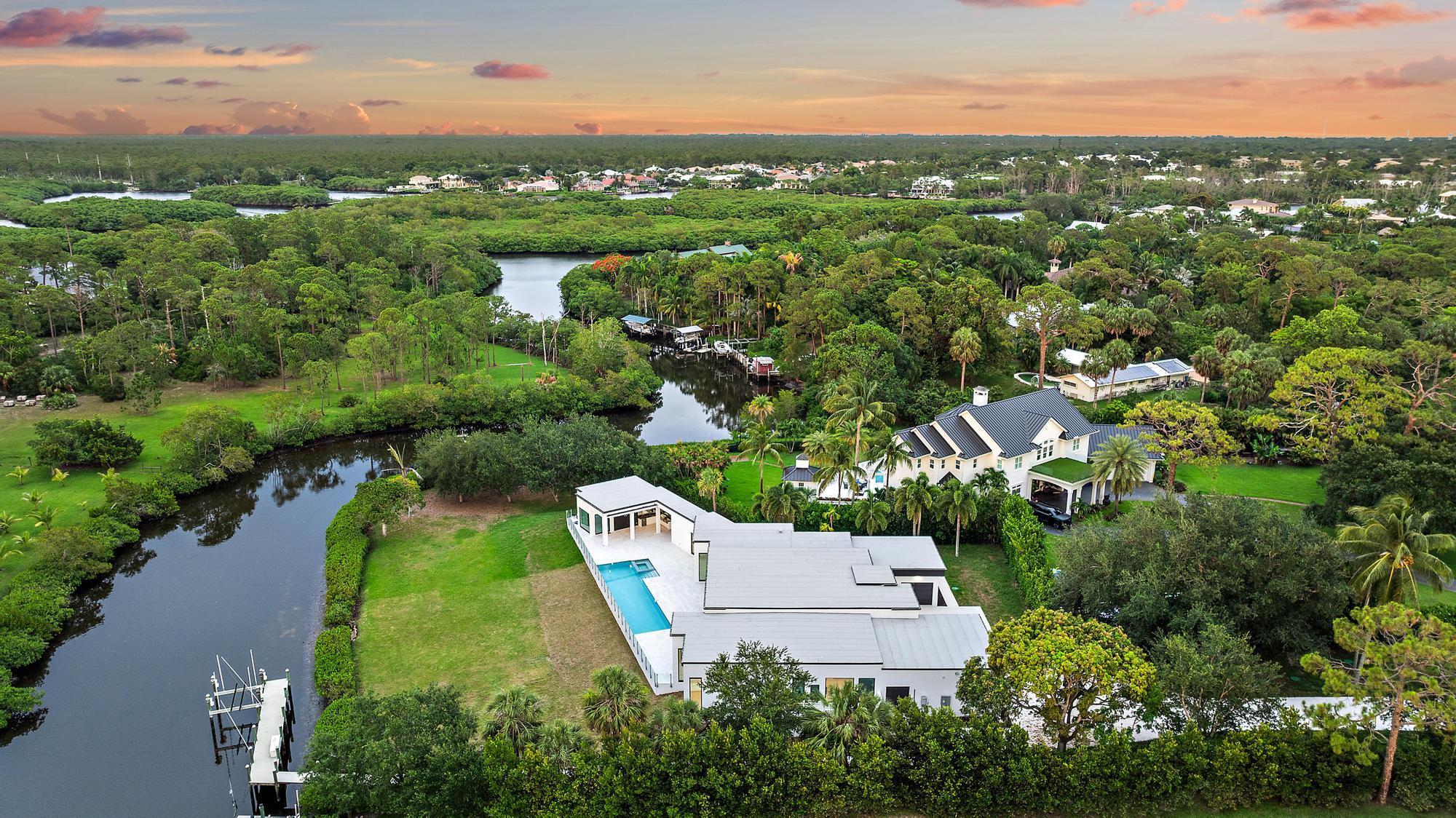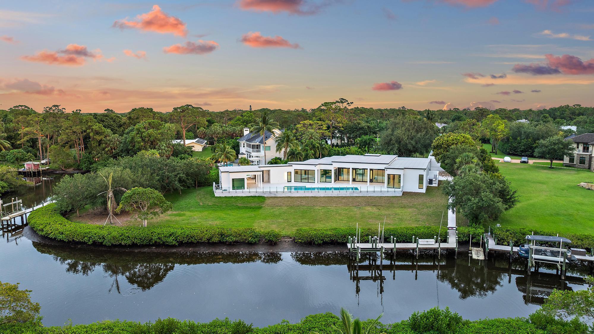 A rare fusion of privacy, precision, and architectural artistry, this minimalist modern masterpiece by Riverside Building & Design rests on over two acres along the North Fork of the Loxahatchee River. Designed to blend with its natural surroundings, it features clean lines, expansive glass, and seamless indoor-outdoor living with tranquil river views throughout. Highlights include a chef's kitchen with luxury appliances and custom cabinetry, a resort-style pool and spa, and a covered summer kitchen for effortless entertaining. A private dock with 16,000-lb lift offers direct access to the Intracoastal and Atlantic Ocean. With sleek design and timeless tranquility, 8309 SE Rivers Edge stands as one of Jupiter's most distinctive and private new waterfront estates.