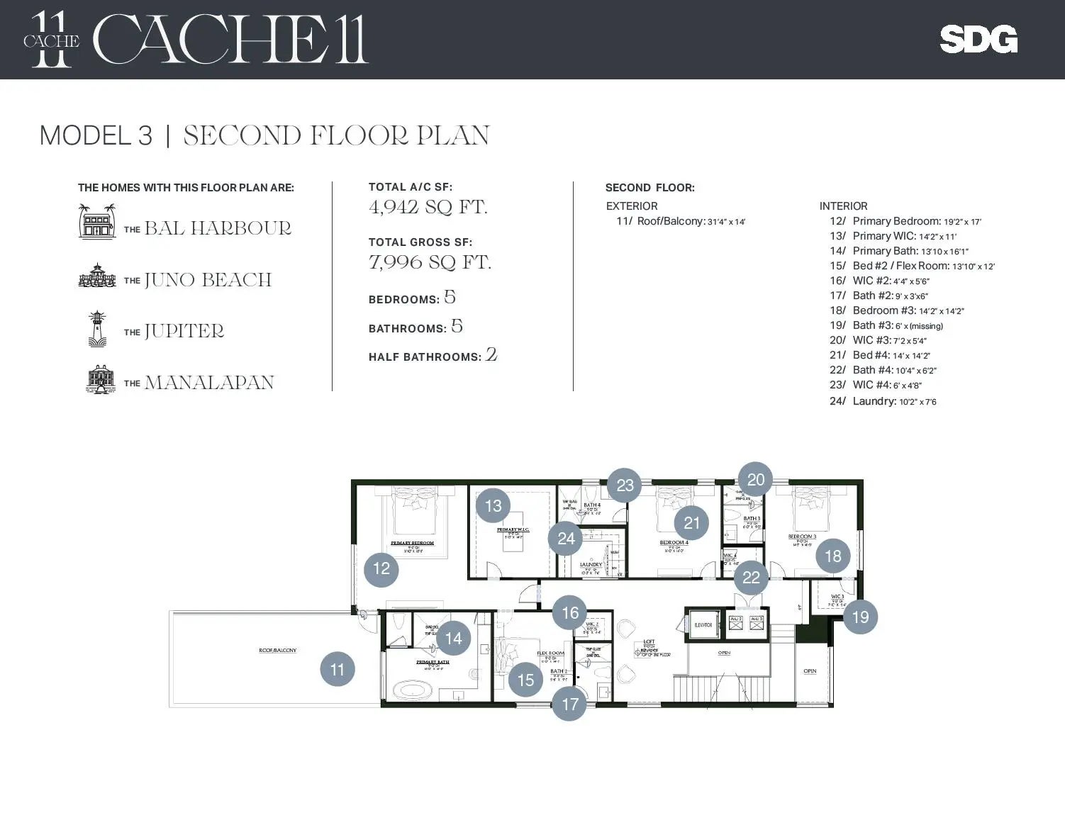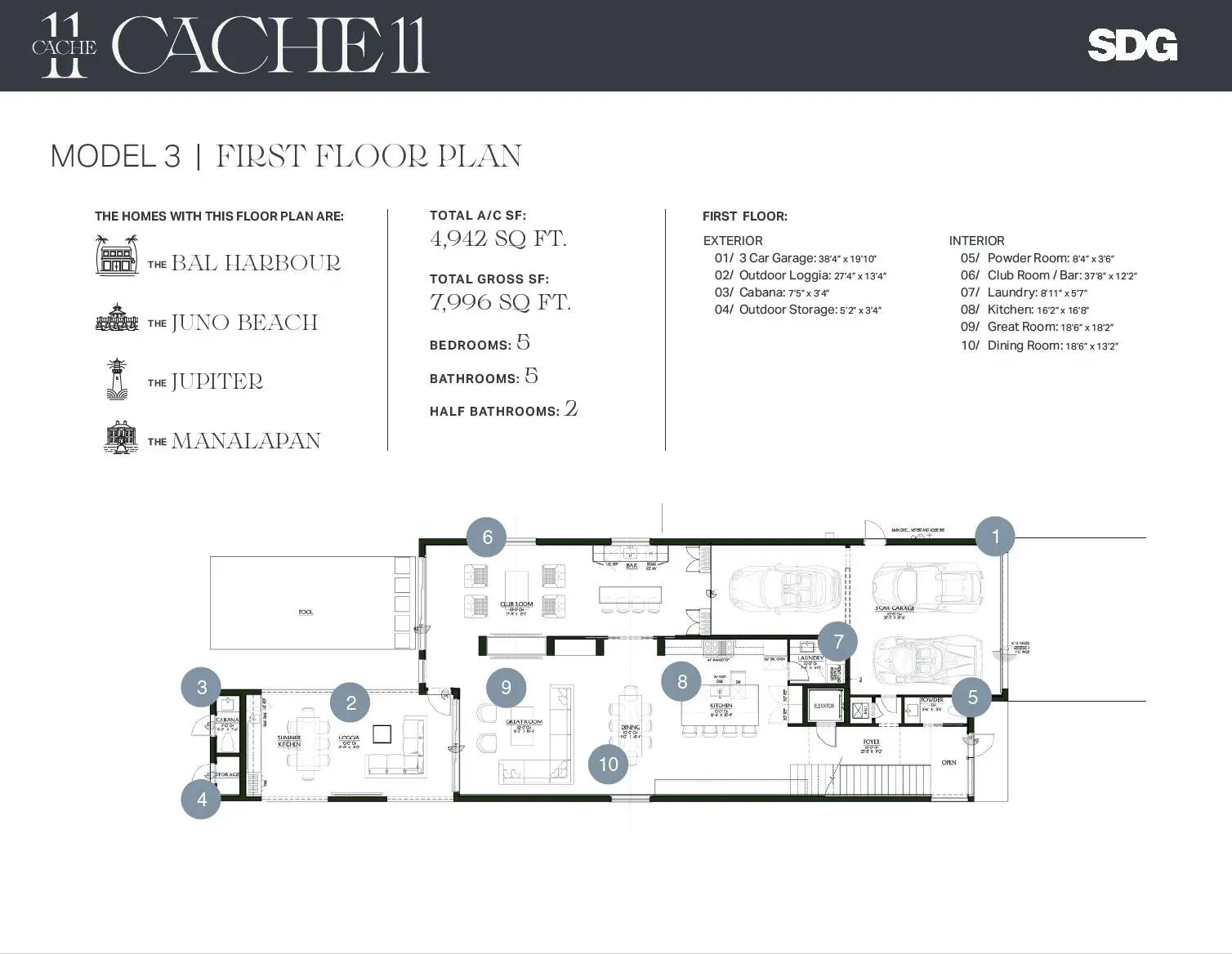 The Bal Harbour at Cache11, 810 Palm Trail, Delray Beach, FL 33483 offers 5 bedrooms, 5 full bathrooms, and two half bathrooms that unfold across 7,996 total square feet, 4,942 of which are under air. Just a few blocks from Delray's most beloved amenities, including pristine beaches, elevated shopping and dining destinations on Atlantic Avenue. This custom residence in the heart of a vibrant village by the sea.. represents best in class for design, finish and location.