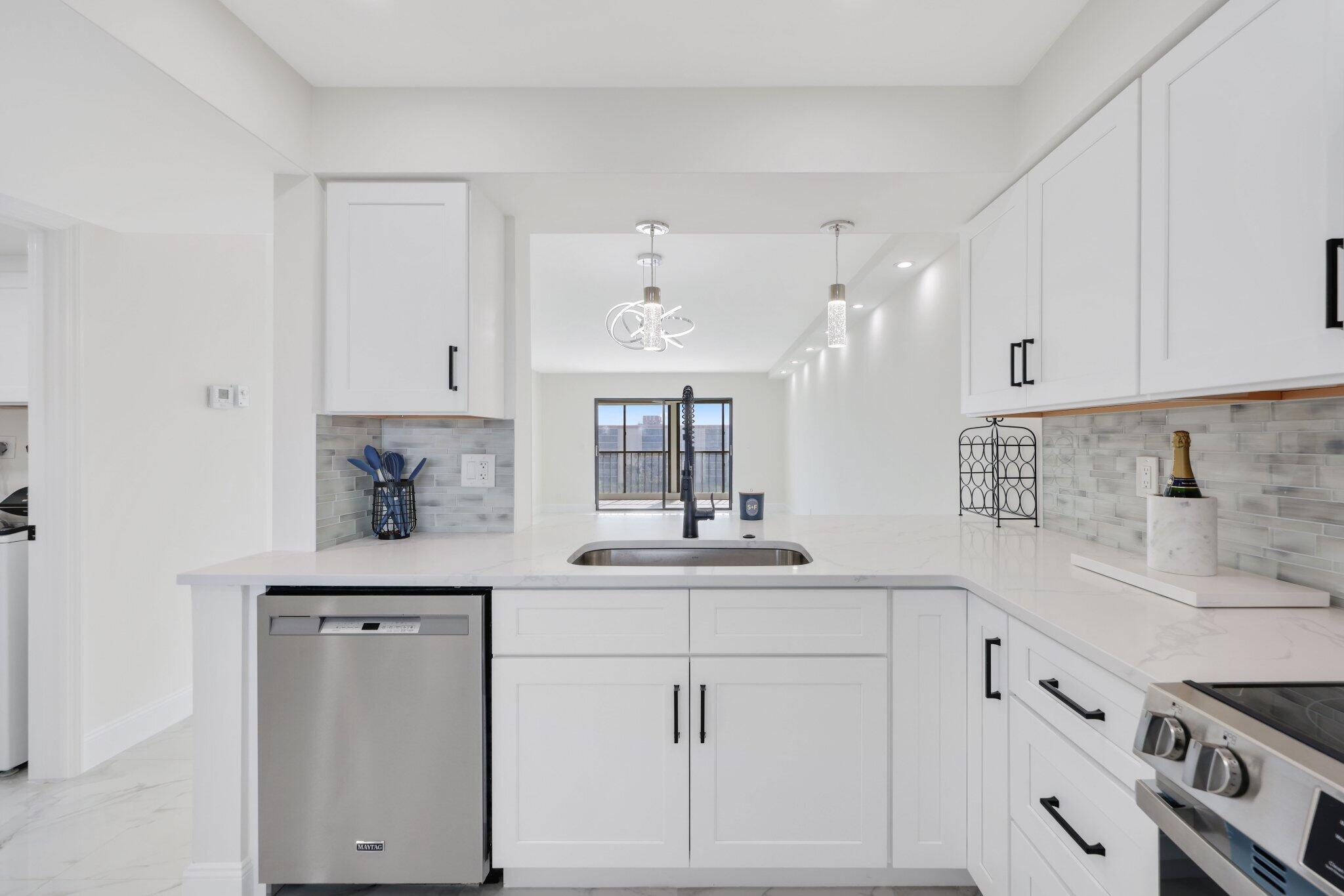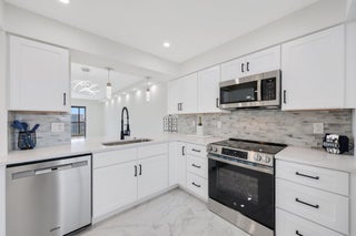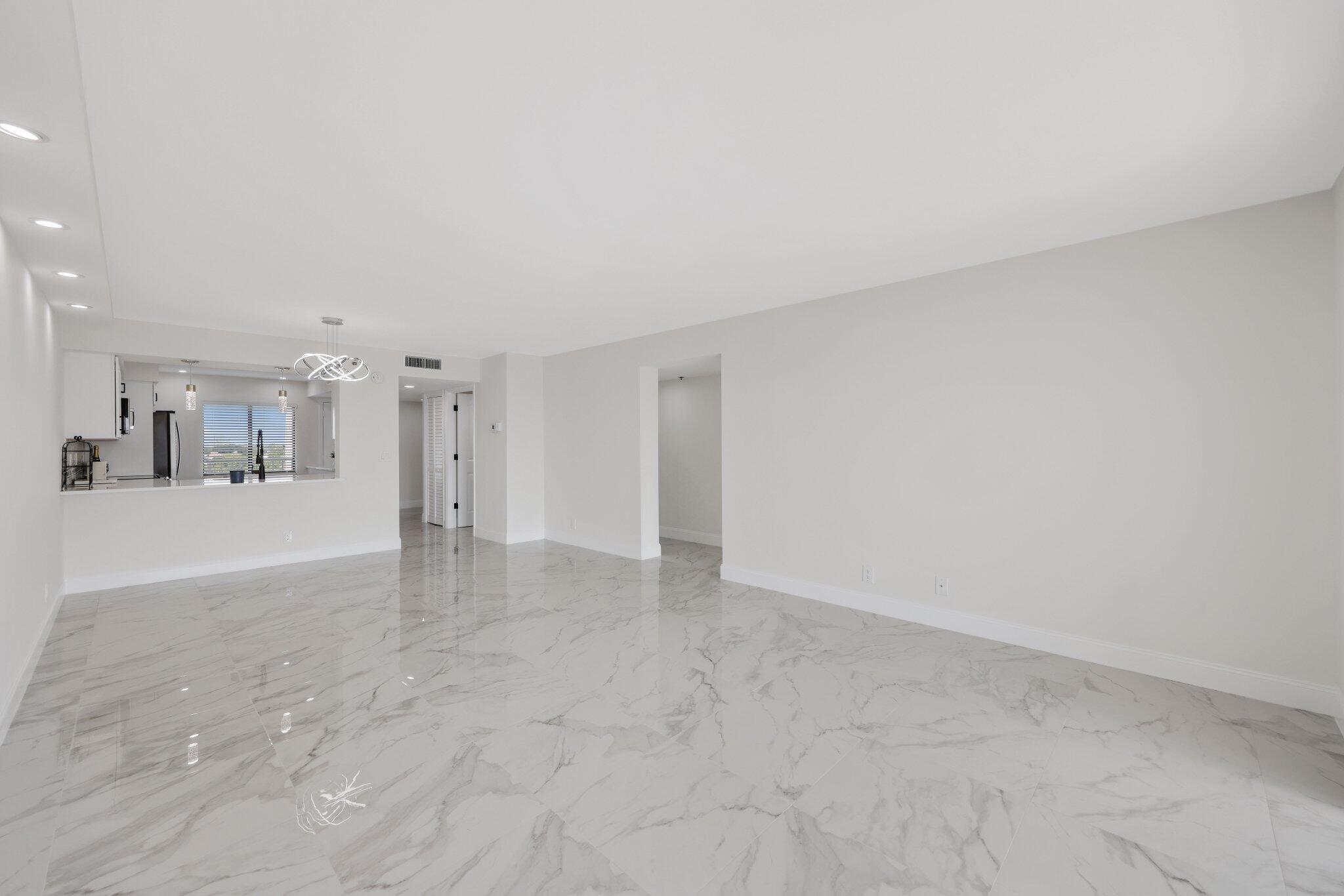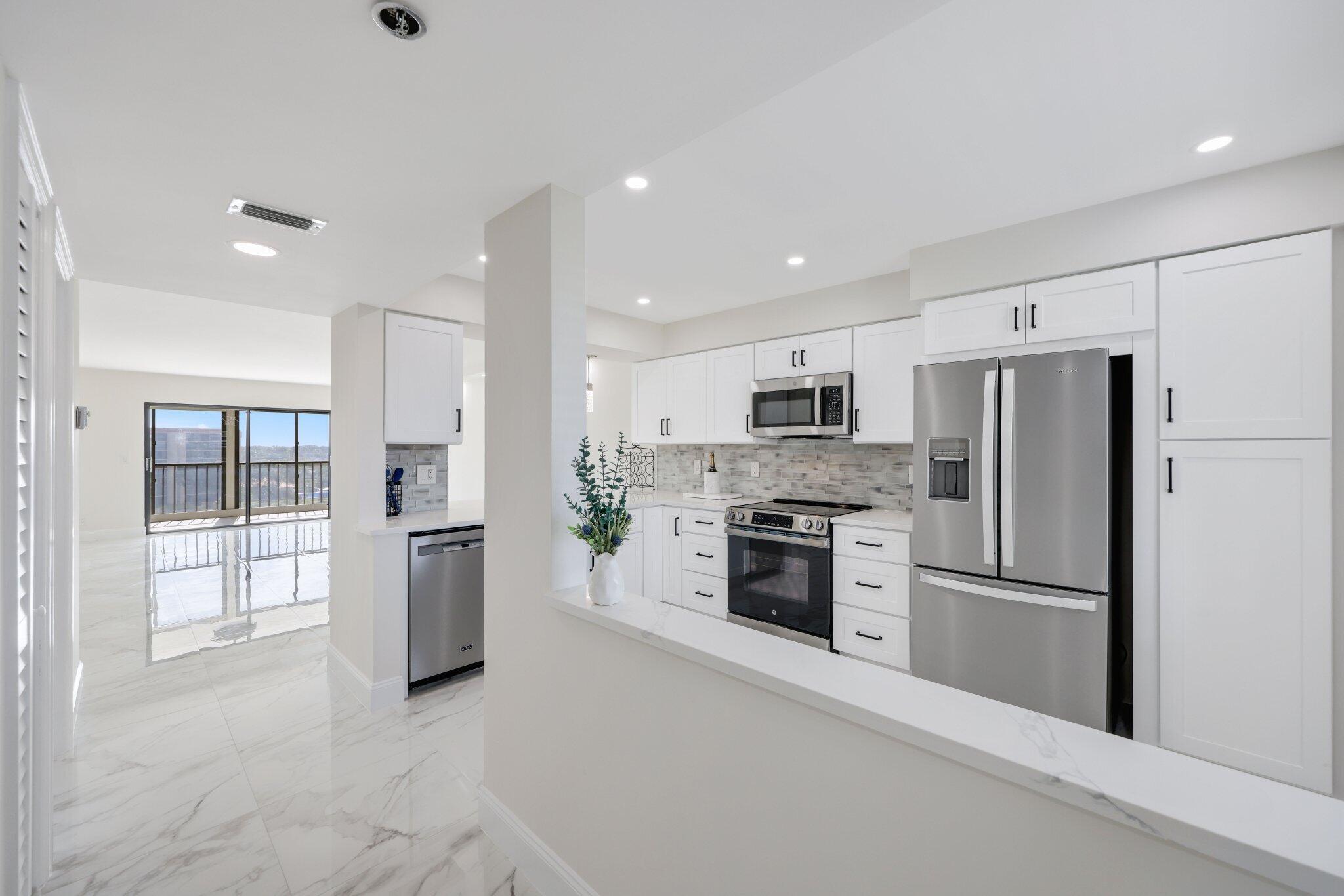 Welcome to your dream 2 bed, 2 bath LARGE FLOOR PLAN condo in a vibrant 55+ lifestyle community! This gem has undergone a full remodel, ensuring a modern living space where you will be the first resident. The open-concept kitchen is a showstopper, featuring stunning quartz countertops and custom cabinetry. Beautifully tiled floors add elegance throughout the home. Custom ceiling lighting brightens up the living area. Enjoy breathtaking 7th floor views of the lake and surrounding homes from your living space or balcony. Both bathrooms have been beautifully transformed with taste and functionality. Double vanity in the primary. The beautiful tile floors extend into the bedrooms as well as custom walk-in closets. No detail has been overlooked, from fresh paint to the smooth ceilings.Section 5 of Huntington Lakes - where this condo resides - is phenomenally run. Well-funded reserves exist as well as a strong budget. All mandated inspections have been completed and triggered no outstanding special assessments. The community itself is a haven for active adults, with a recently renovated clubhouse offering an indoor heated pool and jacuzzi, a massive movie and play hall, card rooms, and a fully equipped fitness center. Outdoor enthusiasts will appreciate the tennis and pickleball courts, ensuring there's always an activity to enjoy. Immerse yourself in a lifestyle of comfort, convenience, and community in this beautifully remodeled condo. Welcome home to a life of relaxation and recreation!