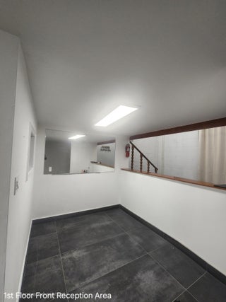 This two-story loft-style commercial space features an inviting open mezzanine and a front entryway, boasting 21-foot ceilings. It includes five separate office spaces, a designated reception area that could serve as a showroom, and a breakroom equipped with a kitchen area, as well as a washer and dryer. The property also offers 2.5 private bathrooms, one of which includes a walk-in shower. Recently refreshed with new paint, updated recessed lighting, and new slate tile flooring, this space is turnkey ready. Additionally, it provides two dedicated parking spaces directly in front of the unit, with extra guest or employee parking available within the office complex. Conveniently located near major highways, it is situated within the Pompano Beach Business District.