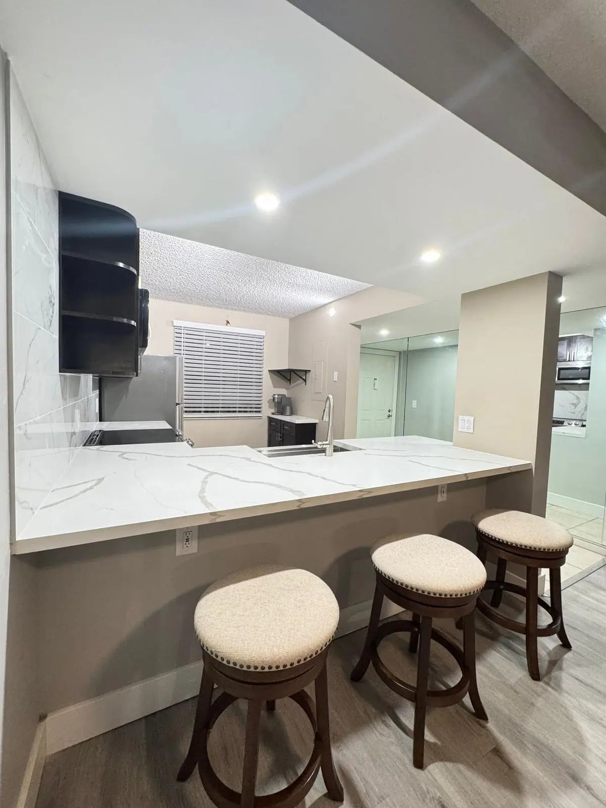 Beautifully Renovated 2/2 with DEN/OFFICE room Condo! This stunning very spacious unit has been completely renovated, features a brand-new air conditioning system, and new laundry machines for your comfort and convenience. Enjoy pleasant courtyard views and easy access to the clubhouse. The all-new kitchen boasts modern appliances, an open breakfast bar, and flows into a spacious great rooma''perfect for relaxing or entertaining.Additional highlights include impact windows, tiled kitchen, baths, and vinyl flooring throughout. Both bedrooms are generously sized with updated vanities and ample storage, just renovated laundry room.The community offers four heated pools and clubhouses, GYM and game rooms, sidewalks, well-lit grounds at night.Conveniently located near airport & Shoppin