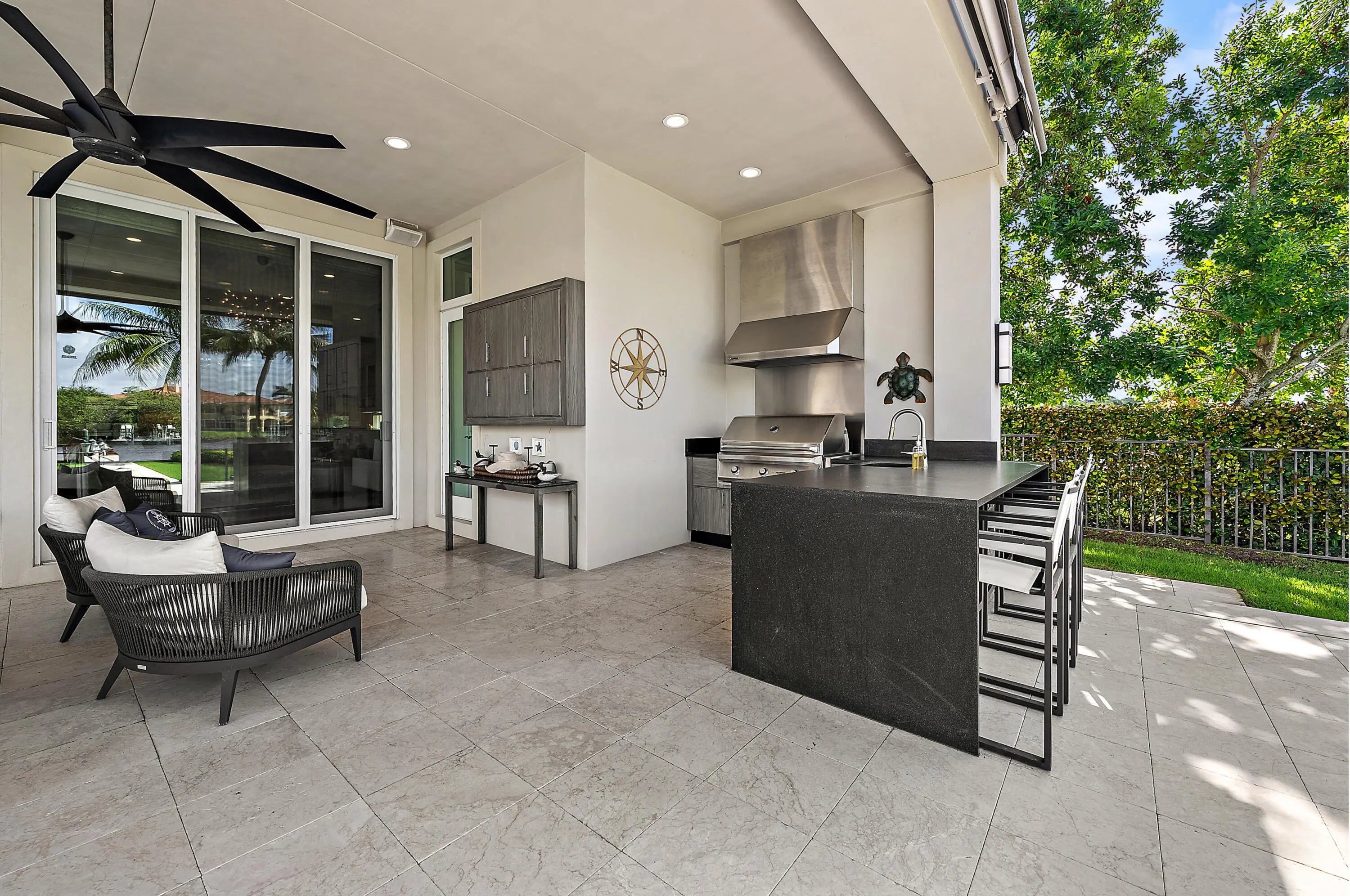 Set within the prestigious gated enclave of Frenchman's Harbor, this exquisite 5-bedroom, 7-bath waterfront estate embodies the finest in coastal luxury and architectural sophistication. Built in 2016 and spanning approximately 6,471 square feet, the residence blends refined design with effortless livability, offering sweeping Intracoastal views from nearly every room.Designed for both grand entertaining and intimate living, the home features expansive open spaces, floor-to-ceiling windows, and custom finishes throughout. The gourmet chef's kitchen is a statement in elegance and functionality, complemented by a first-floor primary suite with a spa-inspired bath, dual closets, and panoramic water vistas.