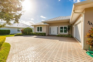 3BR/2BA/2CG lakefront home with circular driveway and impeccably maintained lush landscape. As soon as you enter the home you're captivated by the expansive lake views! Features includes a 2024 A/C unit, metal roof and large impact windows and sliders for peace of mind and energy efficiency. The oversized tiles in living areas offers a clean & modern look. Kitchen & bathrooms are beautifully appointed w/white cabinetry & corian countertops combining timeless style w/easy maintenance. Whether you're enjoying your morning coffee overlooking the lake from your covered lanai or entertaining guests from your light filled living spaces, this home offers the perfect blend of sophistication, comfort and breathtaking views.