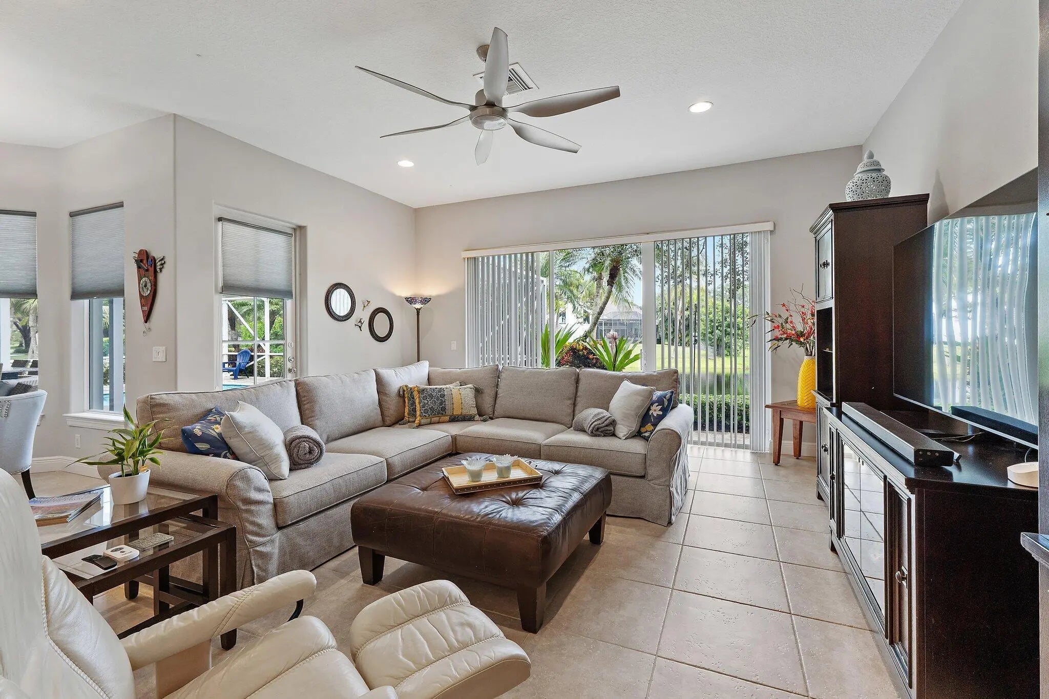This Contemporary Classic features soaring Ceilings, Open Floor Plan, Natural Light, Style & Convenience. A Renovated Kitchen w/lrg Center Island & Pantry is a true Gourmet Cook's delight. Formal Dining Room, Breakfast Bar & Breakfast Nook offer cozy Dining Areas. An outdoor Kitchen provides year round culinary enjoyment. Primary Bedrm is on 1st flr w/huge walk-in Closet & en-suite bathrm. Cabana Bathrm w/shower exits to pool area. 3 Bedrms on 2nd flr. Total 4.5 Bathrms. Impact Hurricane sliders/windows. Oversize Garage 550 SF. Astro turf fenced area for your fur-baby. Pool/Yard area enjoy east exposure providing sunny AM's & cool shady afternoons. Comm Clubhouse, Tennis/Pickleball, Playground. Irrigate from Lake. Low Martin County Taxes. Small enclave of 173 home sites.
