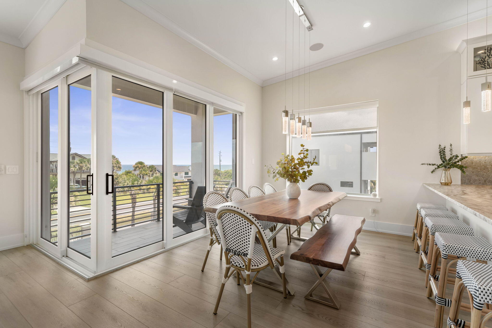 Experience the ultimate Florida coastal lifestyle in this stunning fully furnished three story home with deeded beach access and quick Intracoastal Waterway access. This move in ready rental features five spacious bedrooms four and a half bathrooms and nearly 3,000 sq ft of thoughtfully designed living space. The third floor offers an open concept kitchen dining and living area with breathtaking ocean views. The private primary suite includes a soaking tub separate shower and dual vanities. A private elevator serves all levels. The first floor has a game room kitchenette easy backyard and water access and a hot tub for relaxing or entertaining. Lease with option to buy available. Schedule your private tour today.